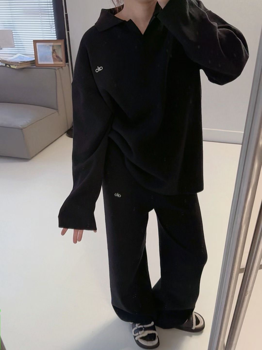 Whether you're relaxing at home or stepping out for a casual day, the Alo knit polo set ensures you look and feel your best.