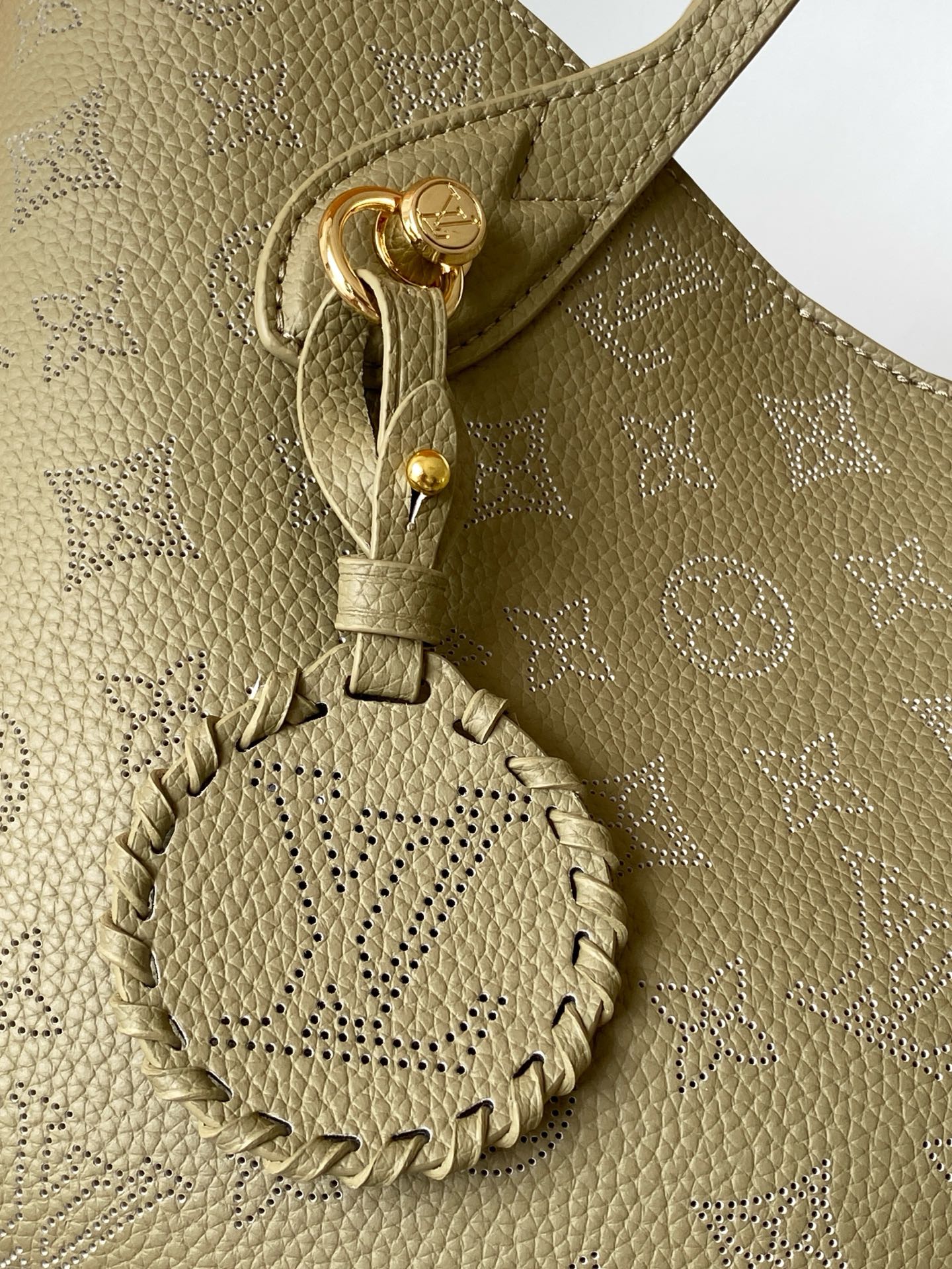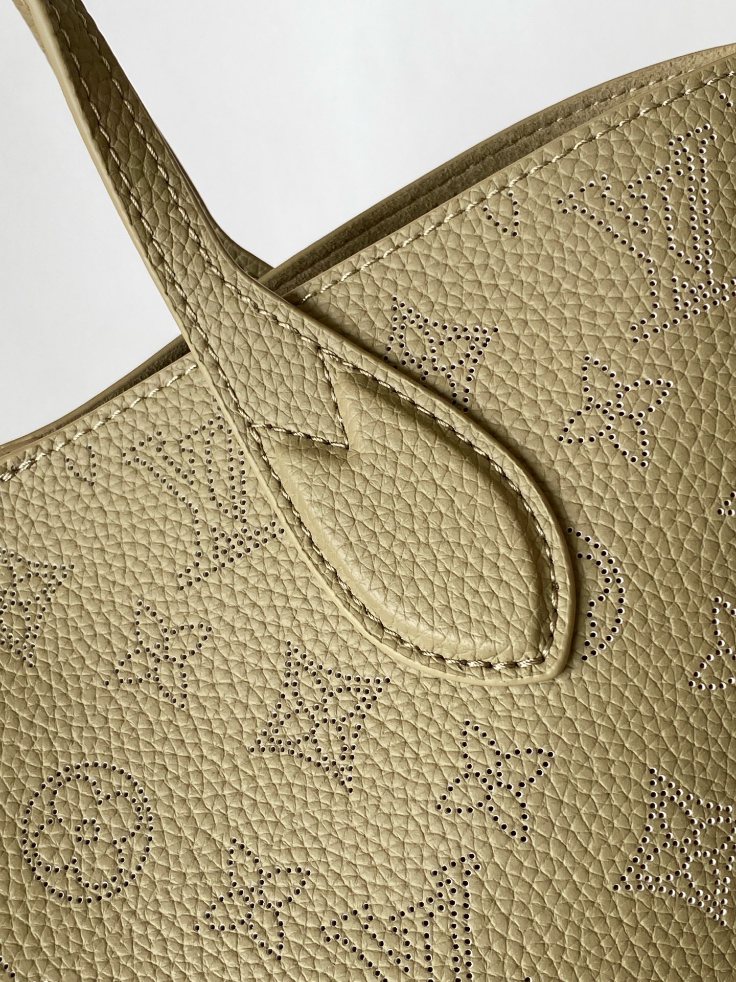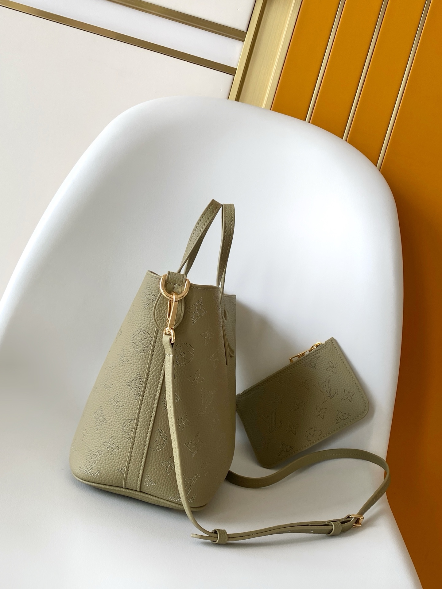 Tags: Everyday Designer Bag, Khaki Green Handbag, Perforated Leather Handbag, Removable Pouch Bag, Small Tote Bag