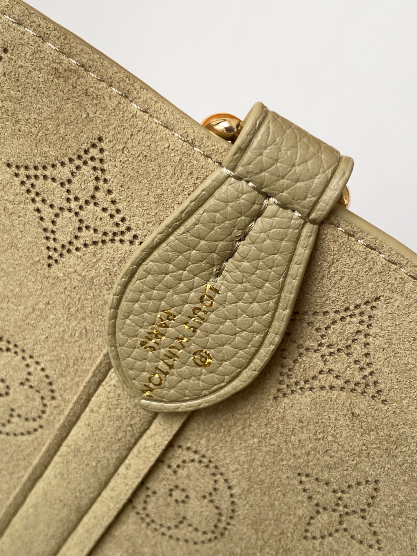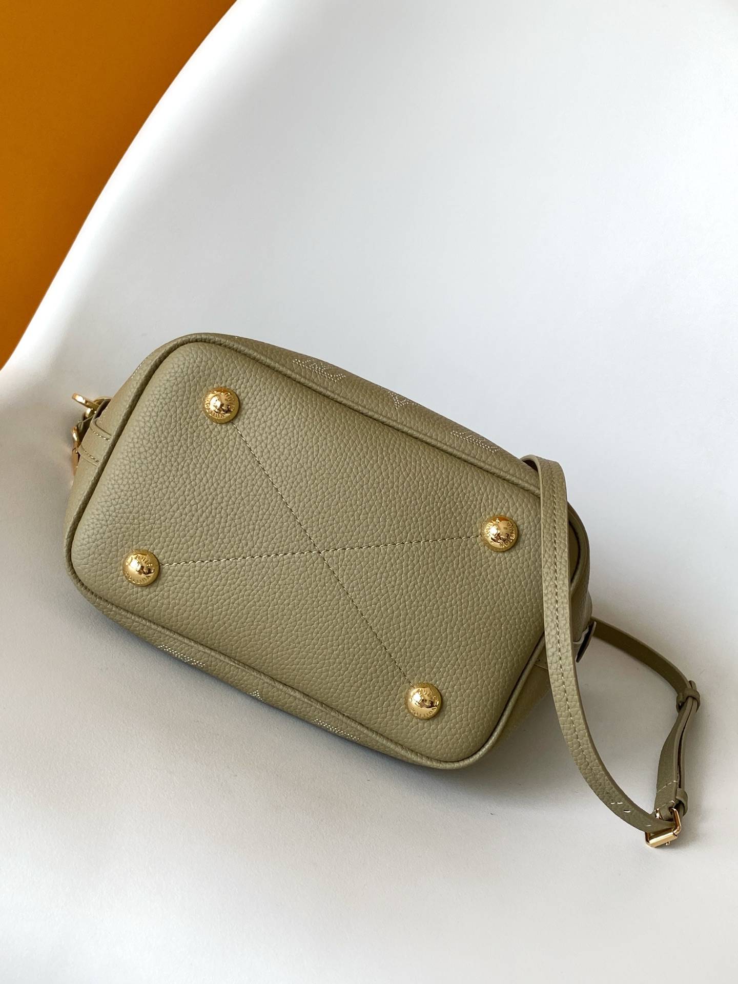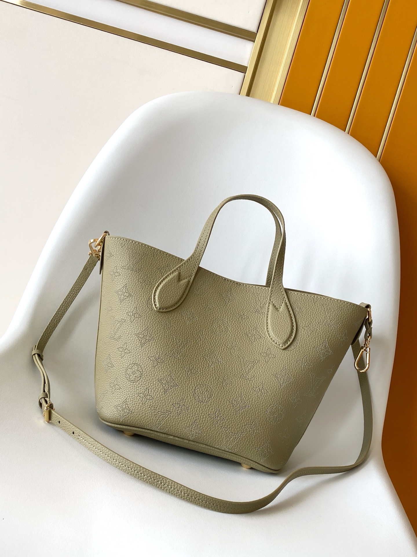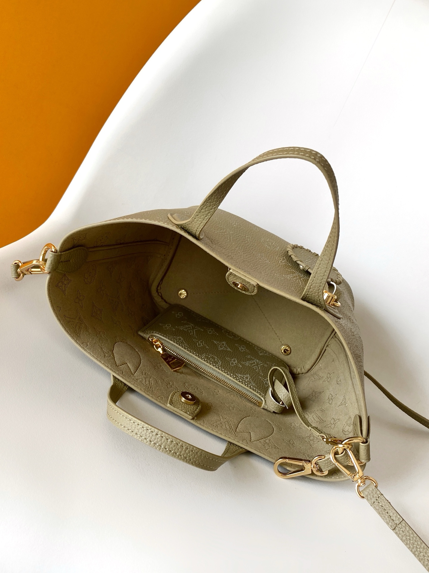 Tags: Everyday Designer Bag, Khaki Green Handbag, Perforated Leather Handbag, Removable Pouch Bag, Small Tote Bag