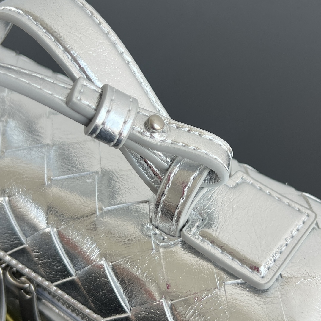 Tags: Adjustable Strap Handbag, Bottega Veneta Vanity Case, Designer Vanity Case, Silver And Gold Bag, Woven Leather Bag