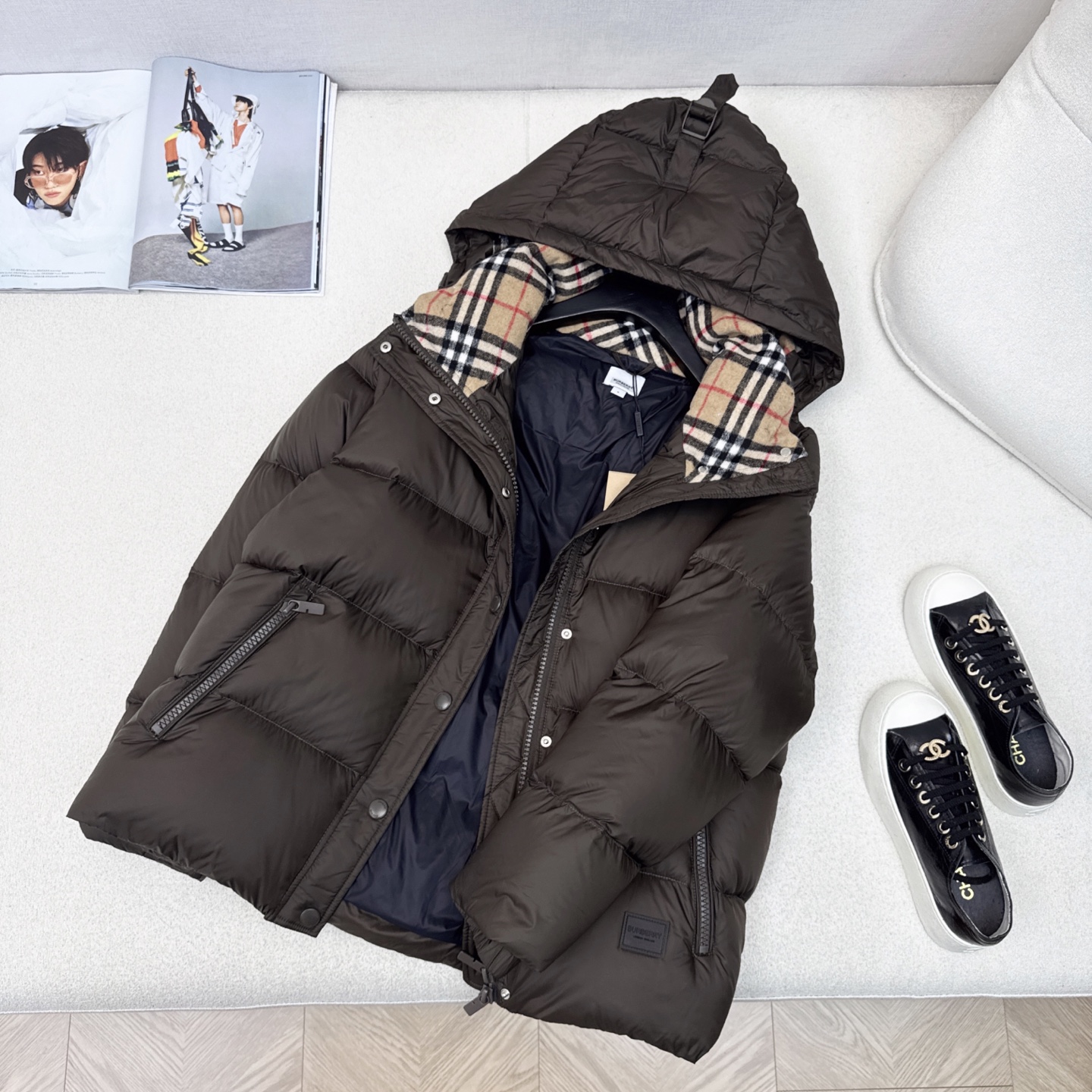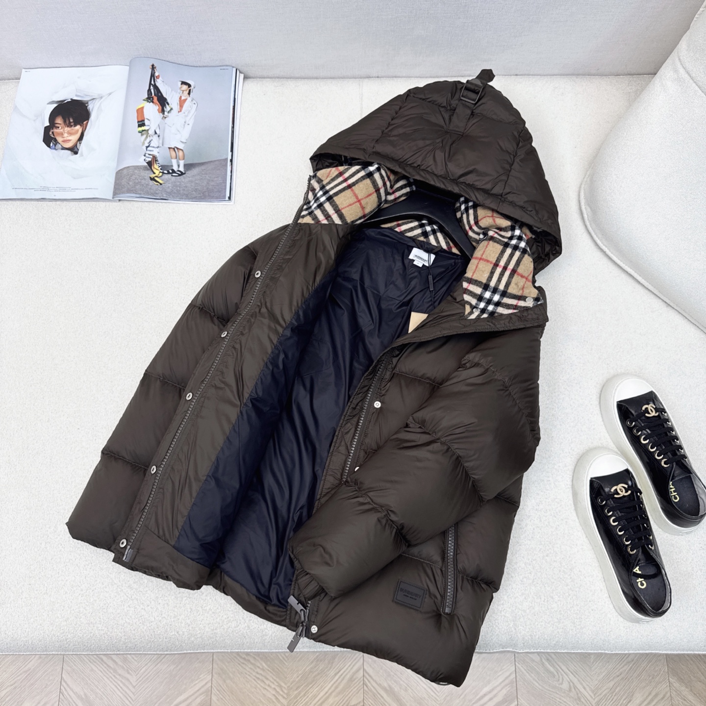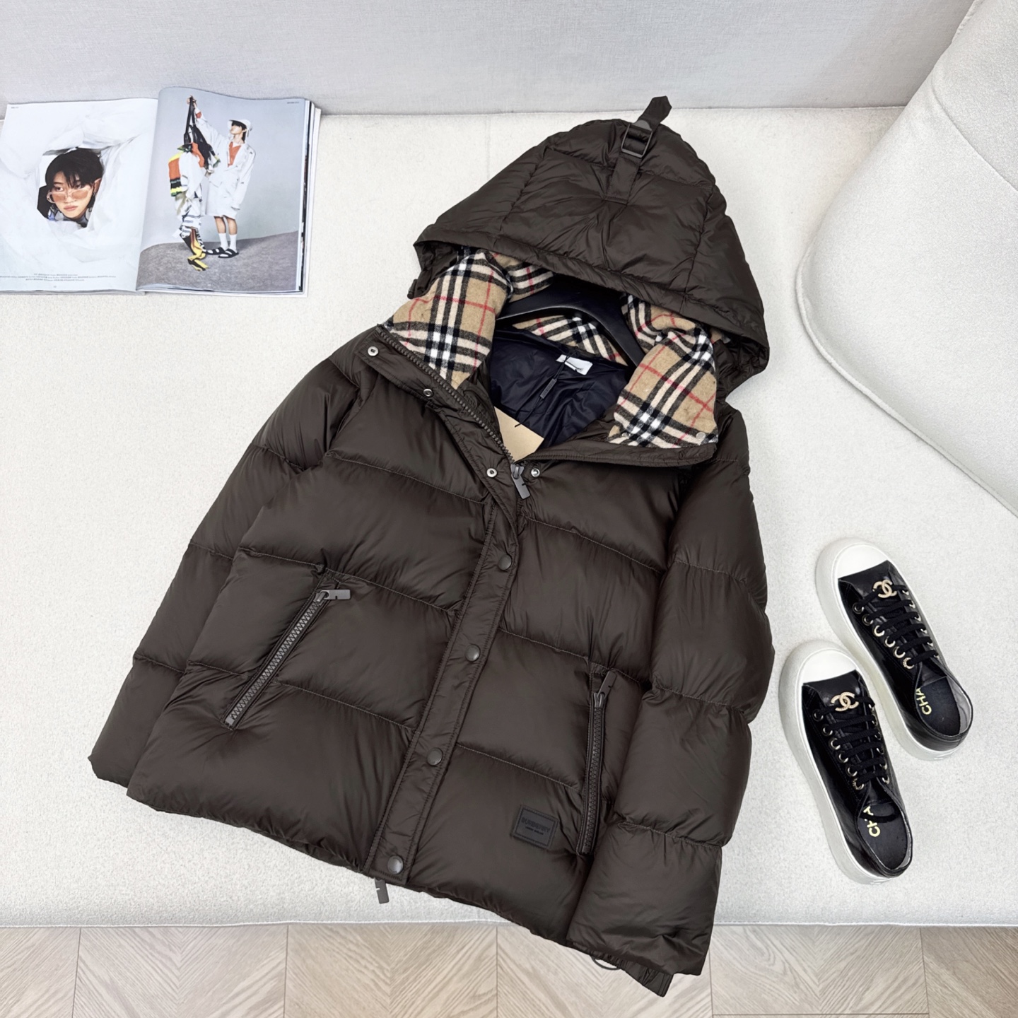 This Burberry down jacket is a stylish and practical addition to your wardrobe, perfect for staying warm and fashionable during the autumn and winter seasons.