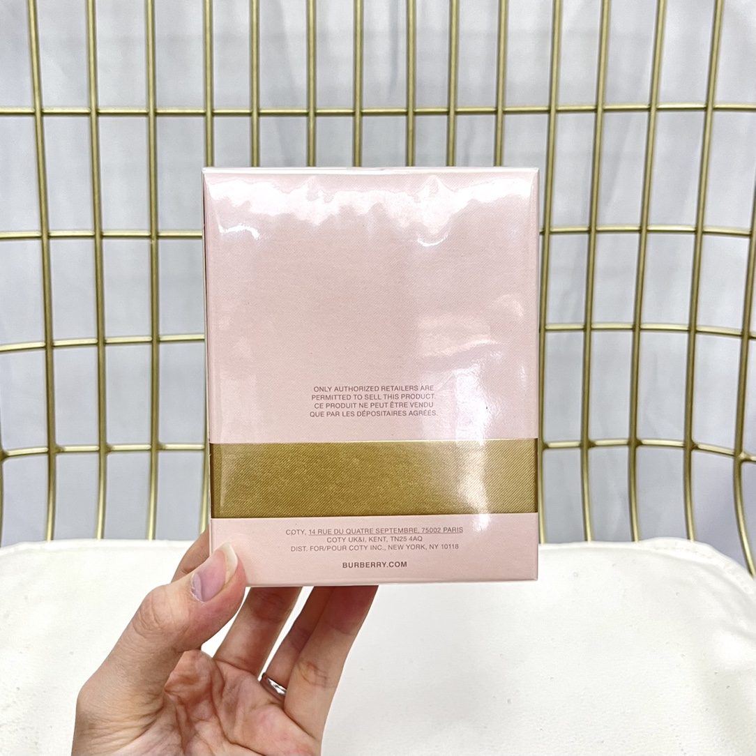 - Presented in a blush-colored glass bottle with Burberry's signature ribbon detail.