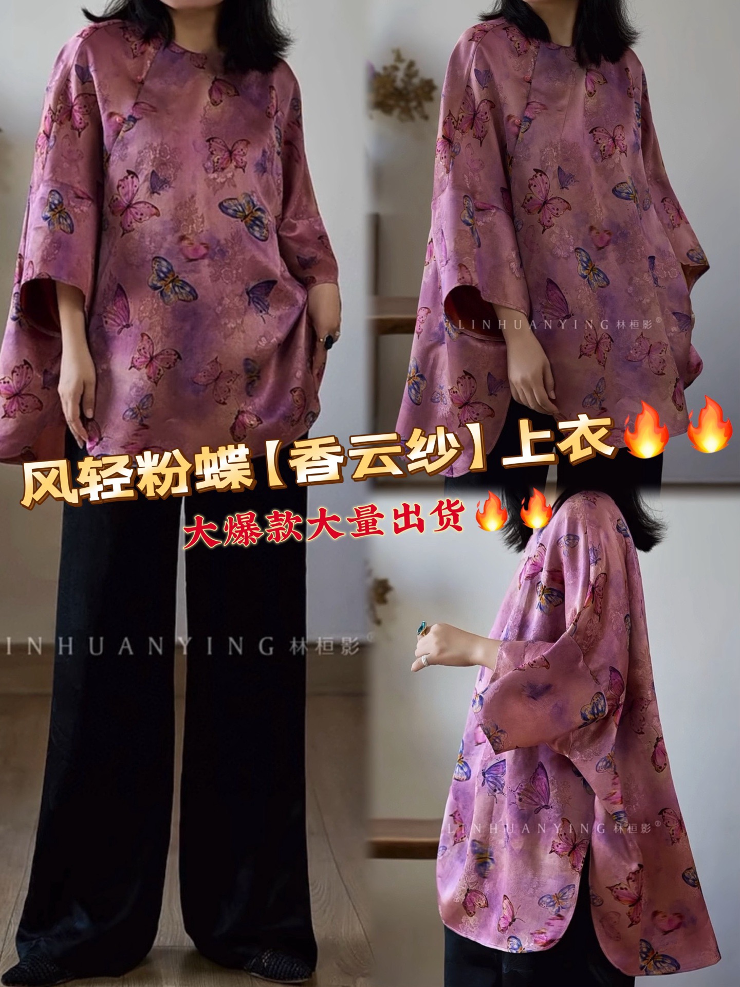 Elevate your wardrobe with this relaxed-fit blouse. Featuring a butterfly print and a loose, comfortable design, it's perfect for everyday wear.