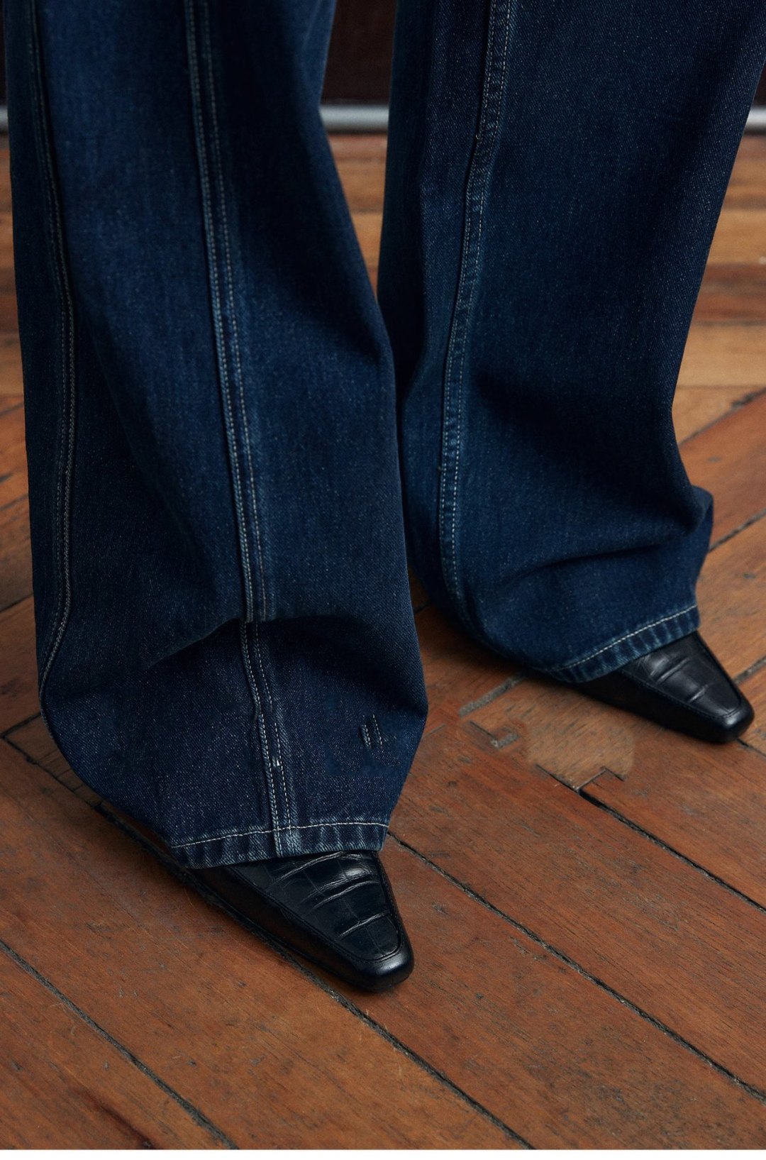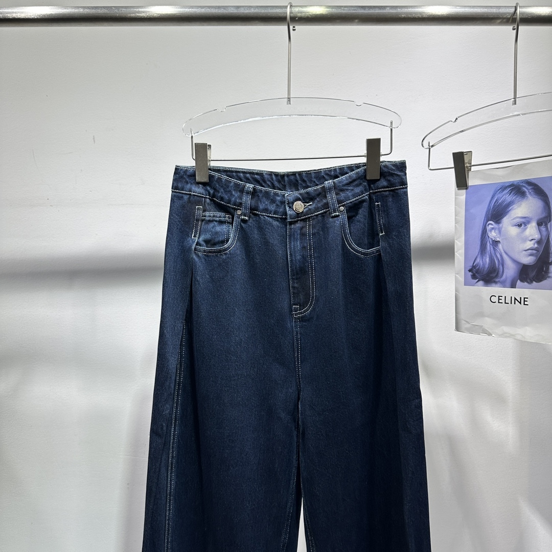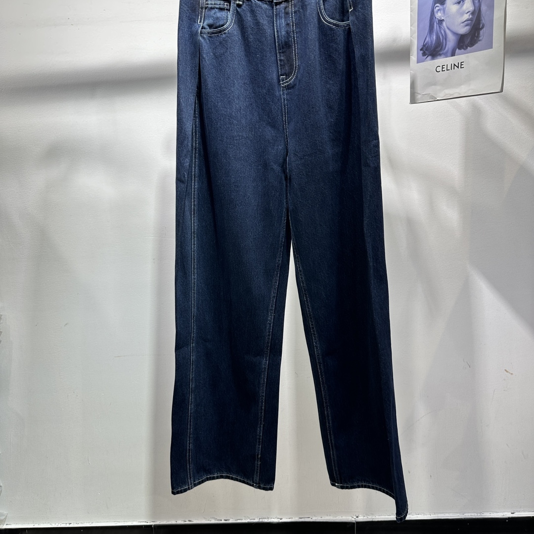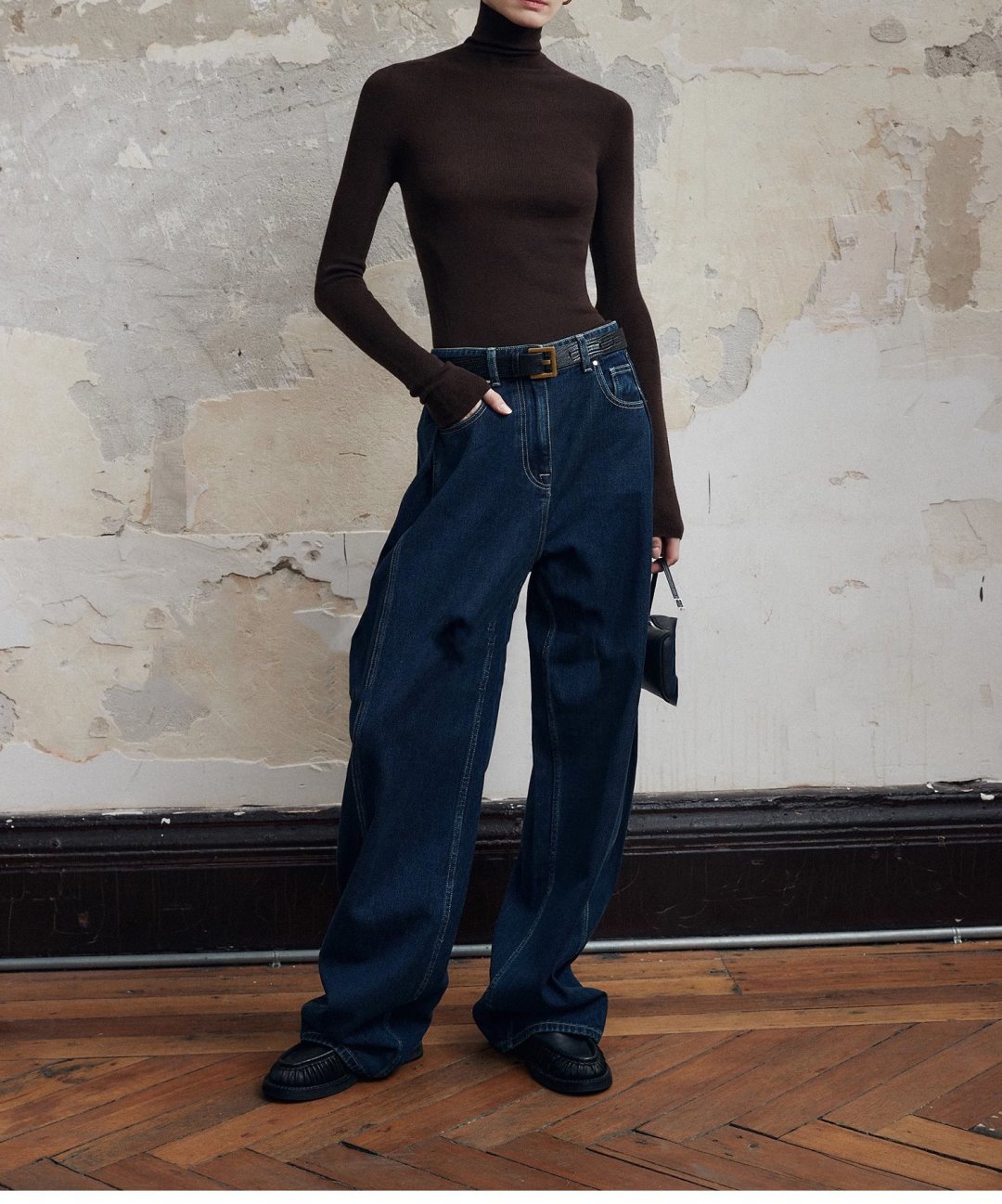 Tags: Comfortable Denim Pants, Dark Blue Wash Jeans, European Cotton Jeans, High Waisted Denim, Relaxed Fit Jeans, Wide Leg Jeans