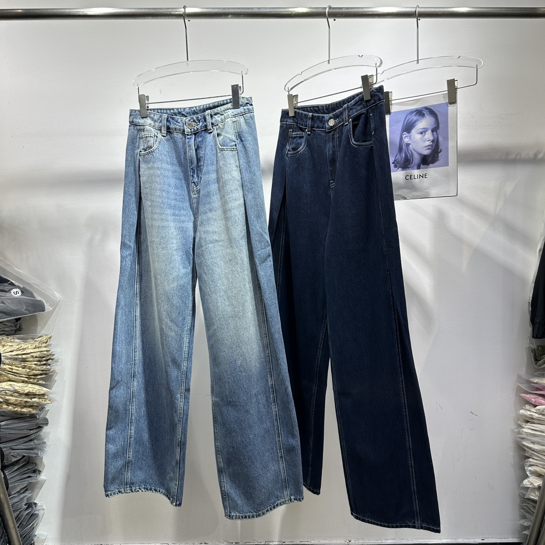 Experience the ultimate in comfort and style with our European-imported cotton wide-leg jeans. These jeans are designed for a relaxed fit, providing both comfort and a fashionable look.