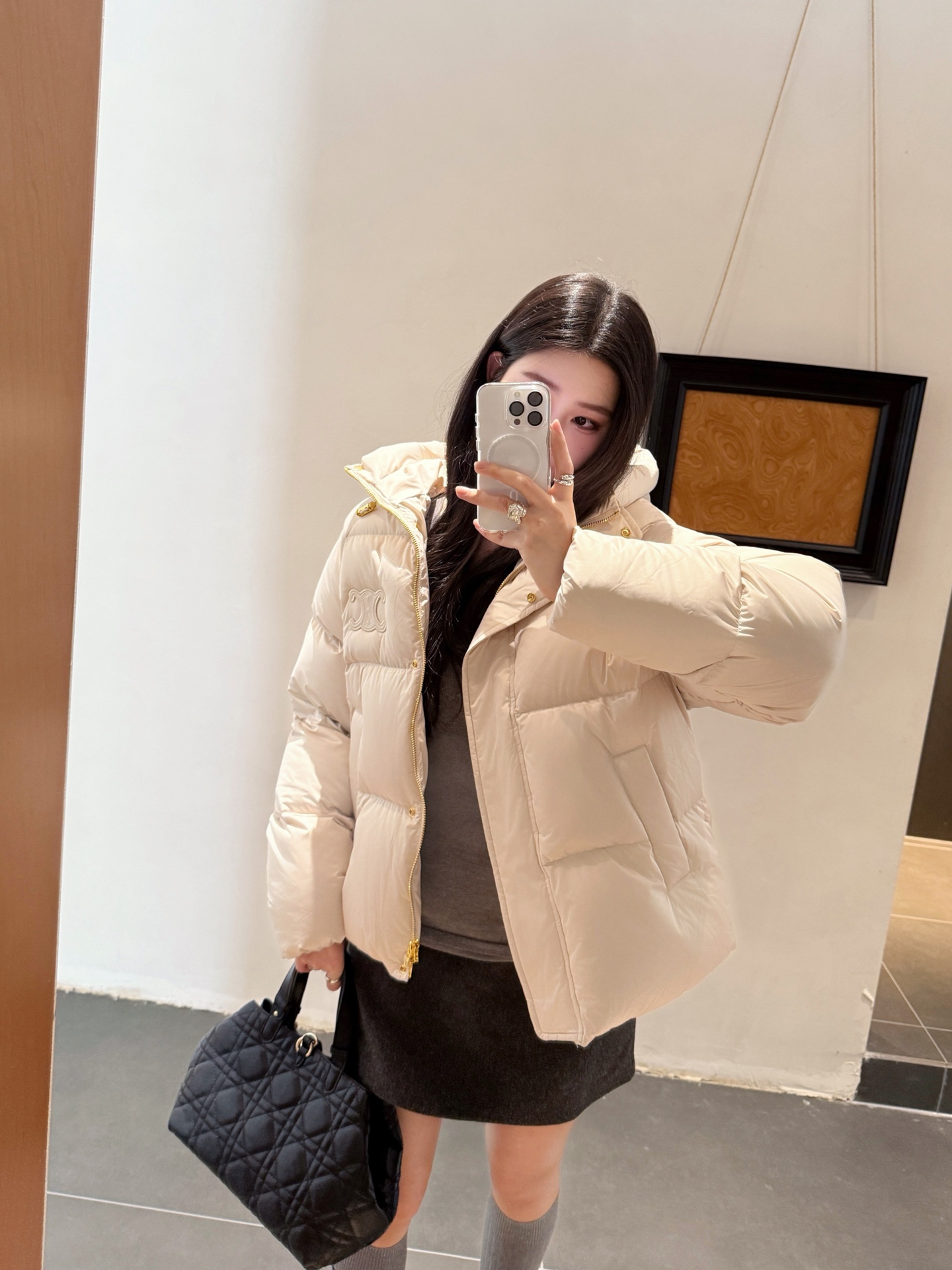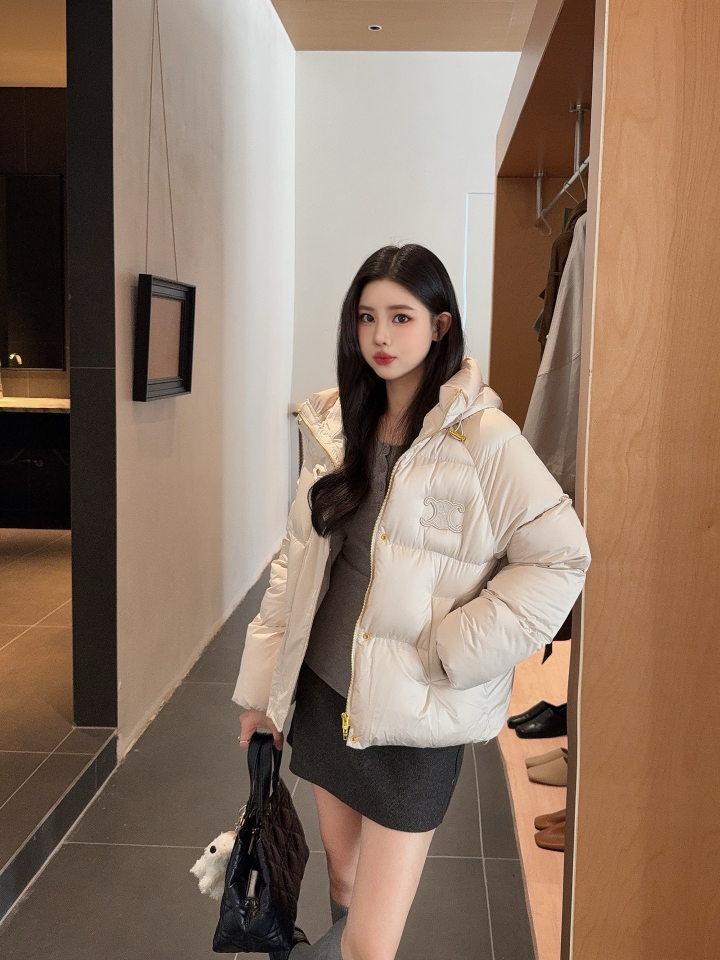 Celine 25SS Hooded Puffer Jacket with Triomphe Patch - Stylish & Warm