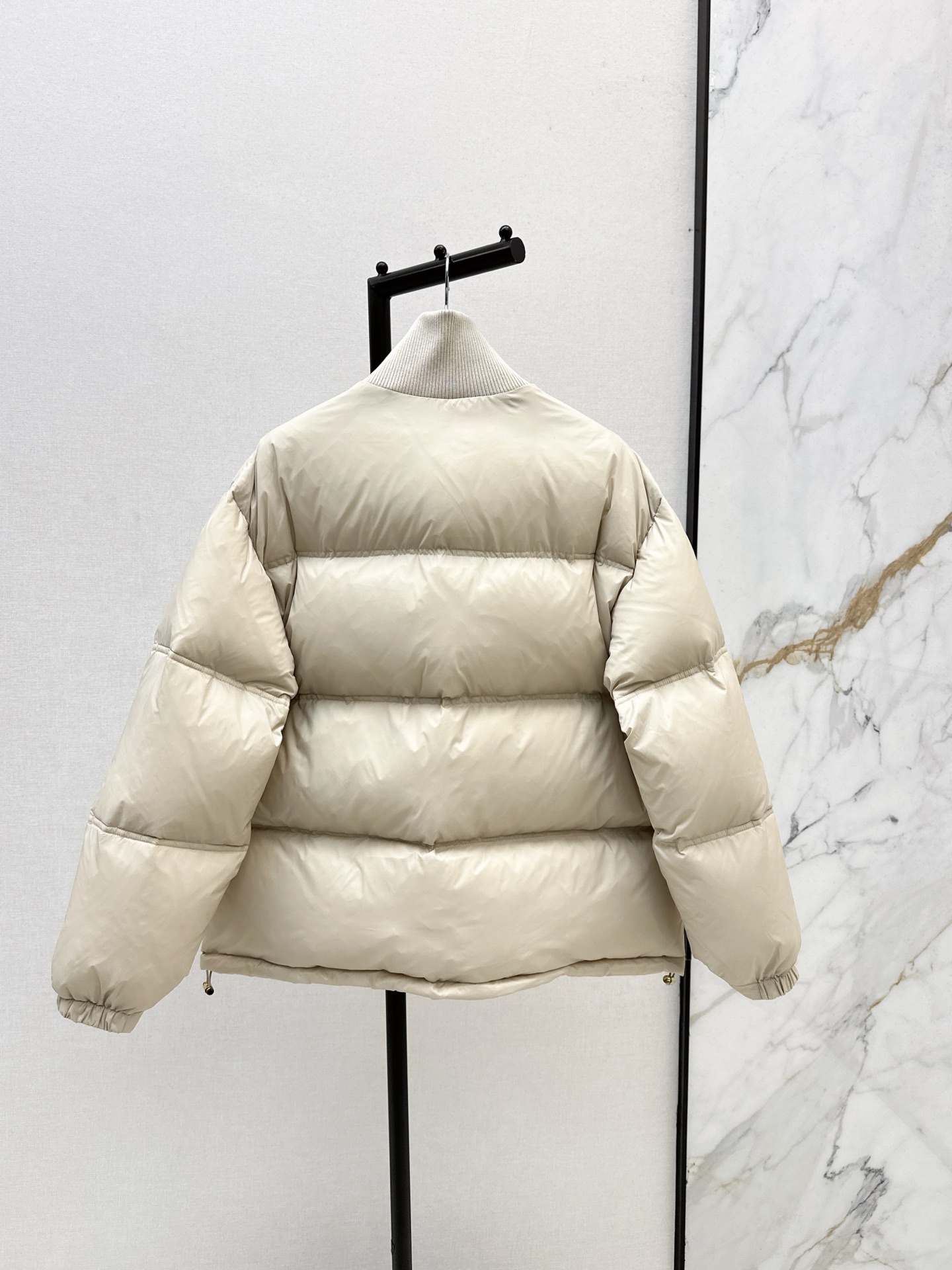 Celine Down Jacket With Triomphe Embroidery, High Neck, And Patch Pockets