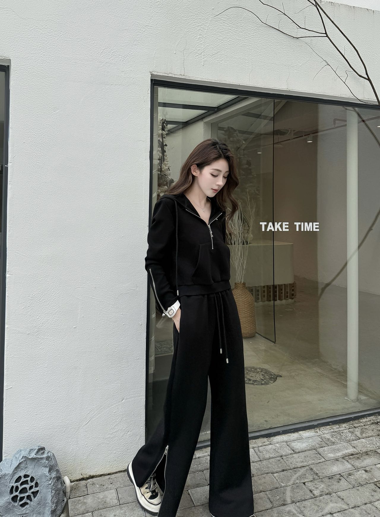 I absolutely love this set! The material is so soft and comfortable. The zippered leg opening is a nice touch and allows me to style it differently. Definitely recommend!