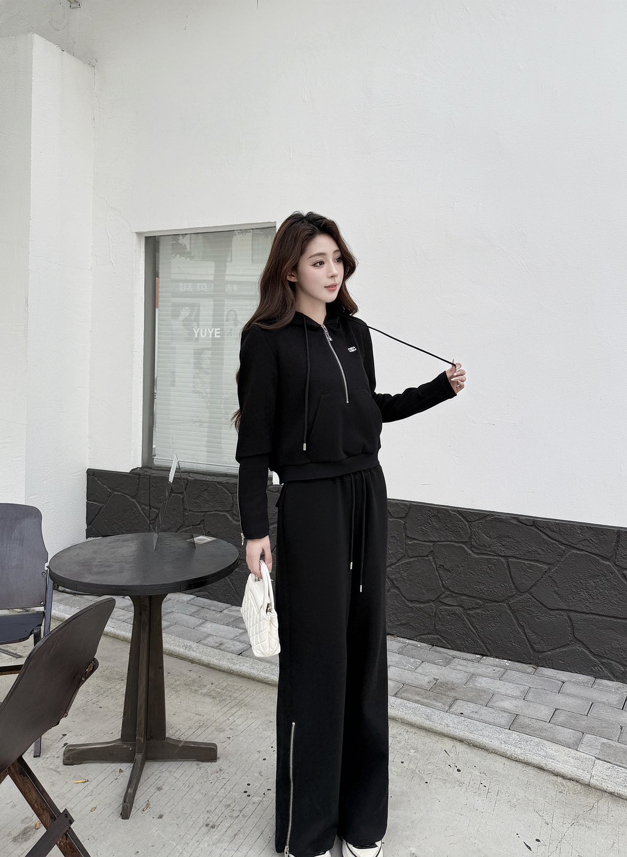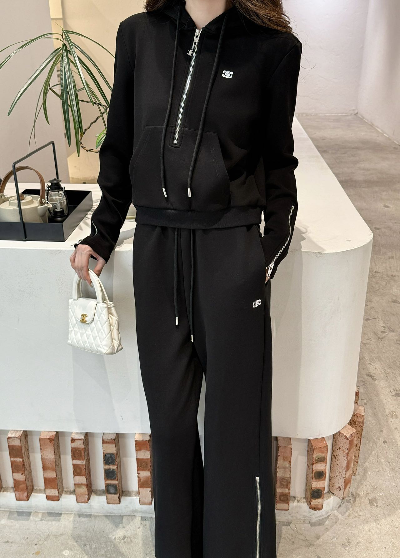 Tags: Casual Fashion Set, Celine Inspired Set, Hoodie And Pants Set, Logo Embroidered Outfit, Women's Loungewear Set, Zippered Wide Leg Pants