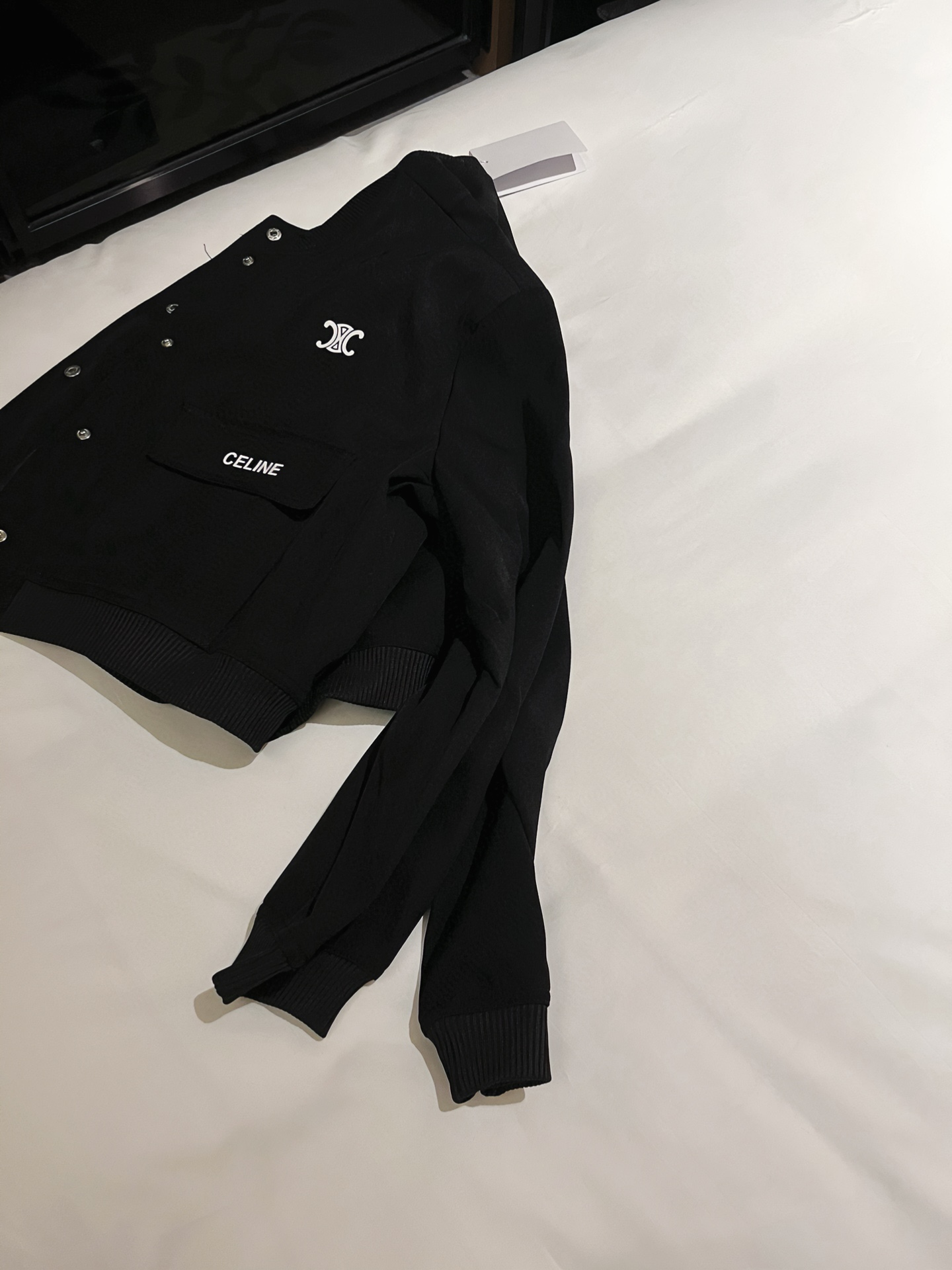 Celine Printed Cropped Jacket Stylish, Elegant Coat, Black and White, S-L