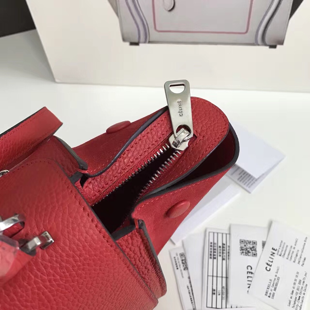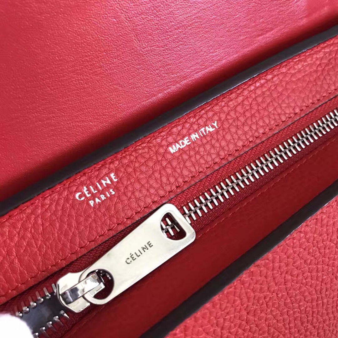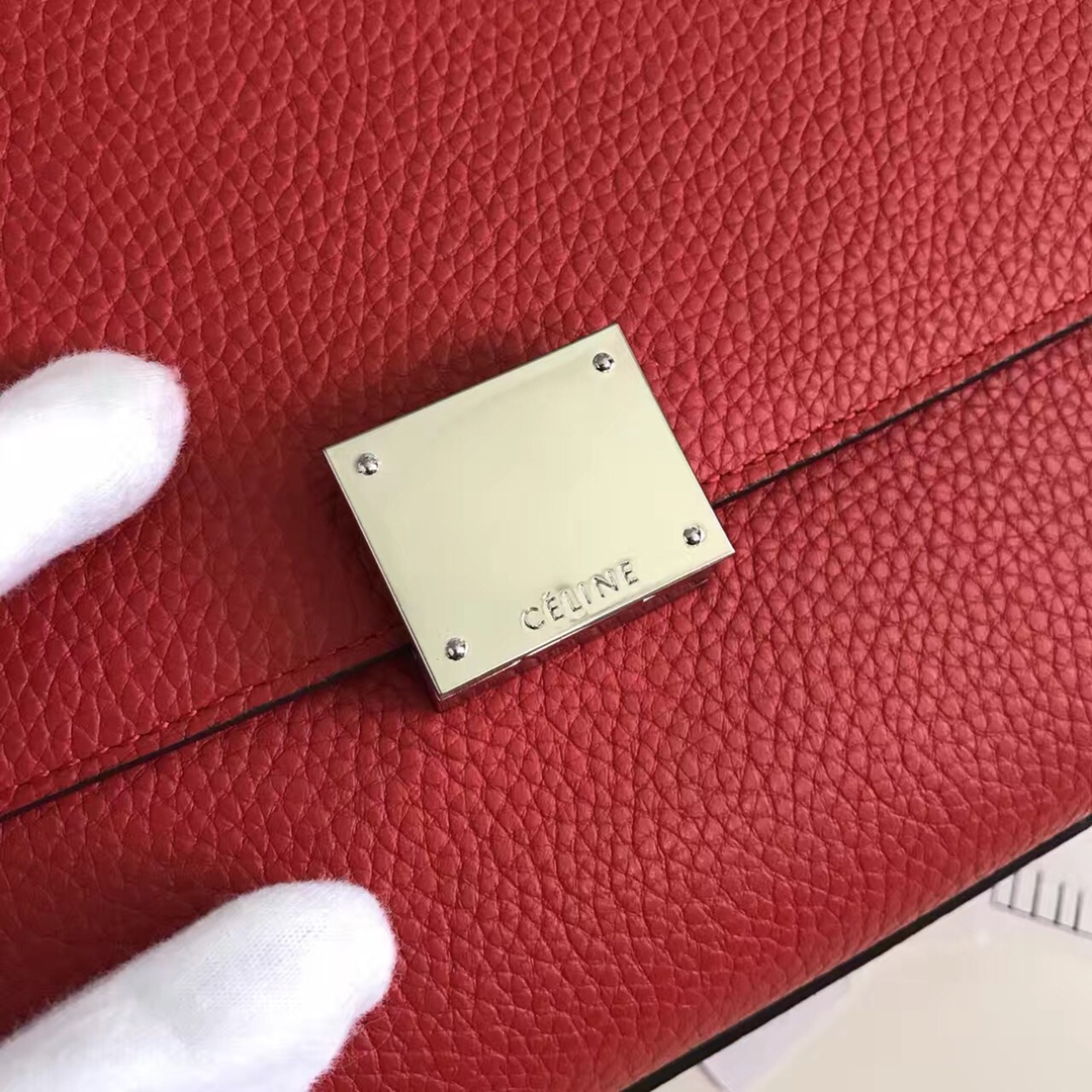 Celine Trapeze Bag, Red Leather Satchel Shoulder Bag, Silver Hardware