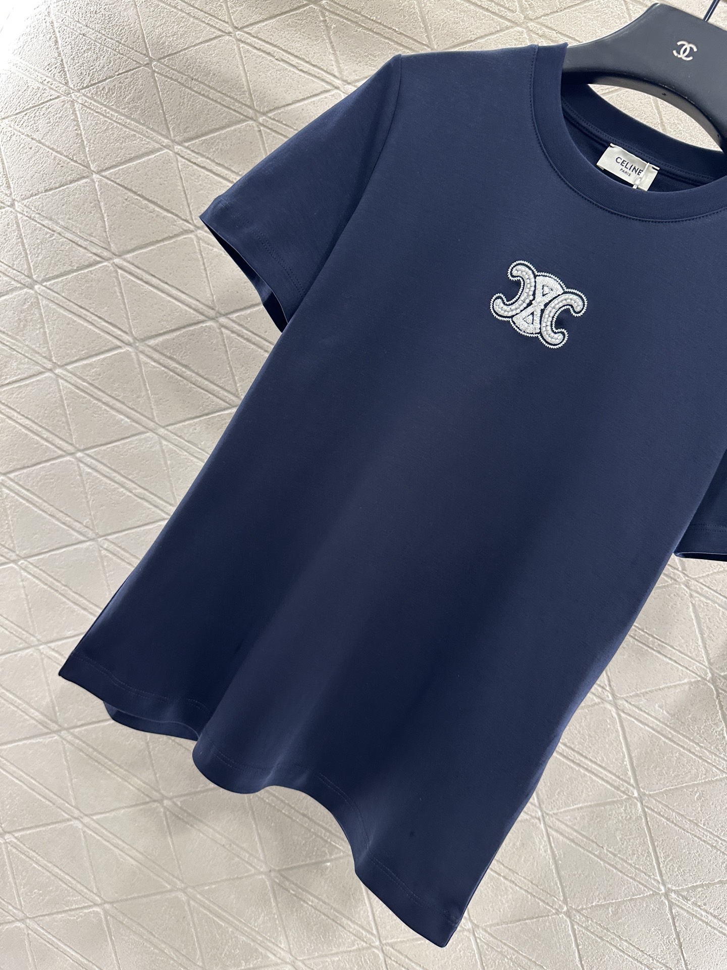 Elevate your casual style with this Celine Triomphe logo tee. Crafted from soft, breathable cotton with a regular fit and beaded logo.