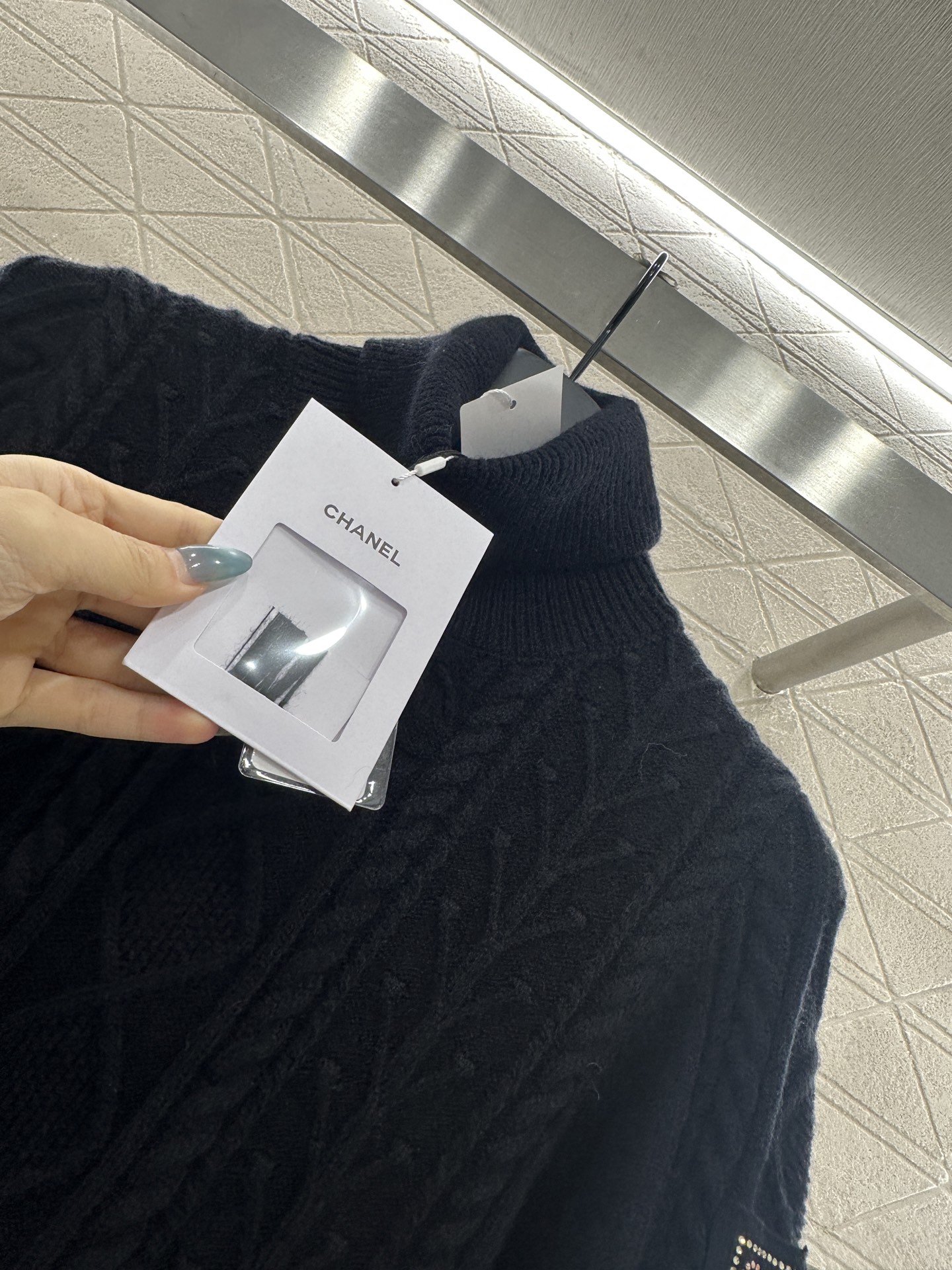 This Chanel cable-knit turtleneck sweater is a luxurious addition to any wardrobe.
