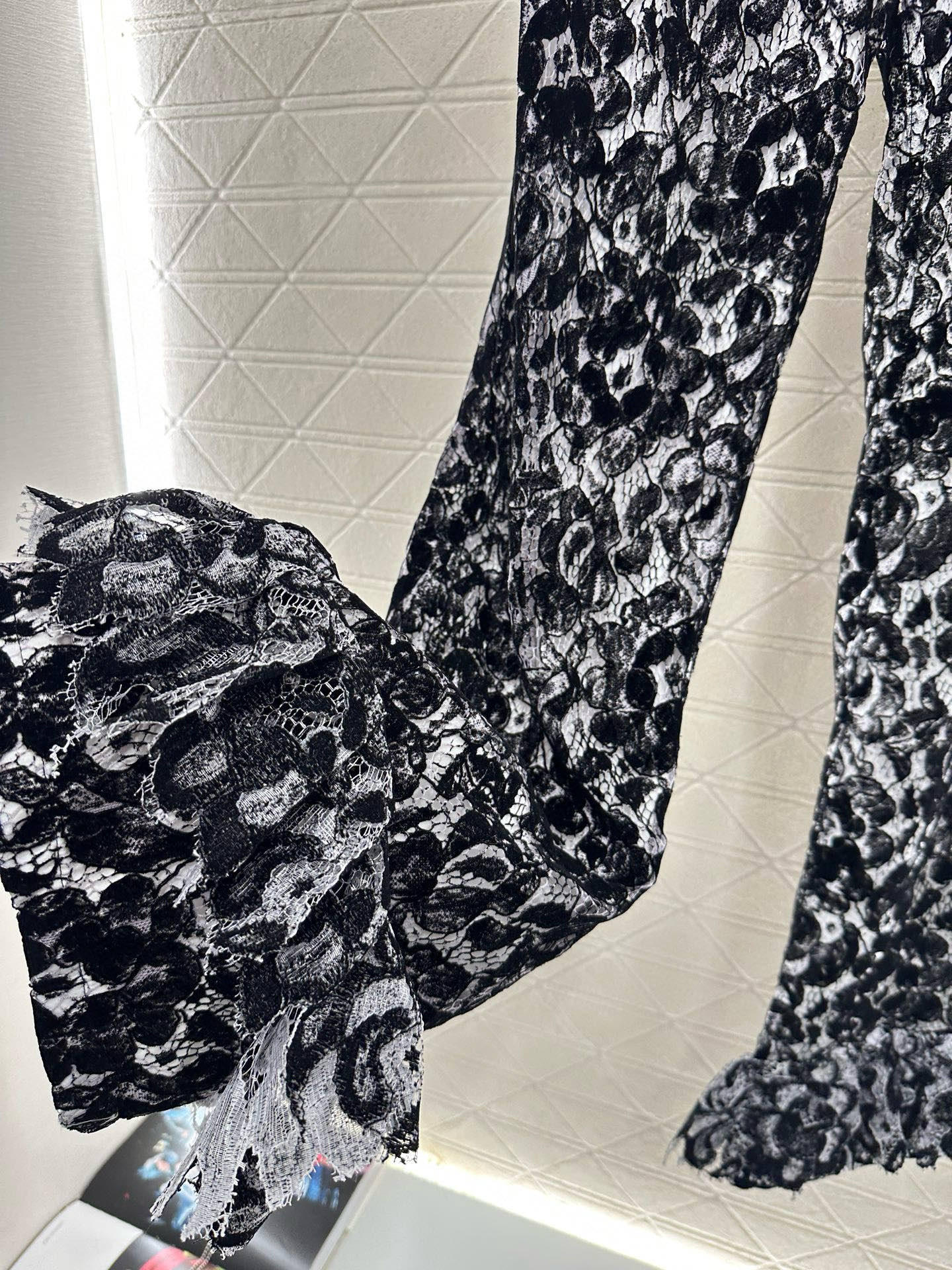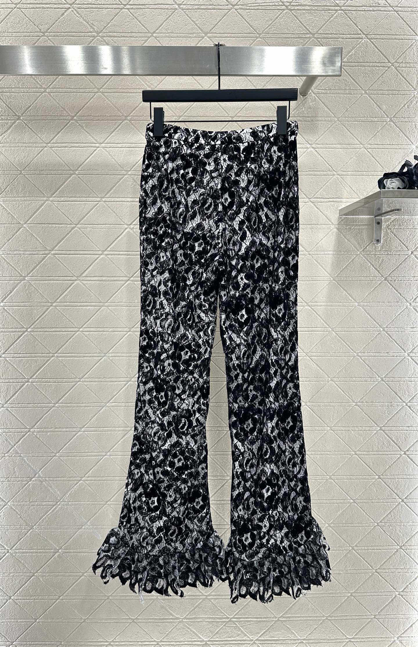 Chanel 2025 Lace Overlay Flared Pants with Ruffled Hem - Elegant and Chic
