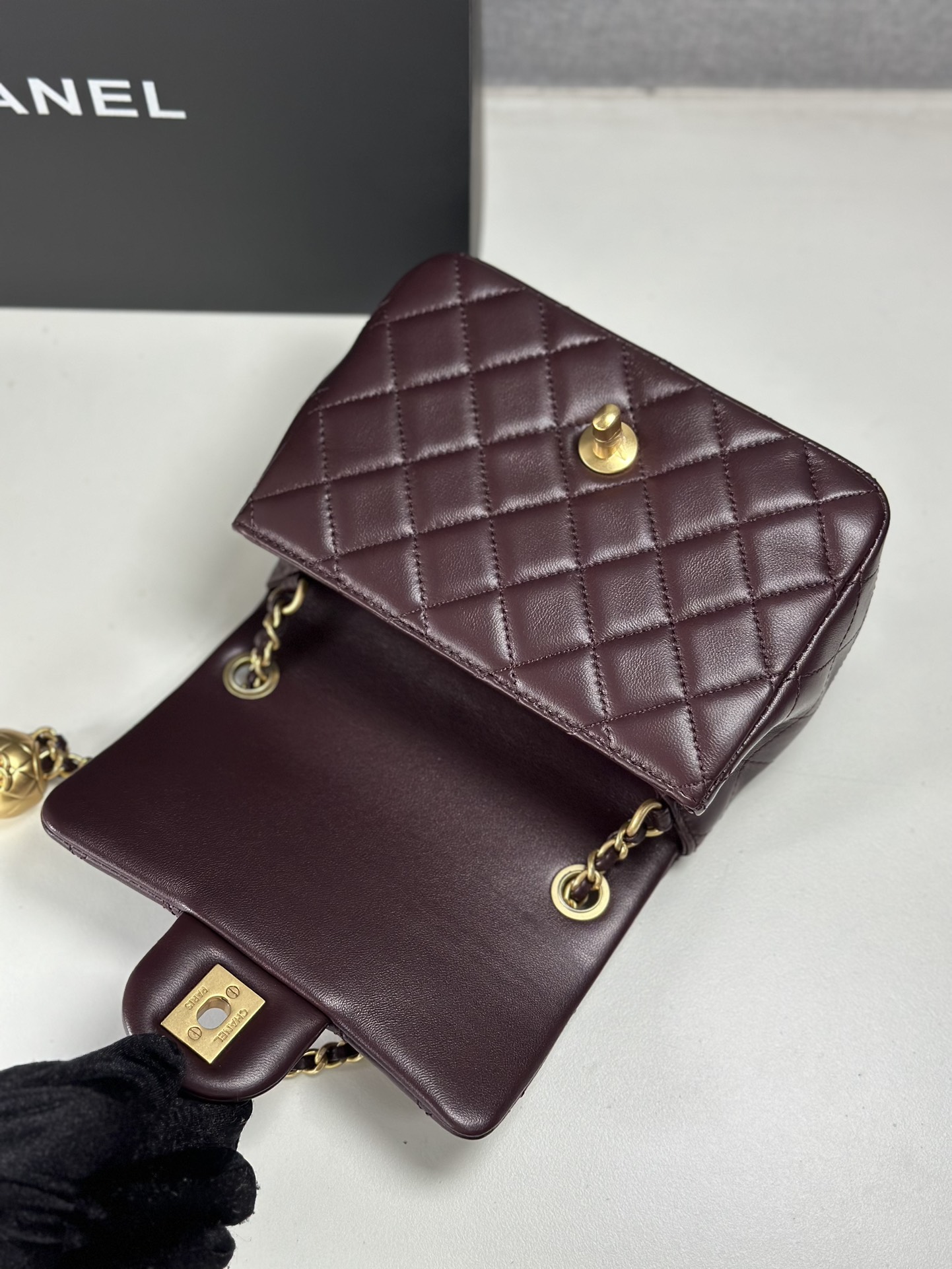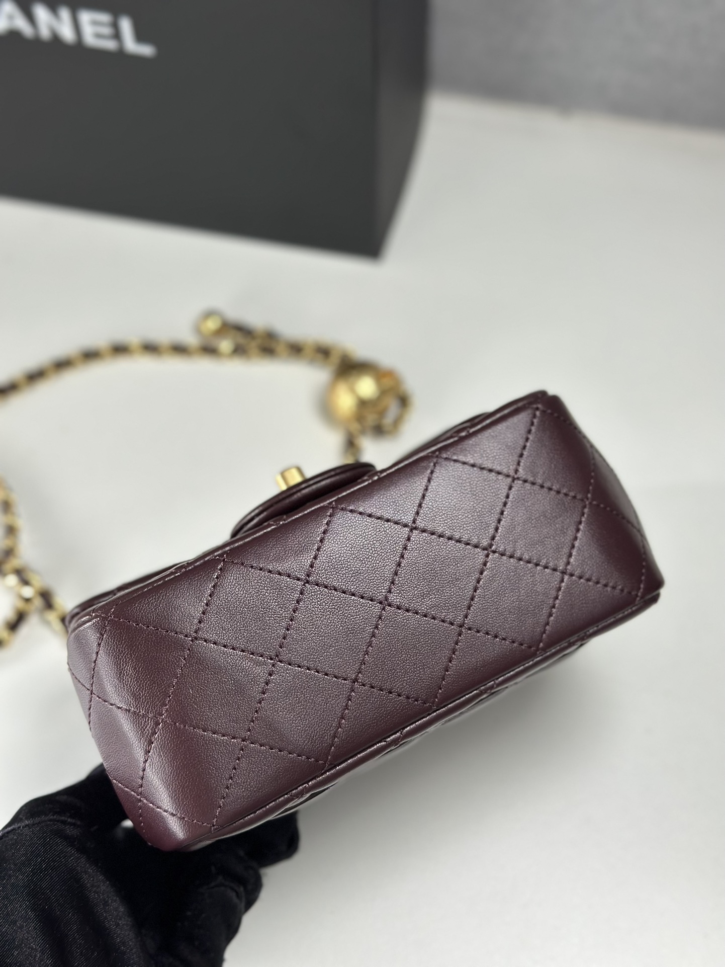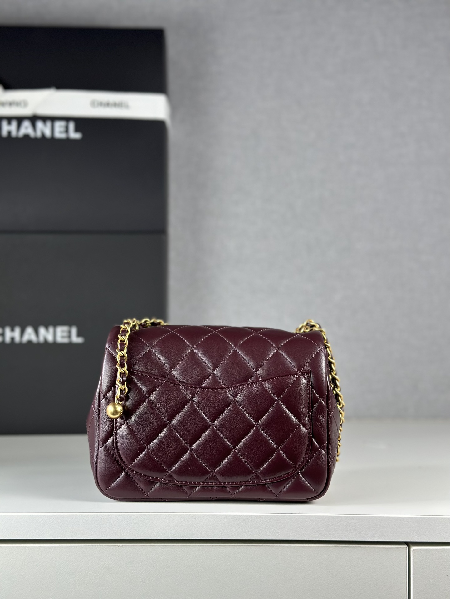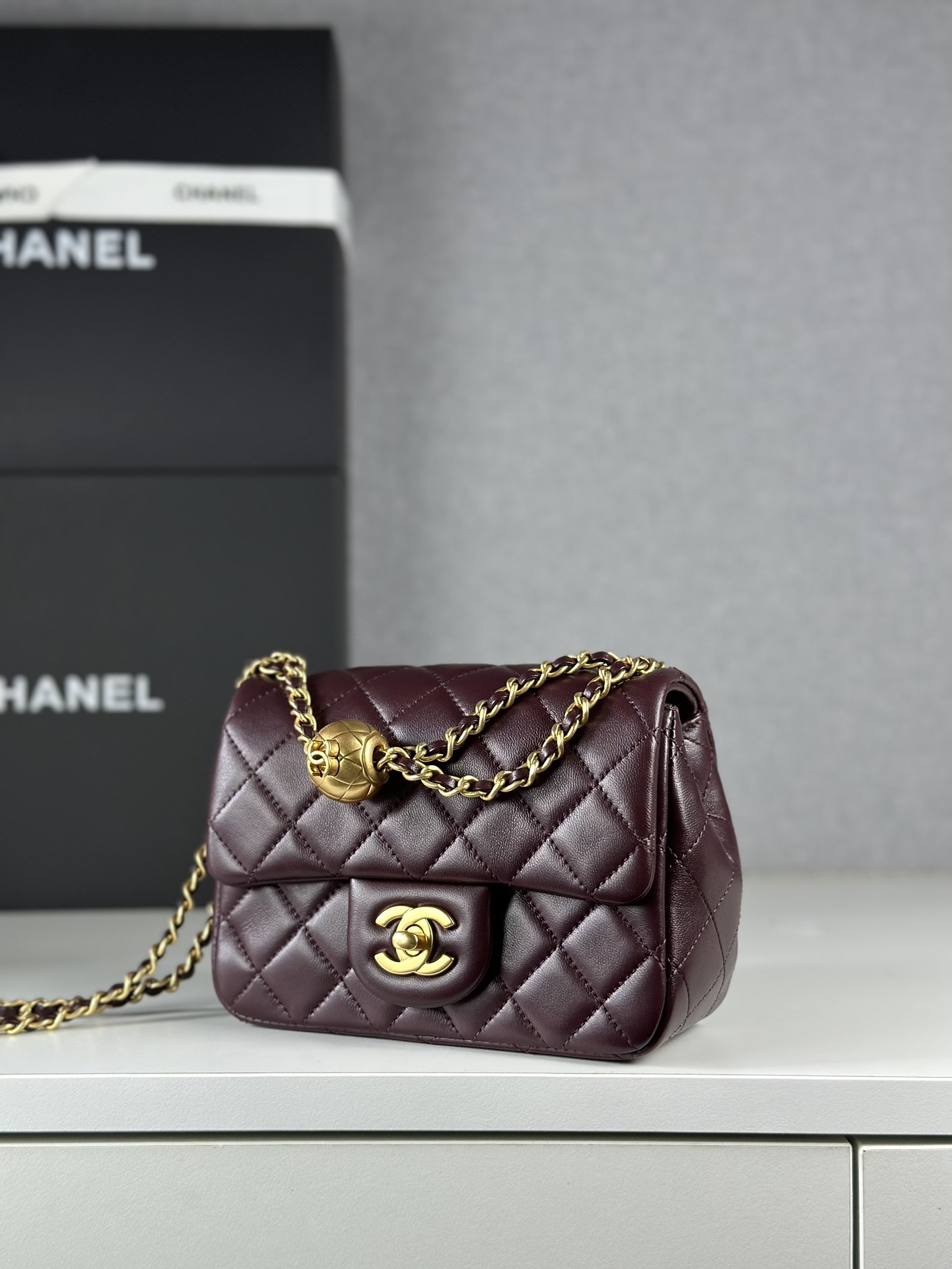 I absolutely love this Chanel bag! The burgundy color is so rich and beautiful, and the golden ball is such a unique touch. It's the perfect size for everyday use, and I get so many compliments on it.