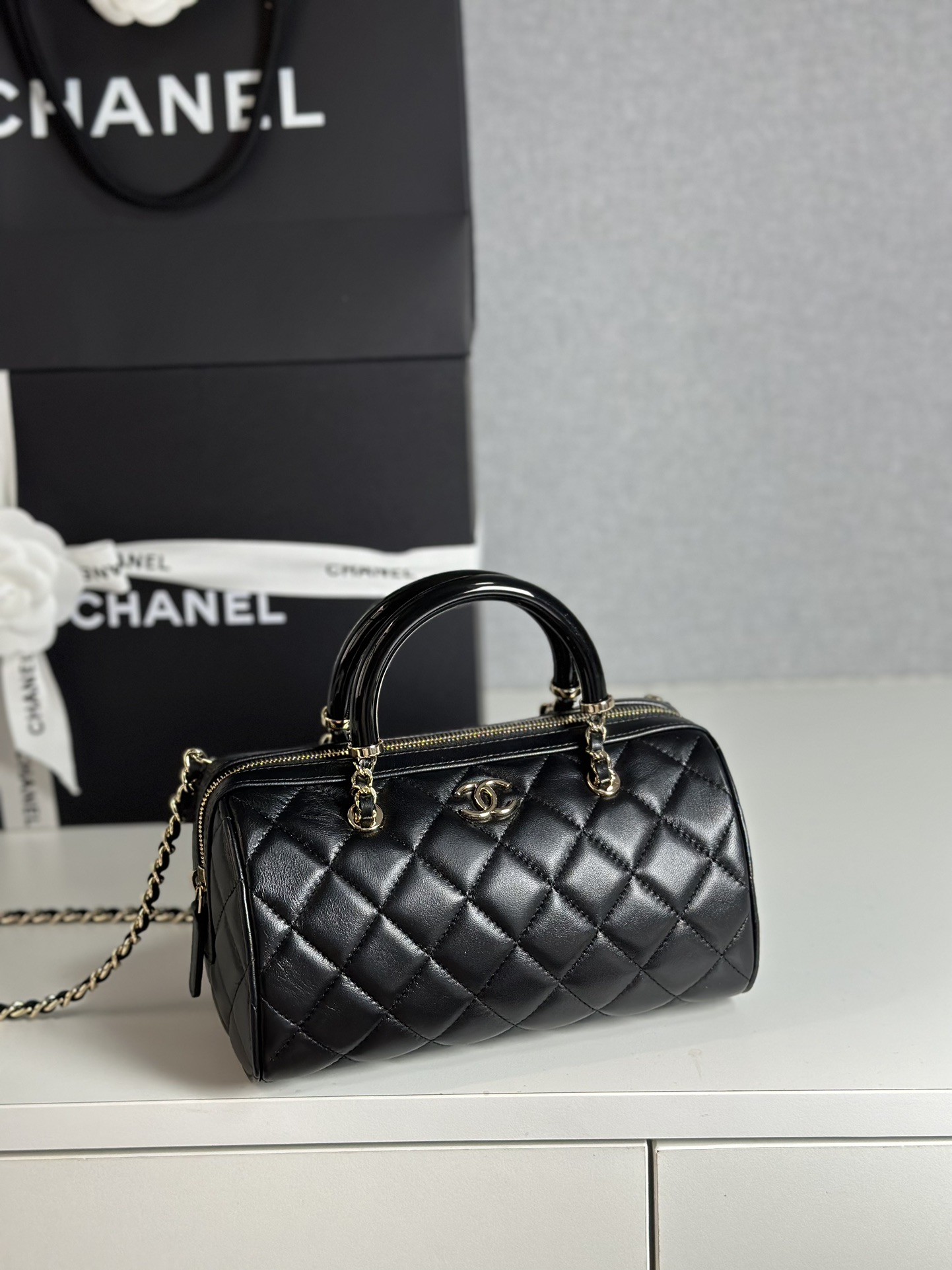 This exquisite Chanel mini bowling bag is a must-have for any fashion enthusiast. Its unique design and high-quality materials make it a standout piece.