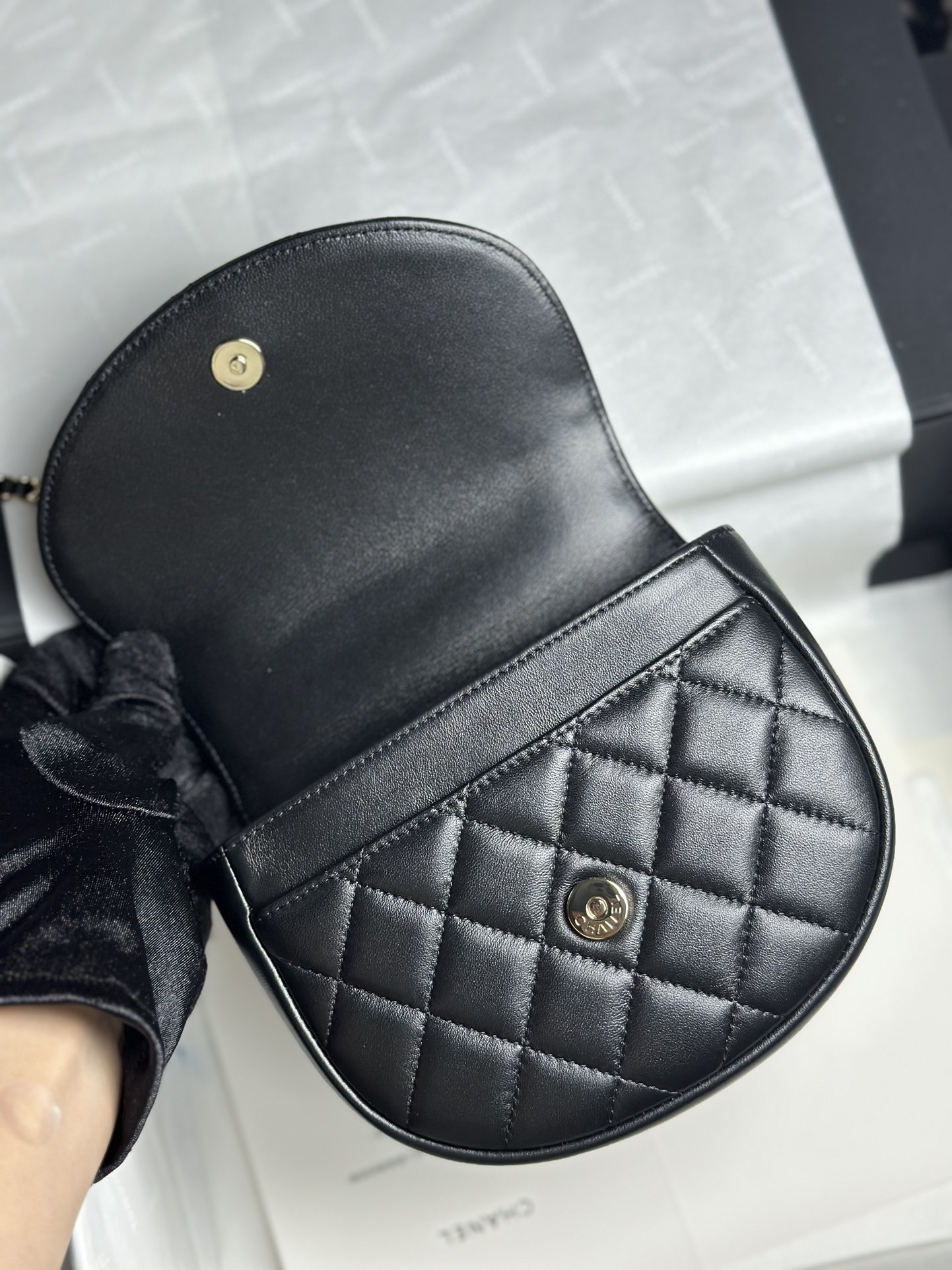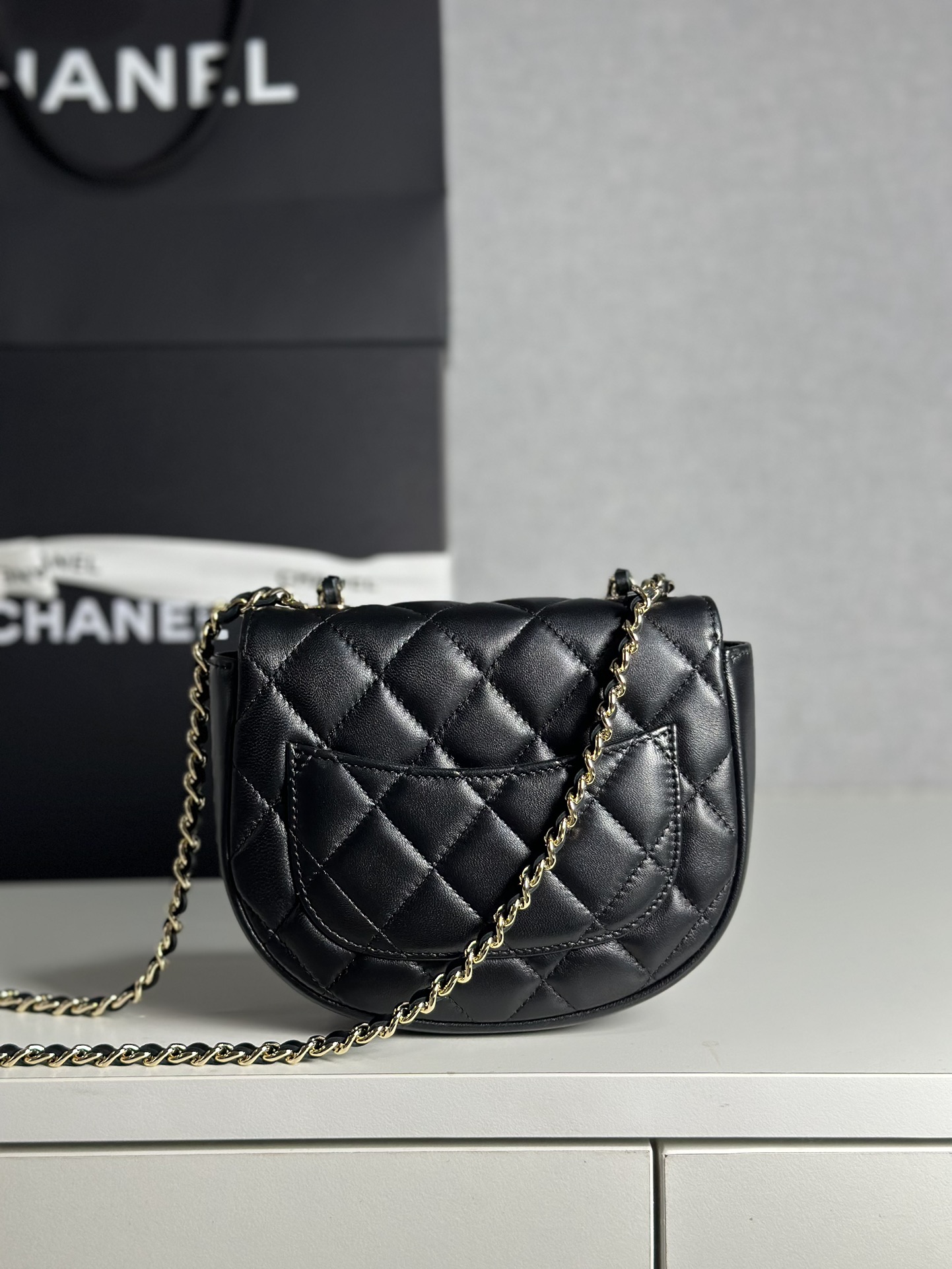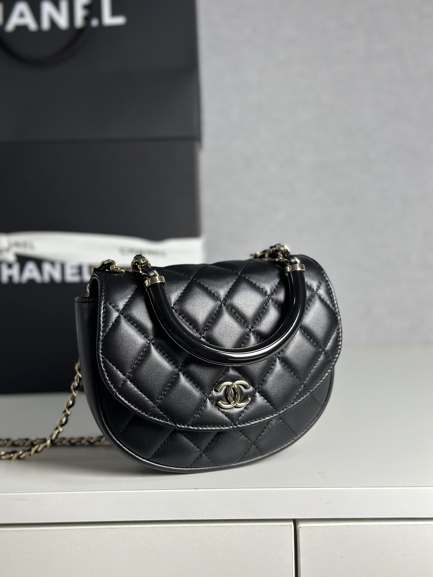 Chanel 25C Mini Half-Moon Bag with Enamel Handle & Lambskin Leather