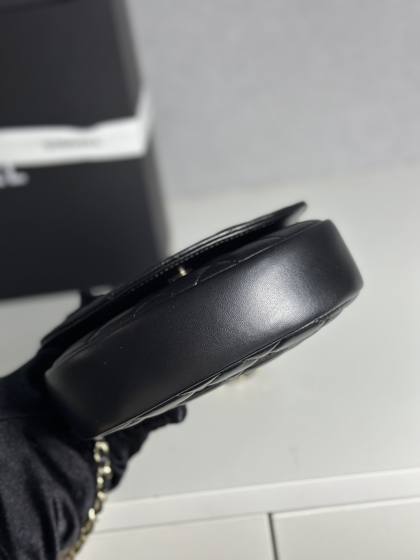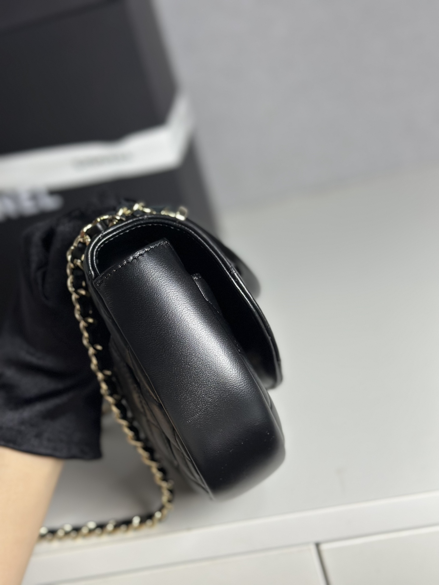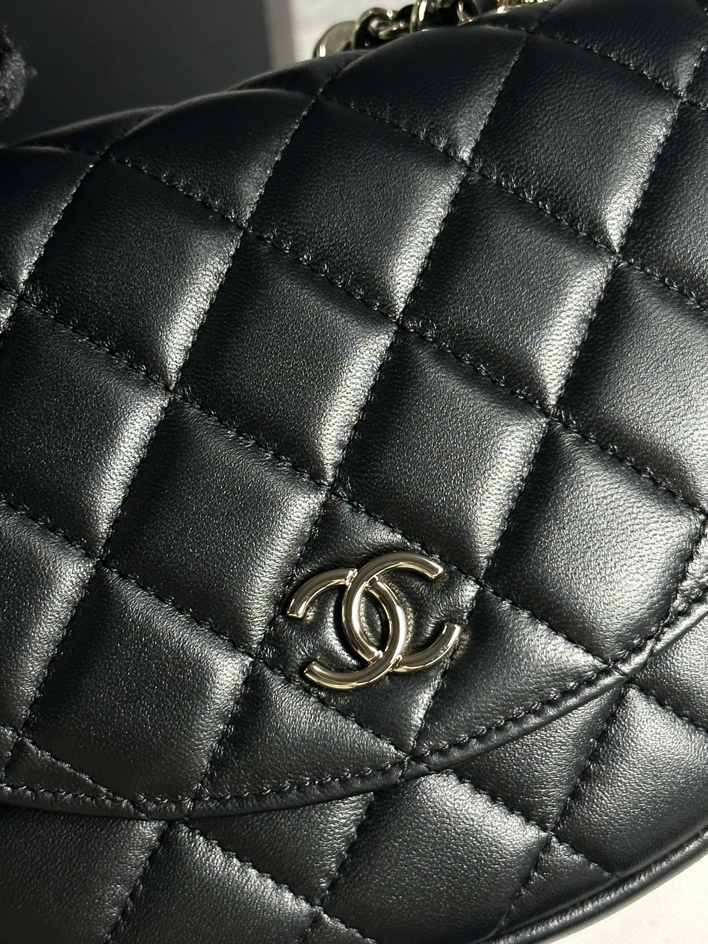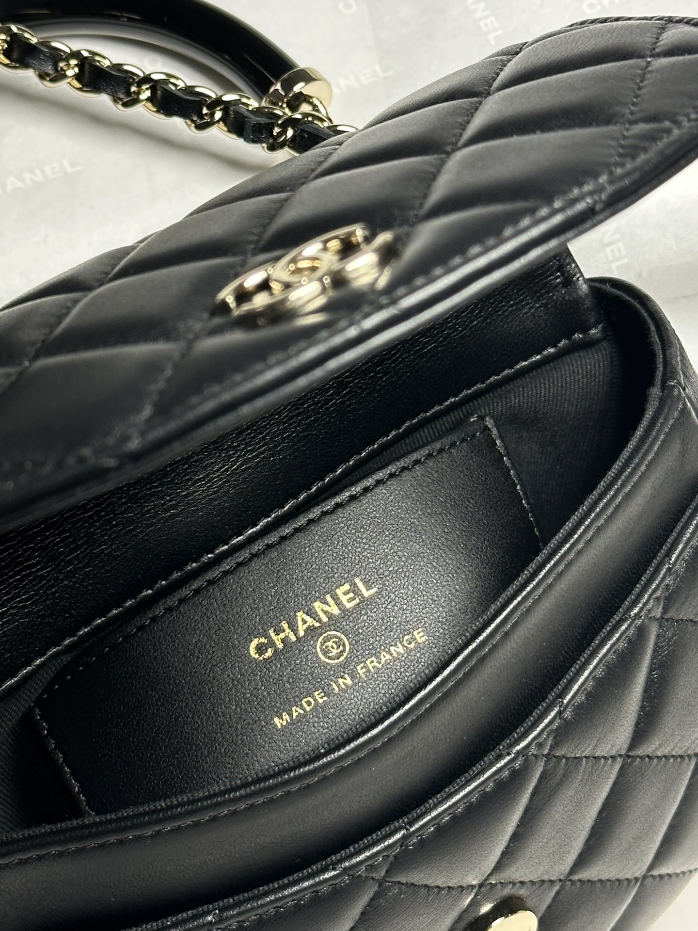 Chanel 25C Mini Half-Moon Bag with Enamel Handle & Lambskin Leather