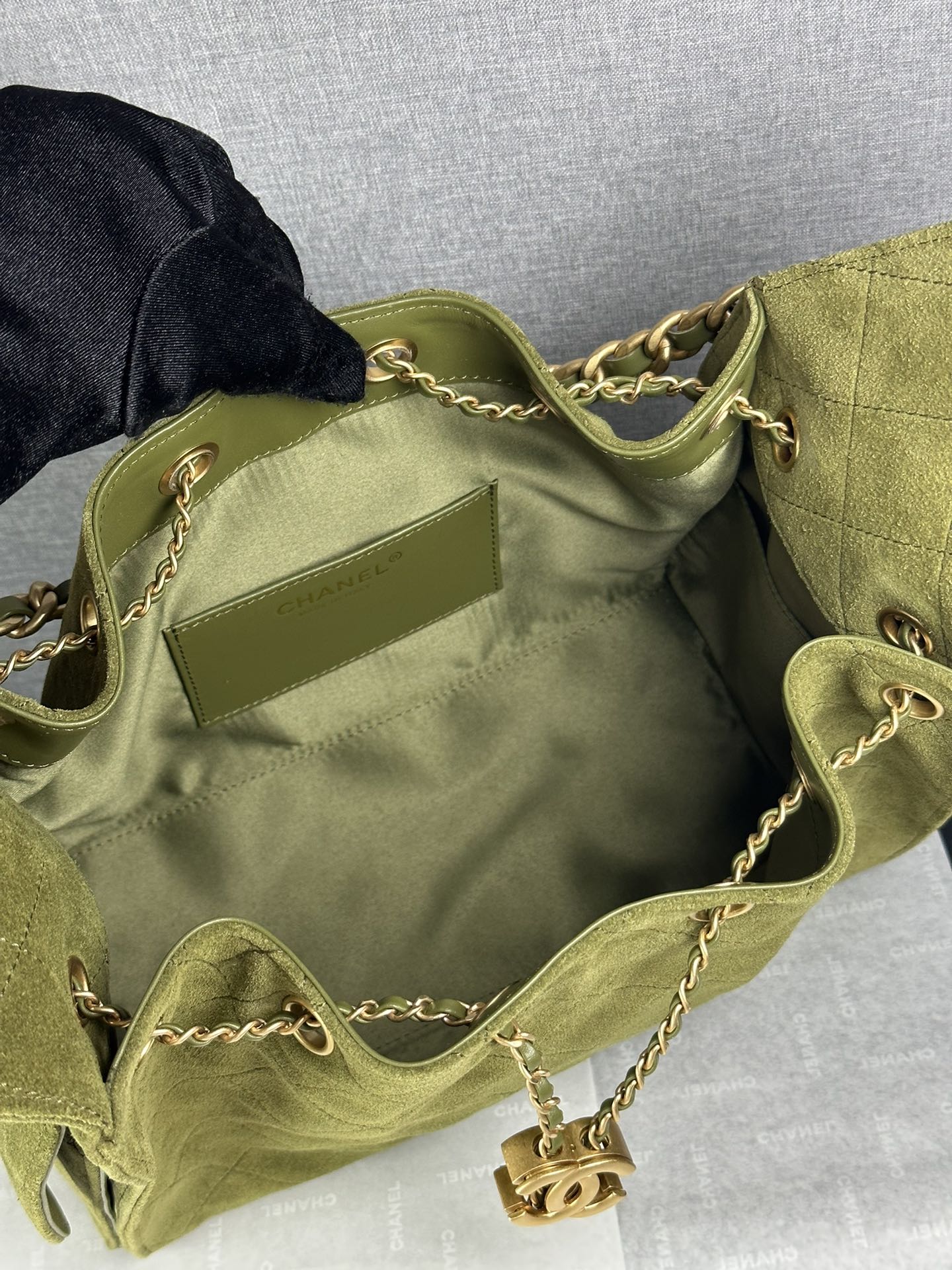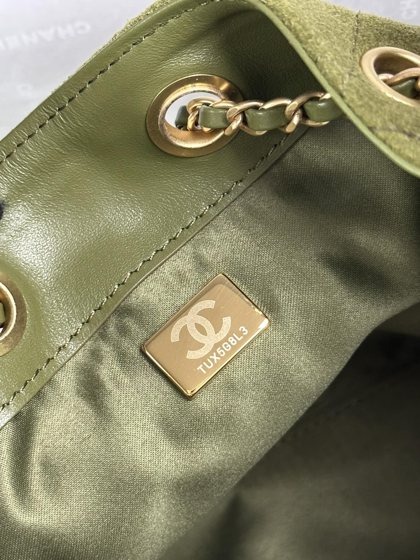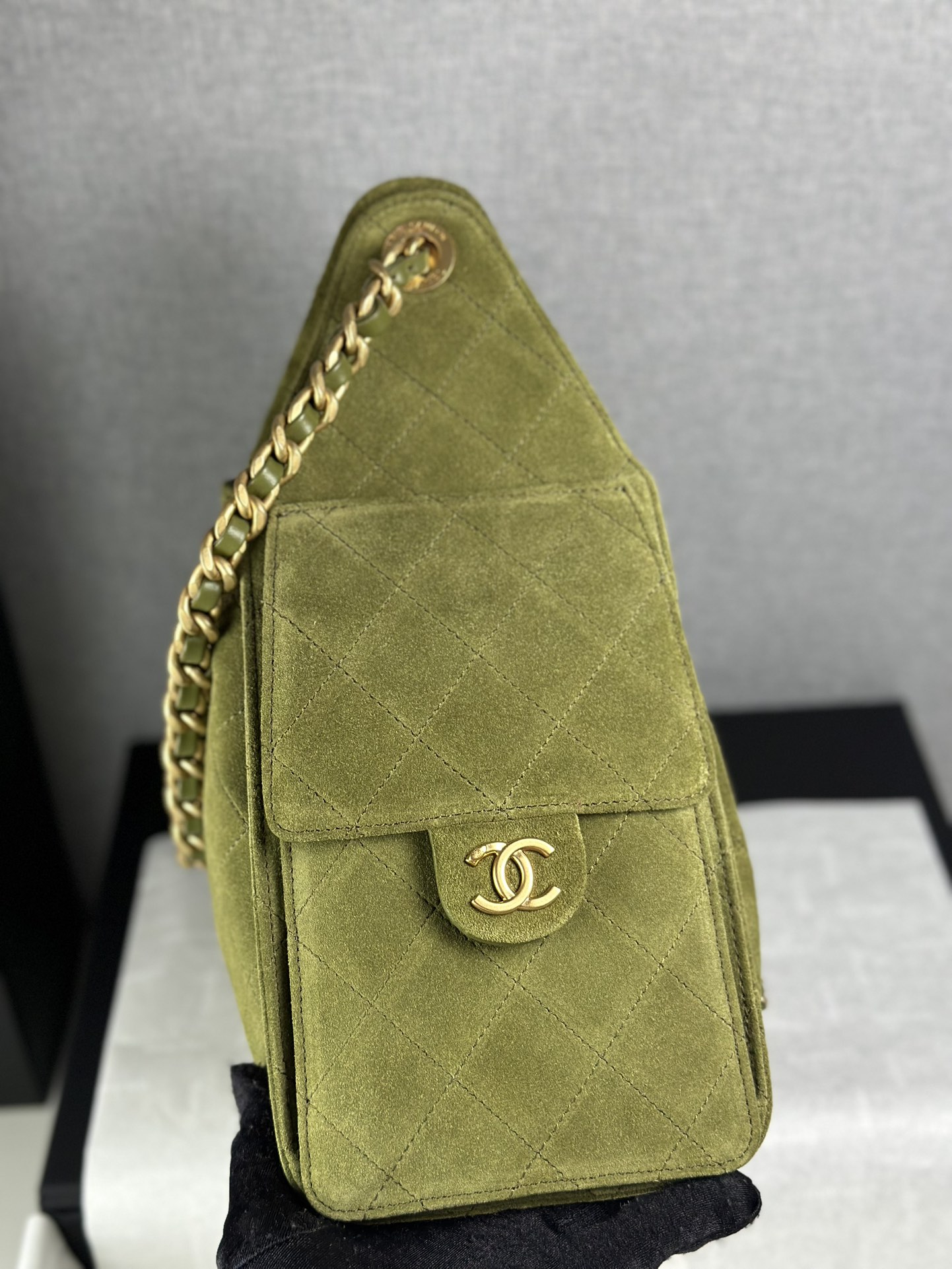 Chanel 25K Hobo Small Green Suede Drawstring Bucket Bag