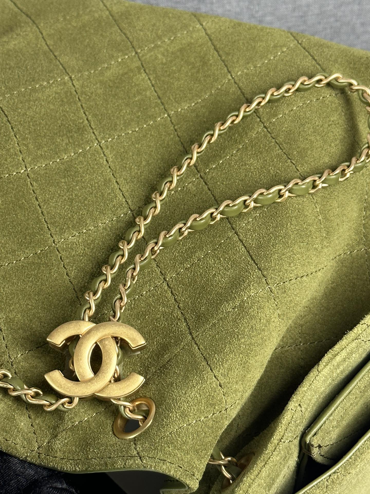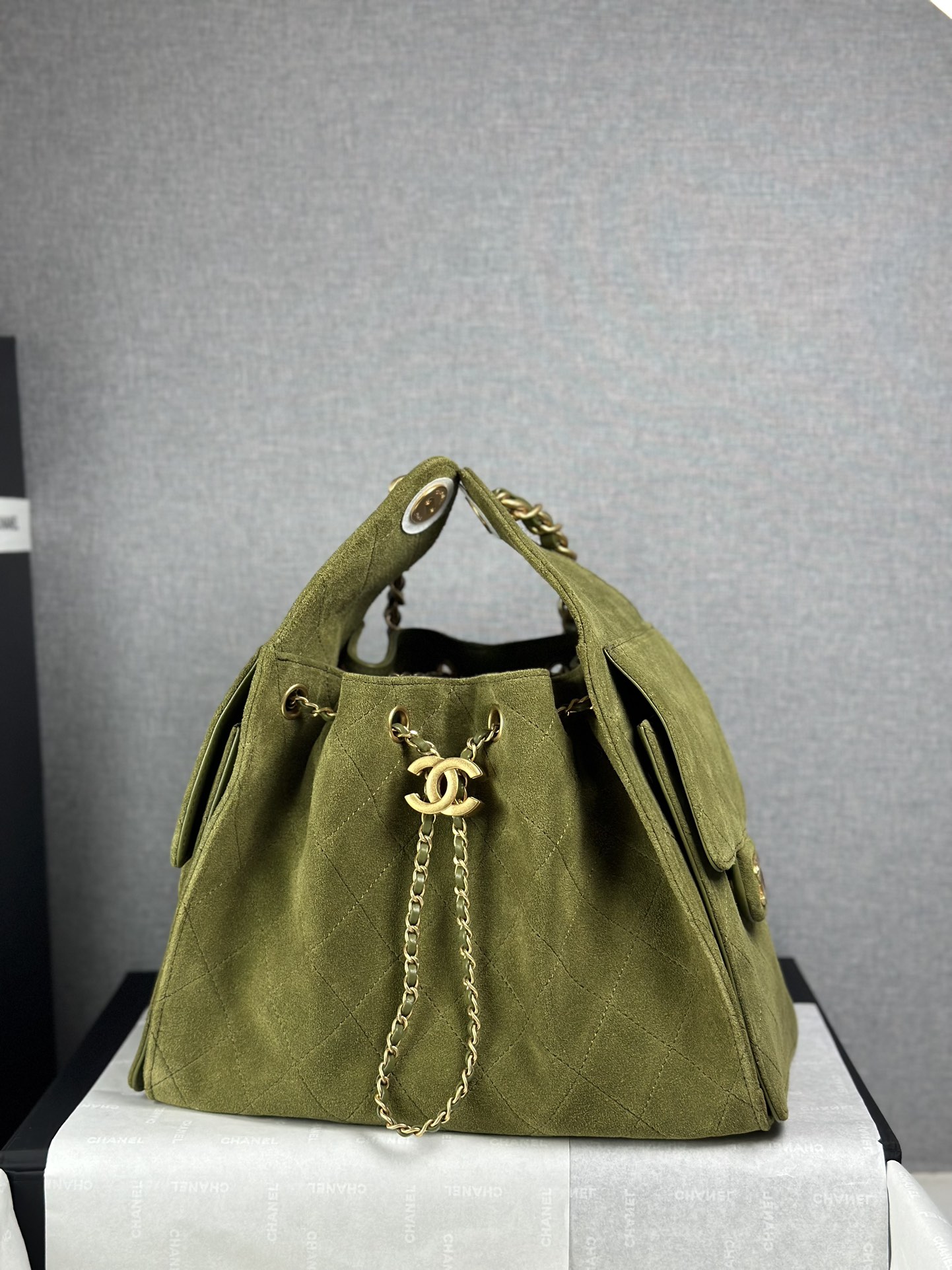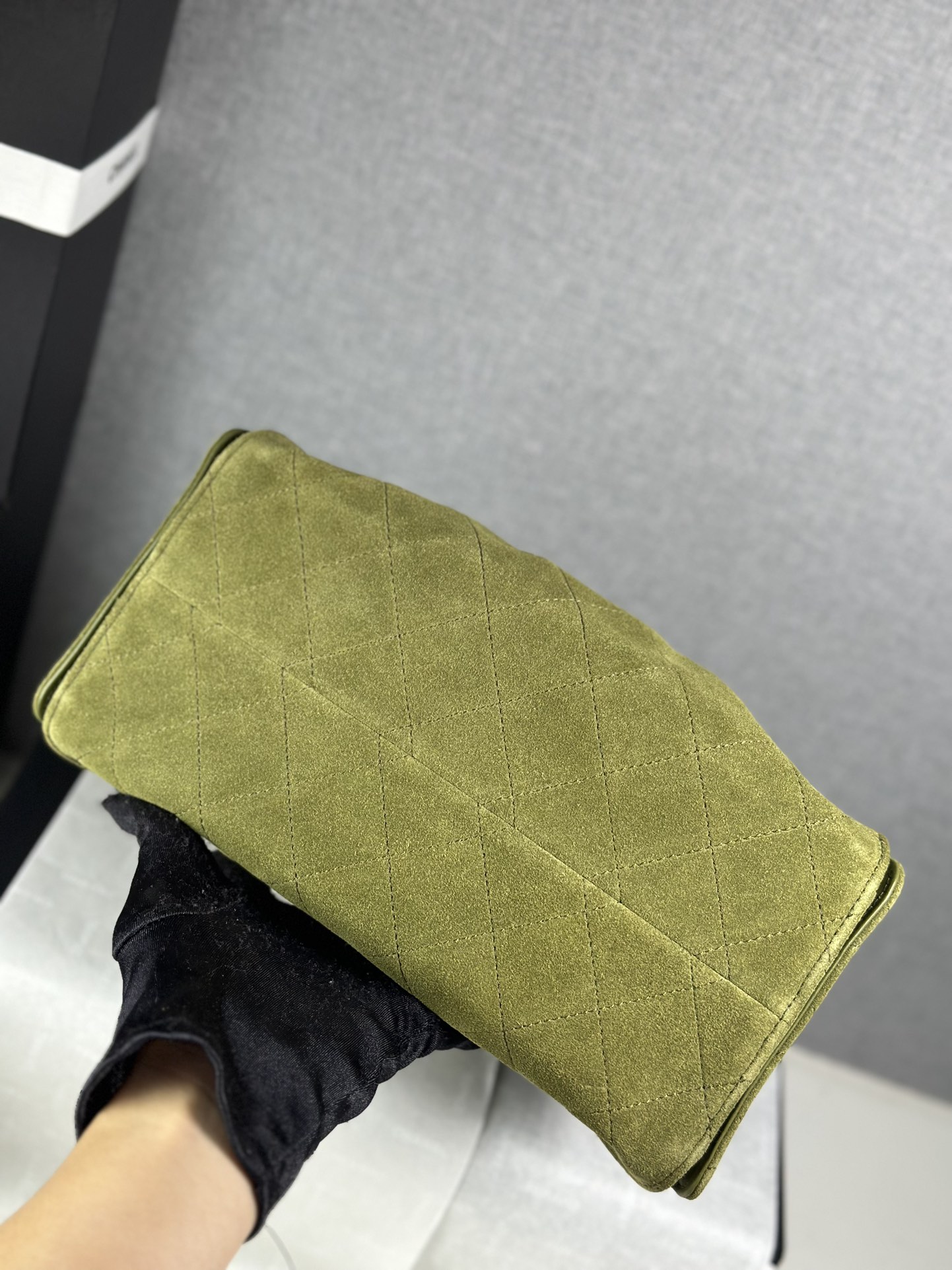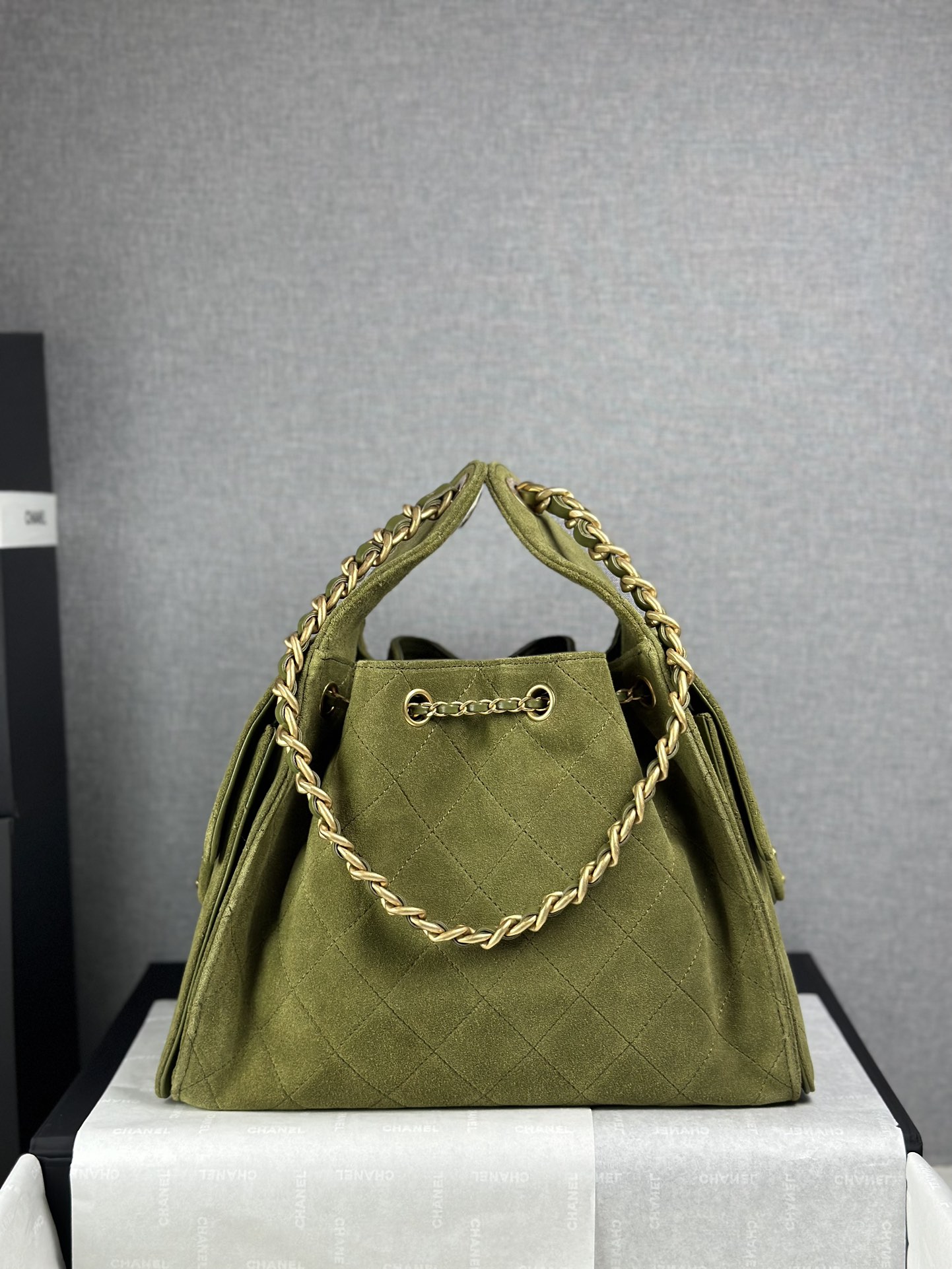 Chanel 25K Hobo Small Green Suede Drawstring Bucket Bag