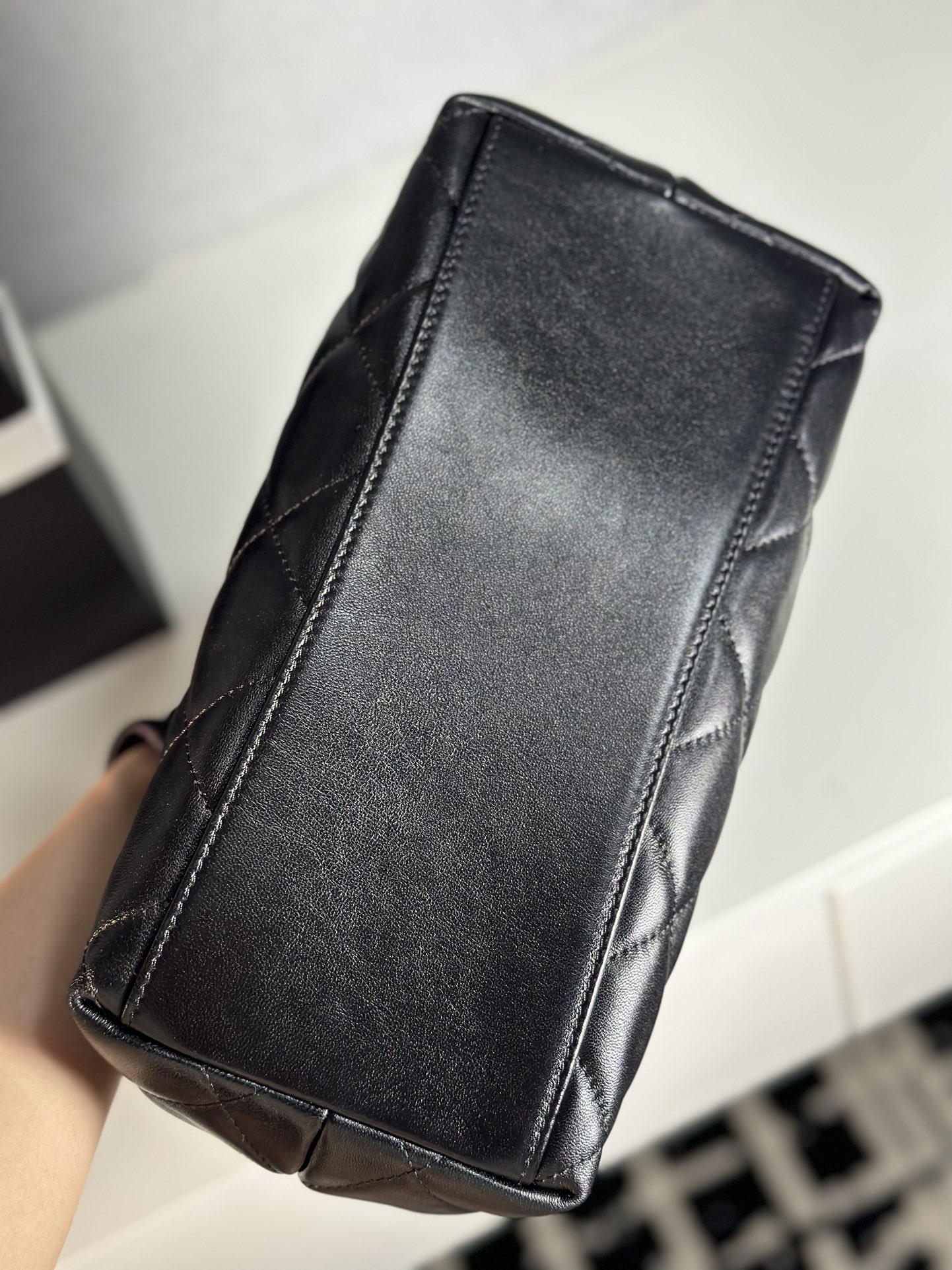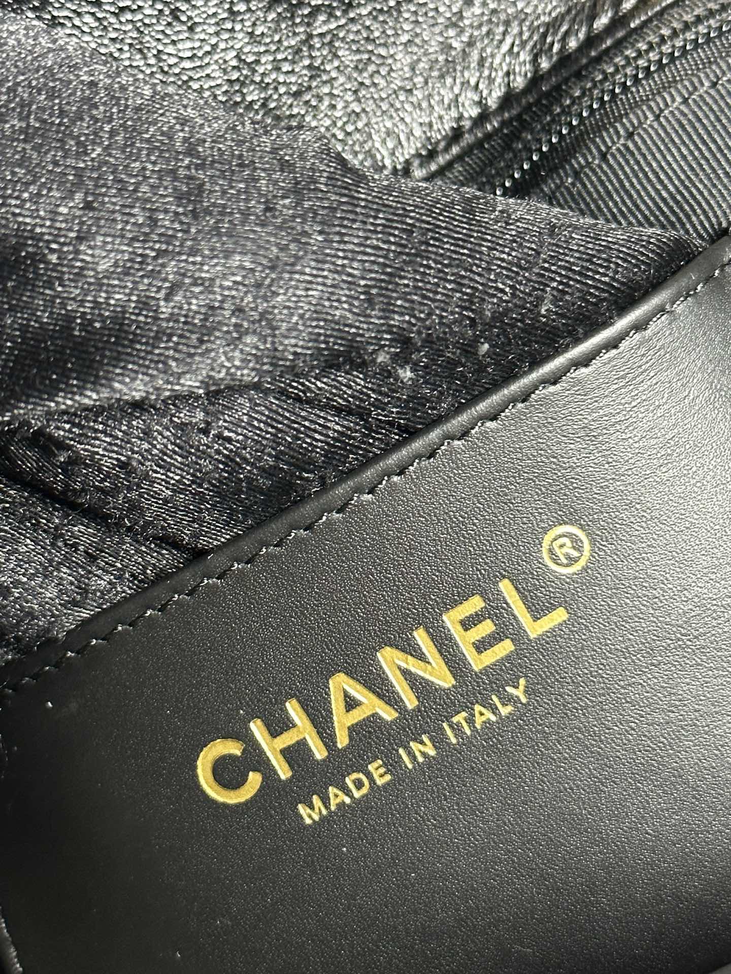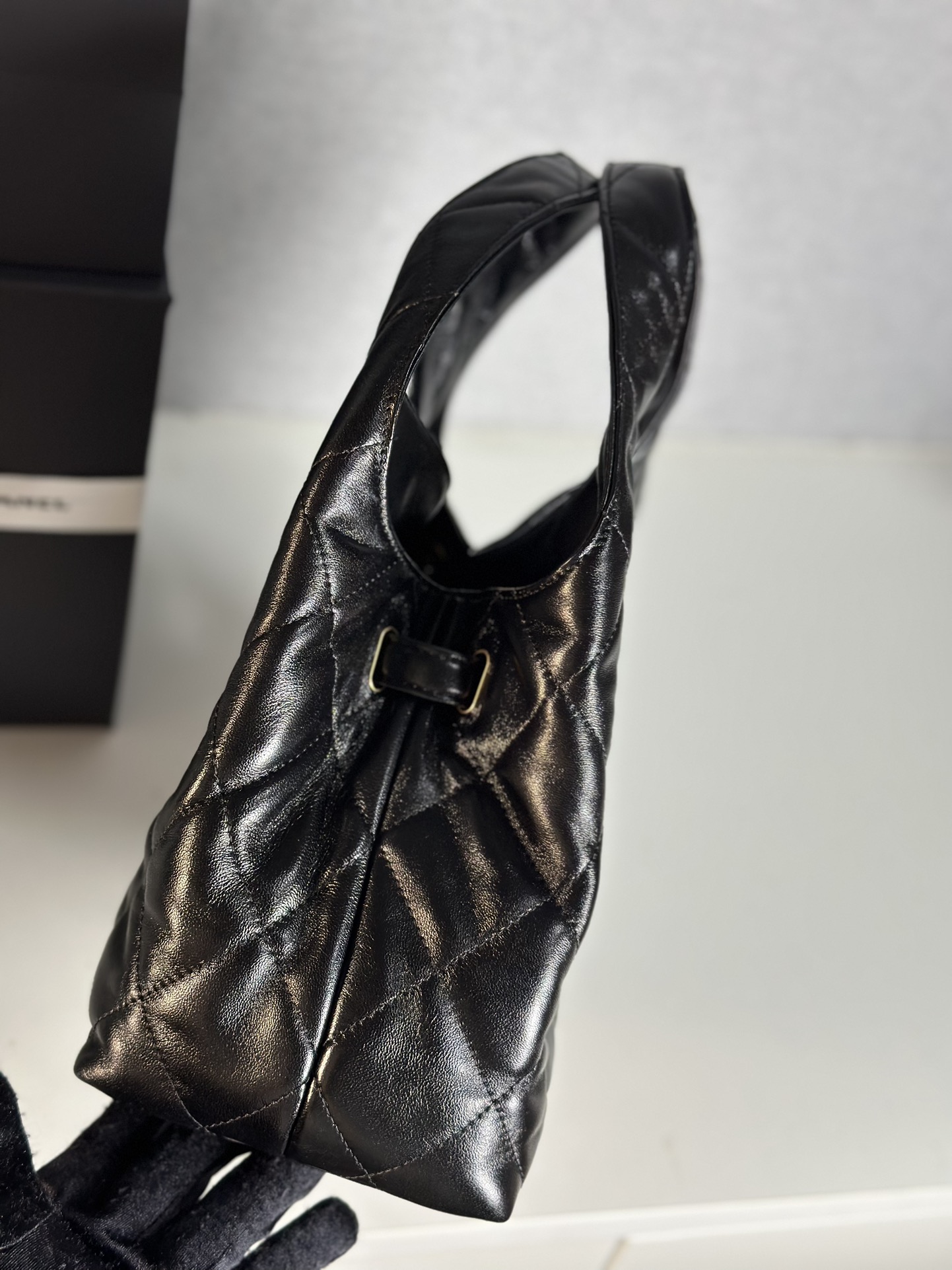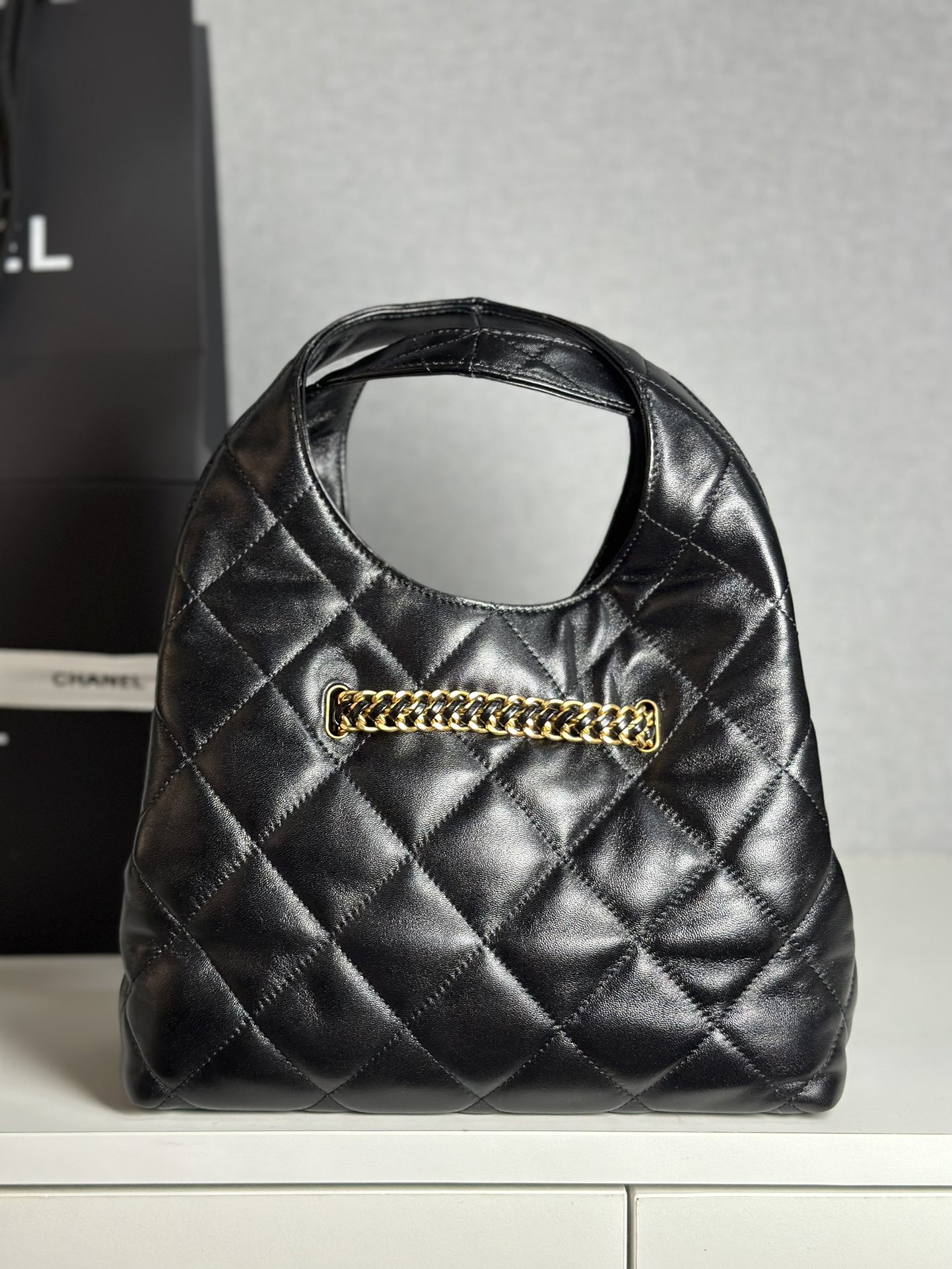 Chanel 25P Black Leather Hobo Bag with Chain Detail, 25 x 20 x 13 cm
