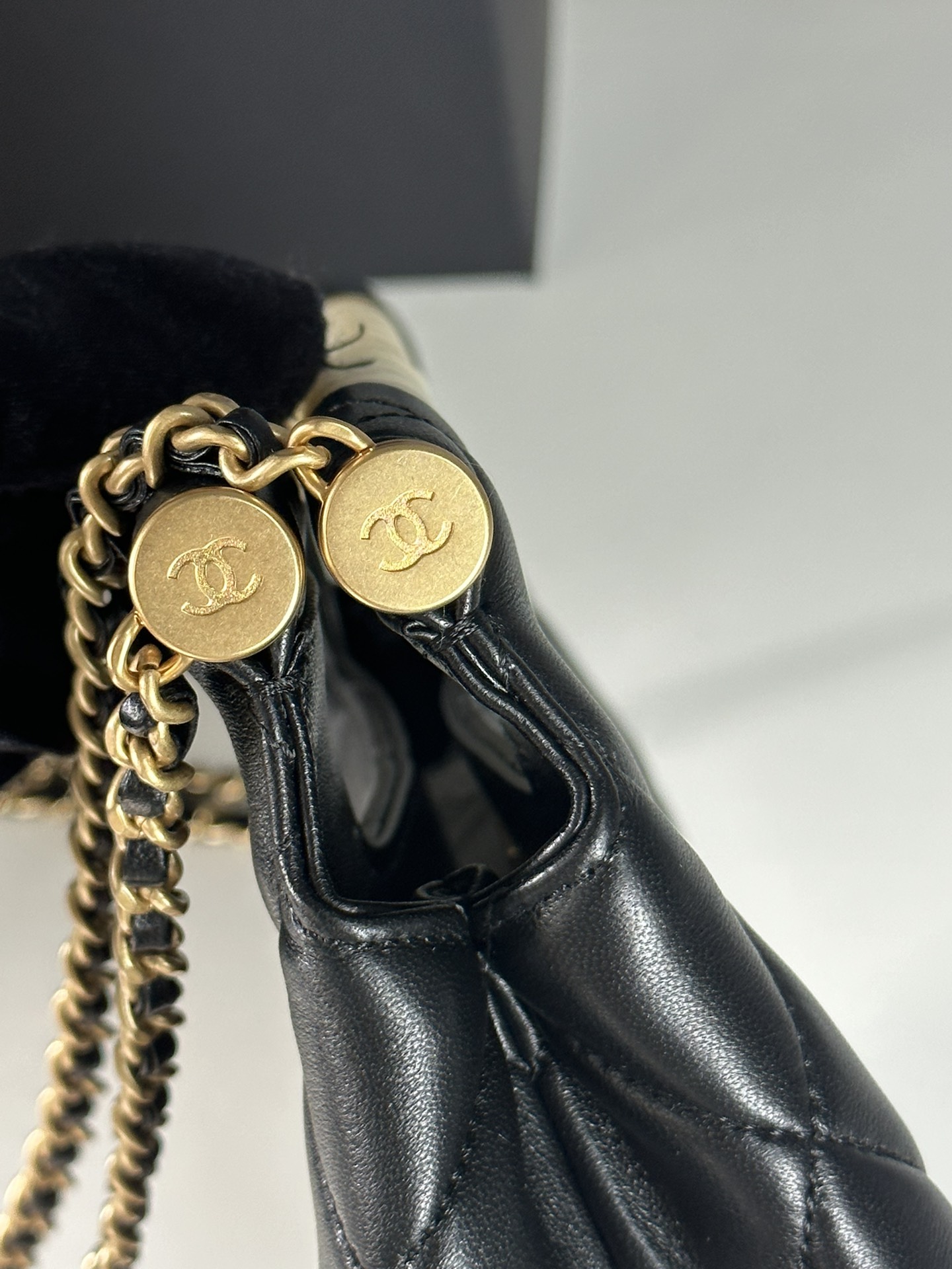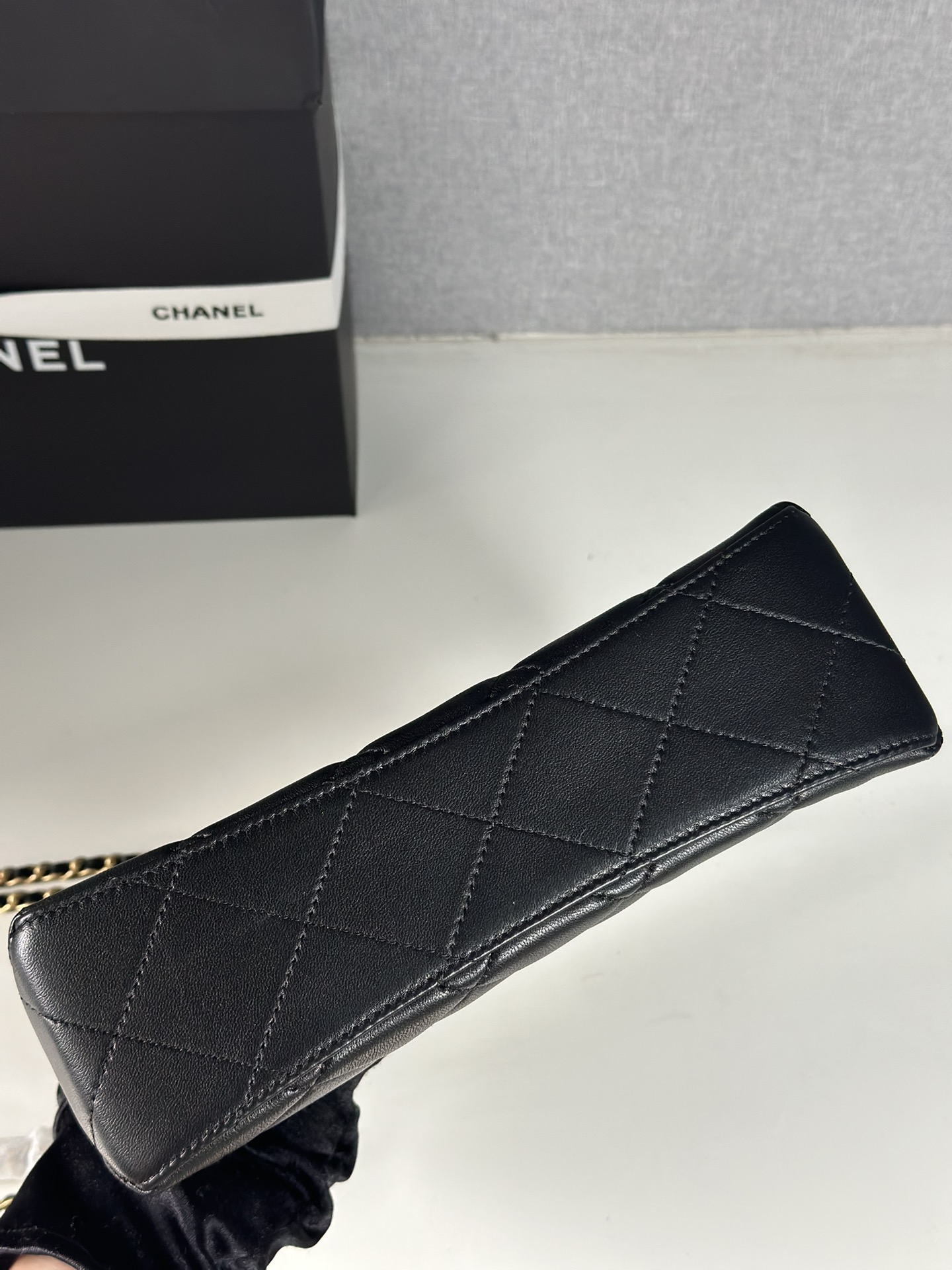 This Chanel 25p Spring/Summer pearl handle flap bag is a chic and sophisticated accessory that combines classic design with modern elegance. The bag's unique features and luxurious materials make it a standout piece for any fashion-conscious individual.