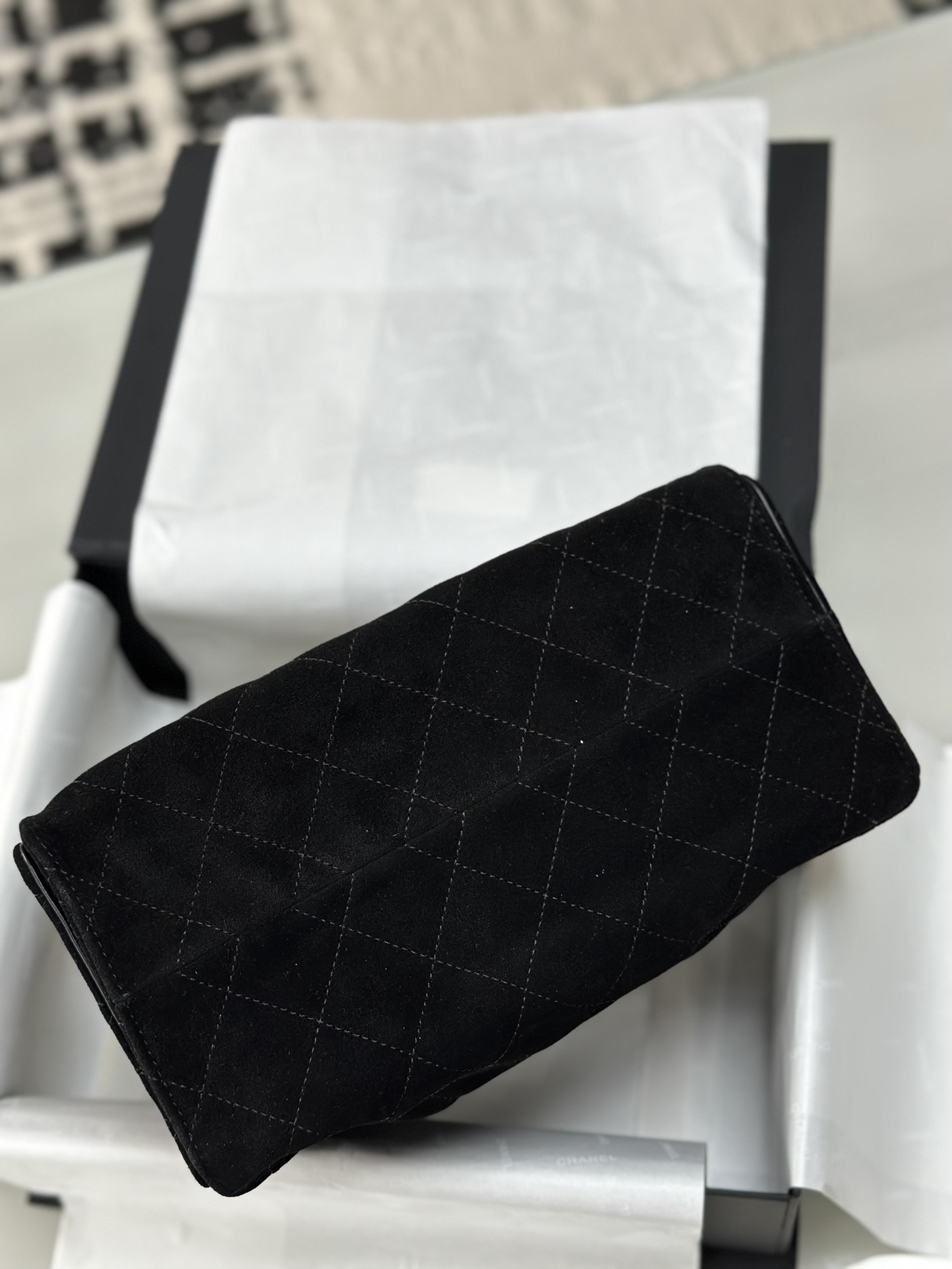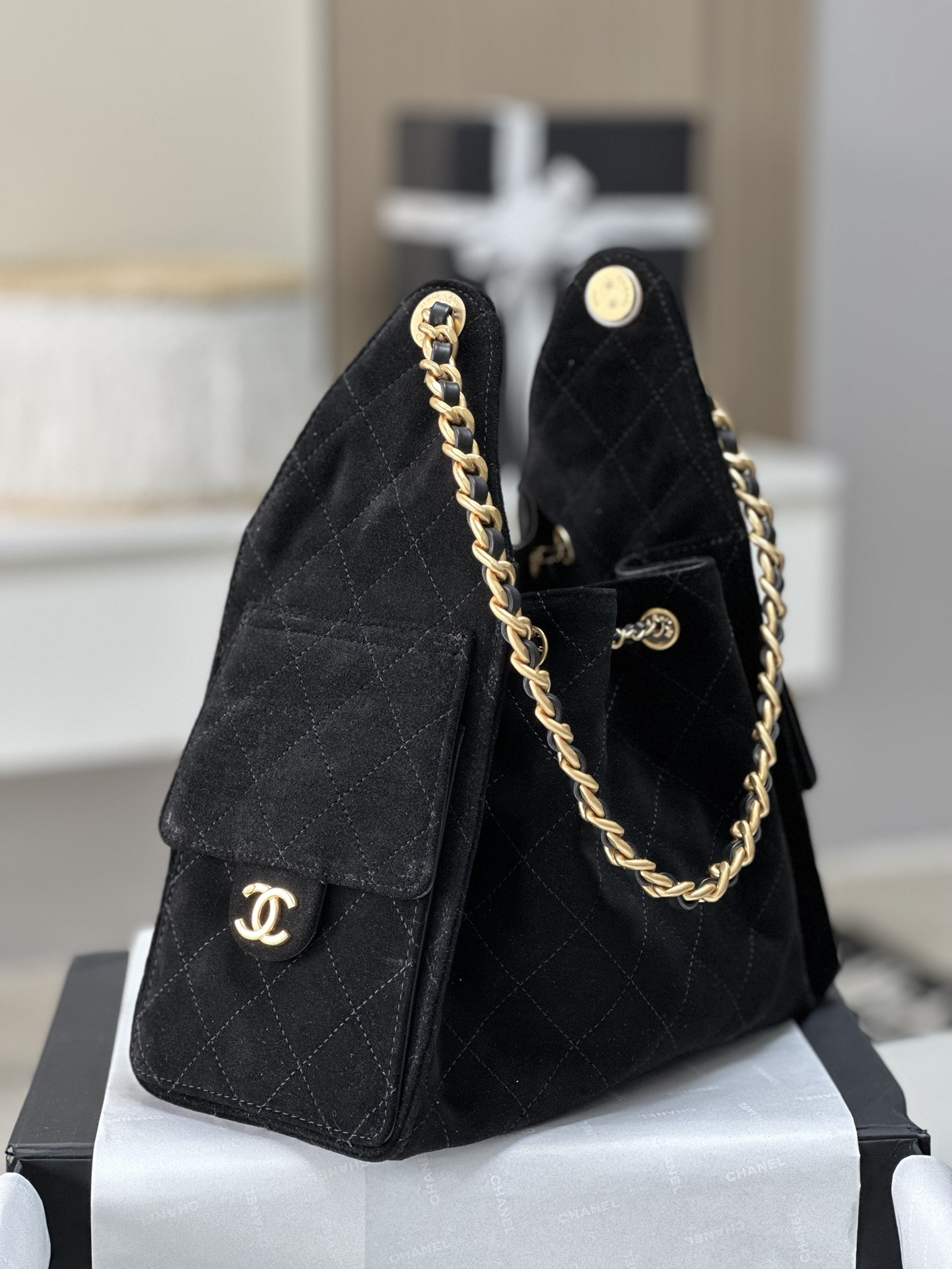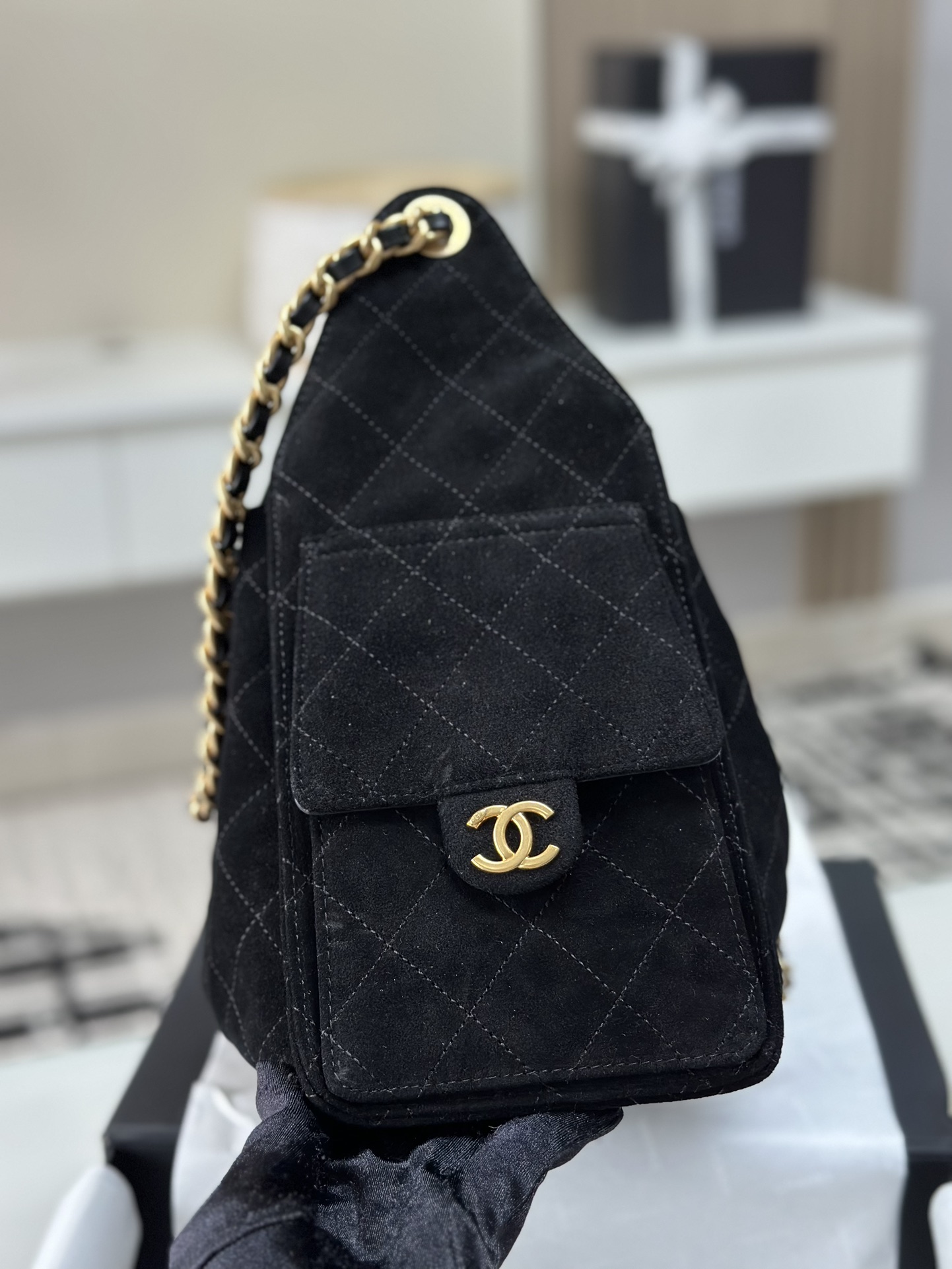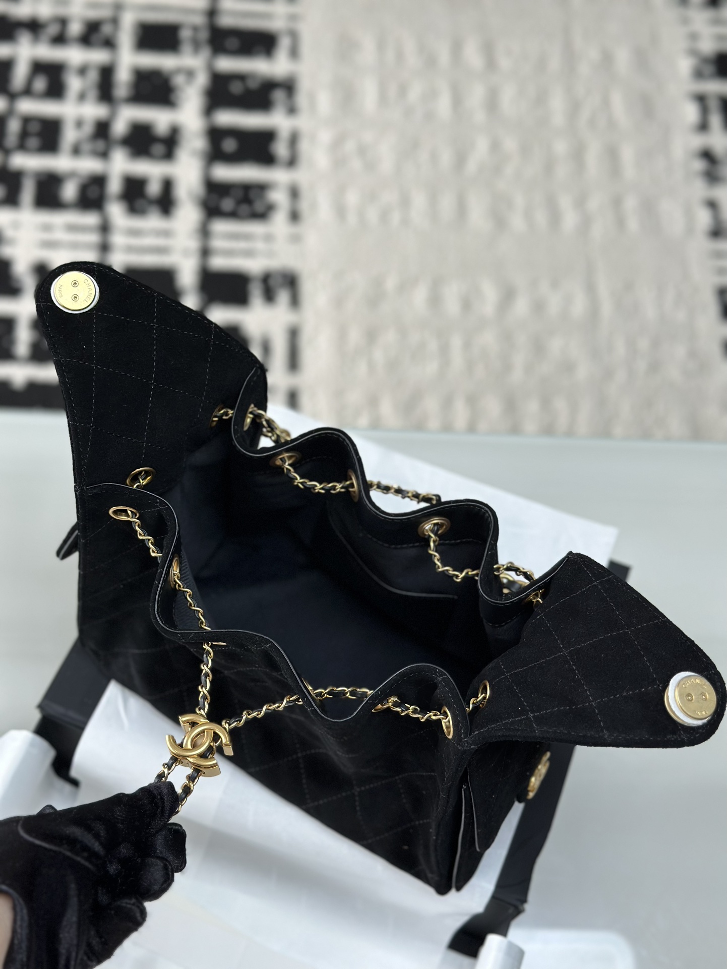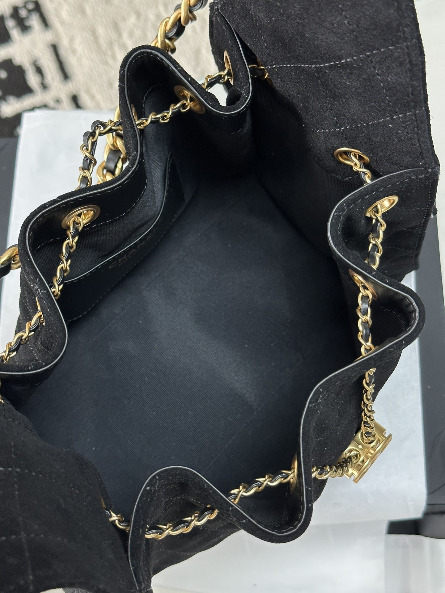 Chanel 25S Drawstring Bucket Hobo Bag Small Suede Black