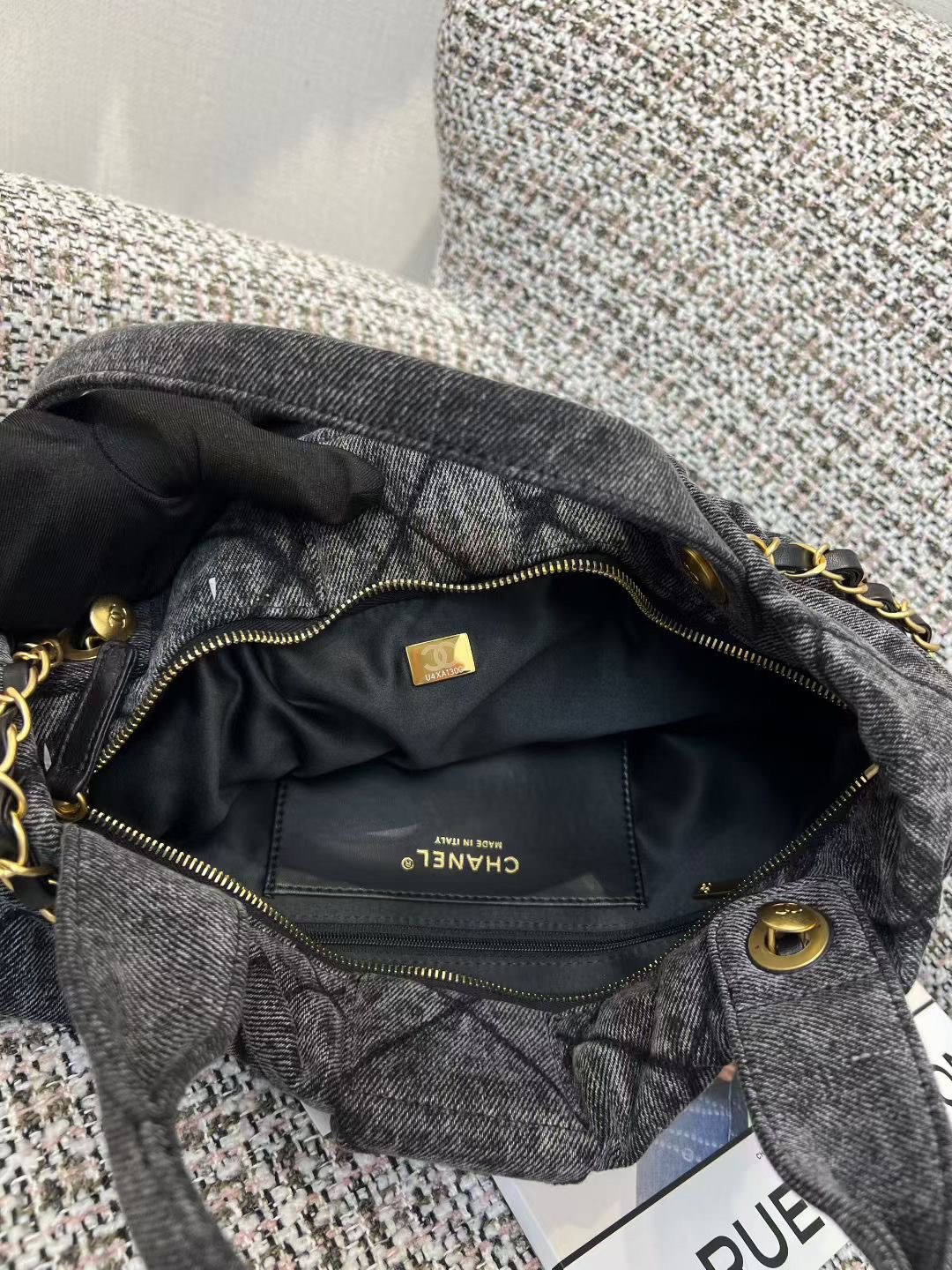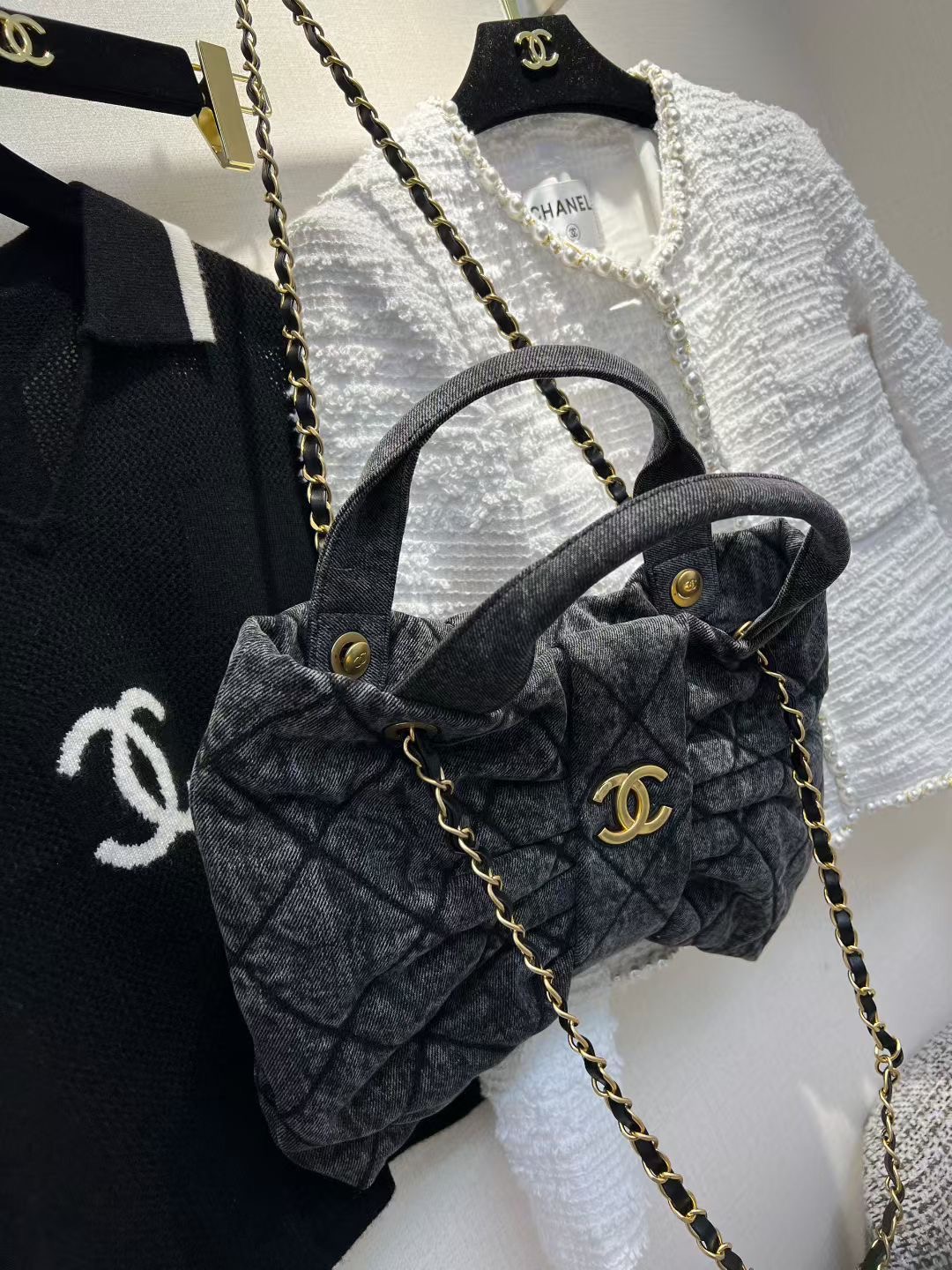 Chanel Bow Denim Quilted Chain Shoulder Bag Small, 18/26/5cm