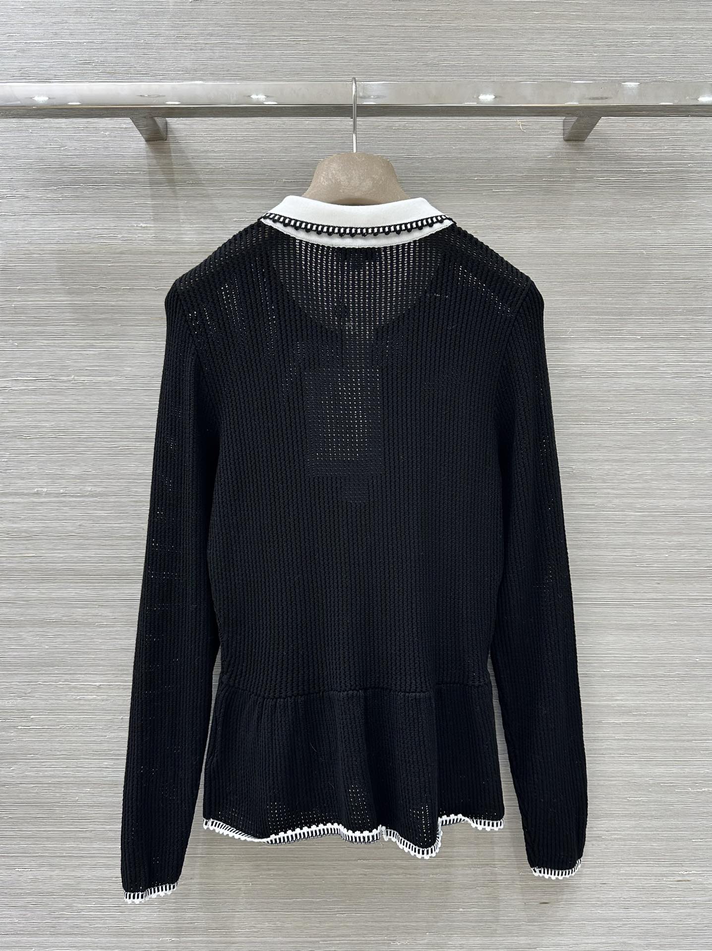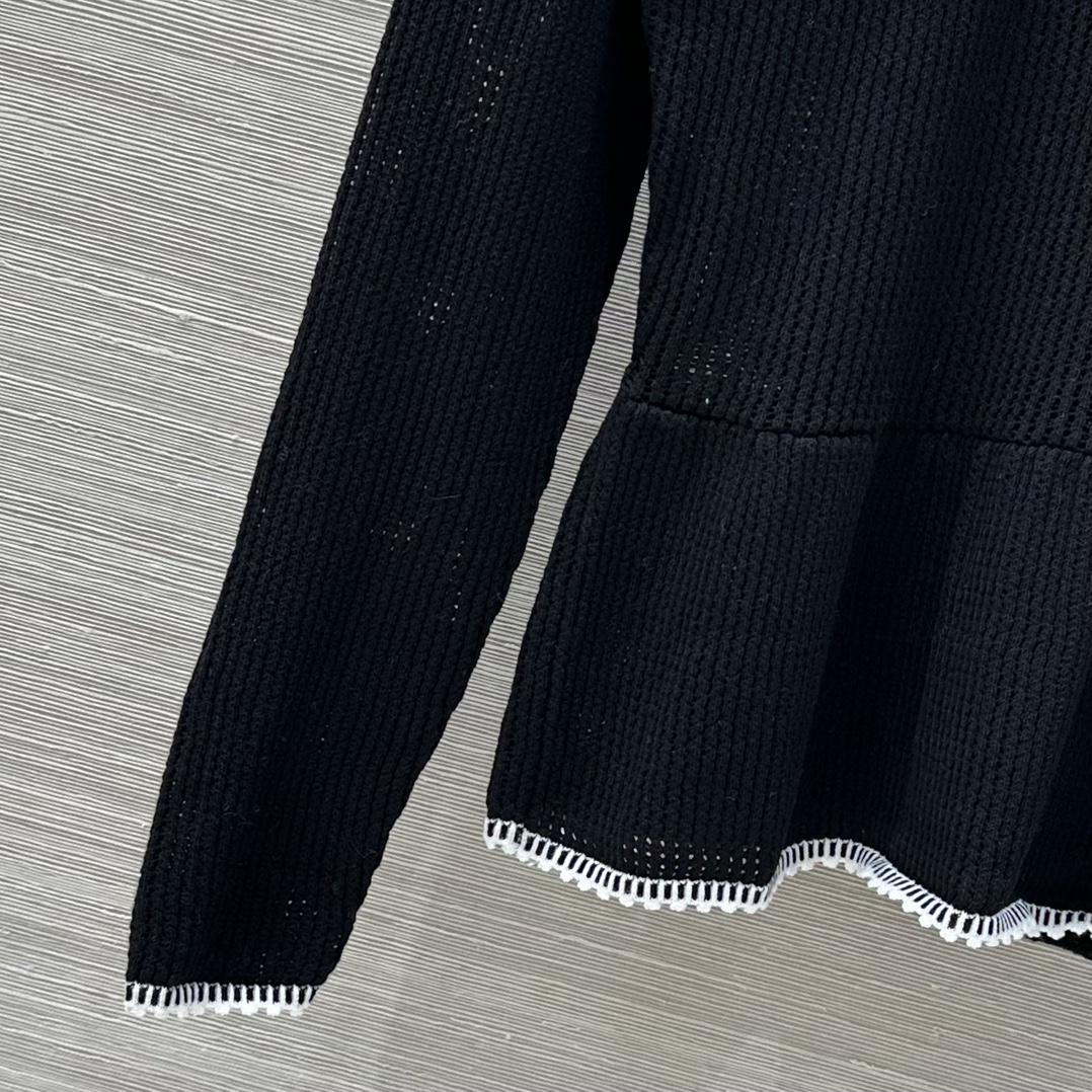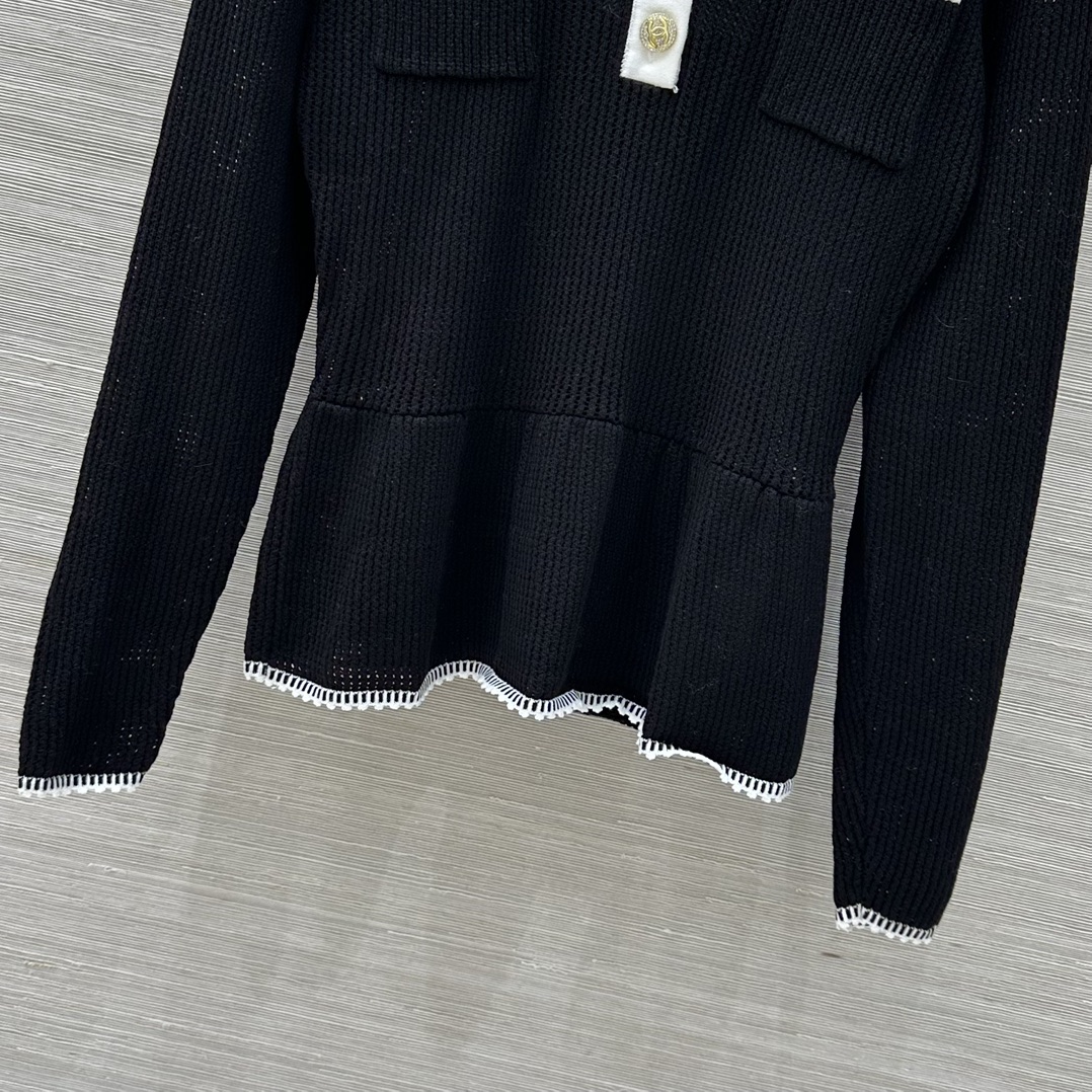 CHANEL Contrasting Trim Knit Top, Long Sleeve Wool Blend Sweater