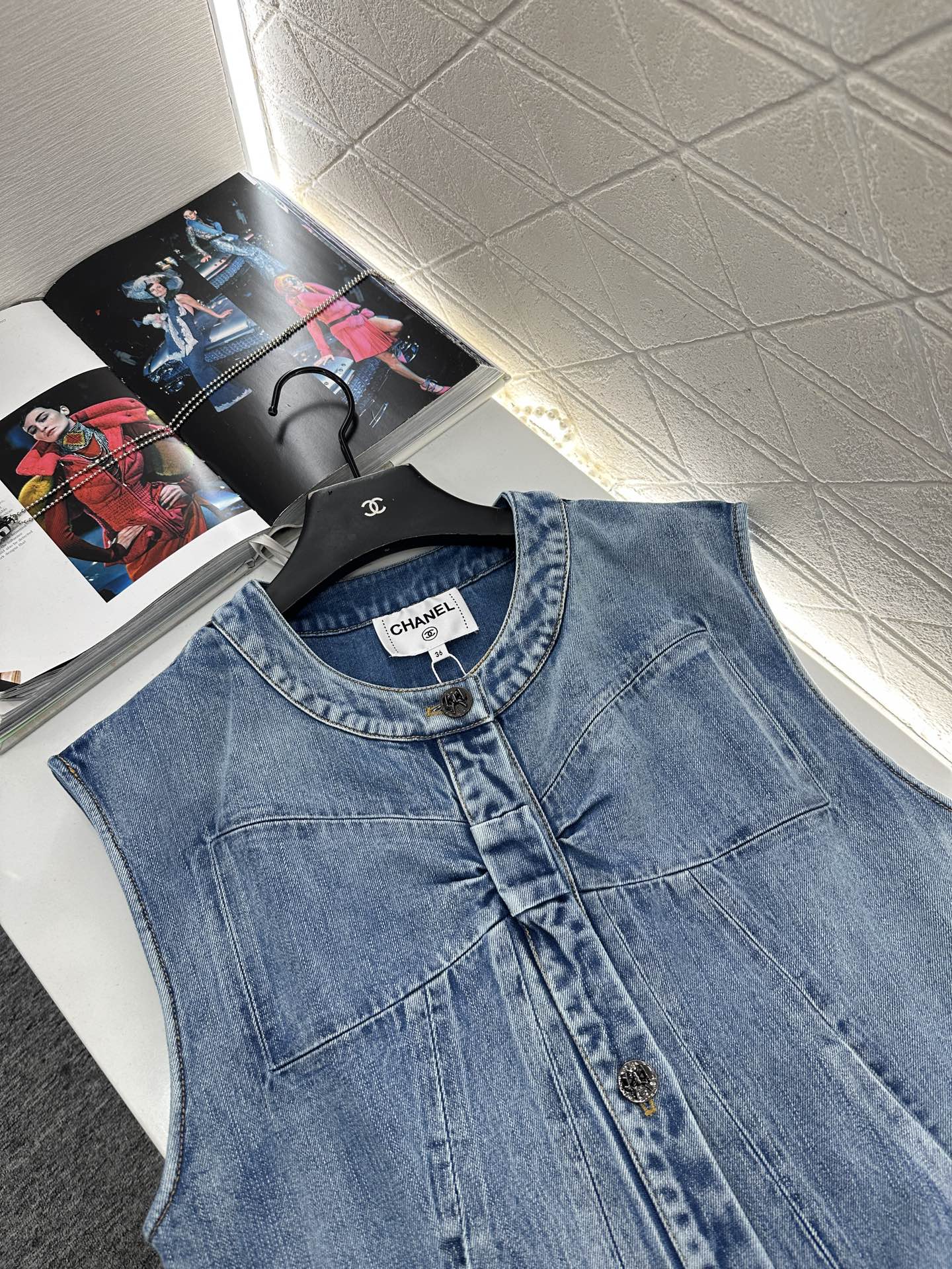 Chanel Denim Vest 2025 New Arrival: Chic Button-Down Vest with Bow Detail