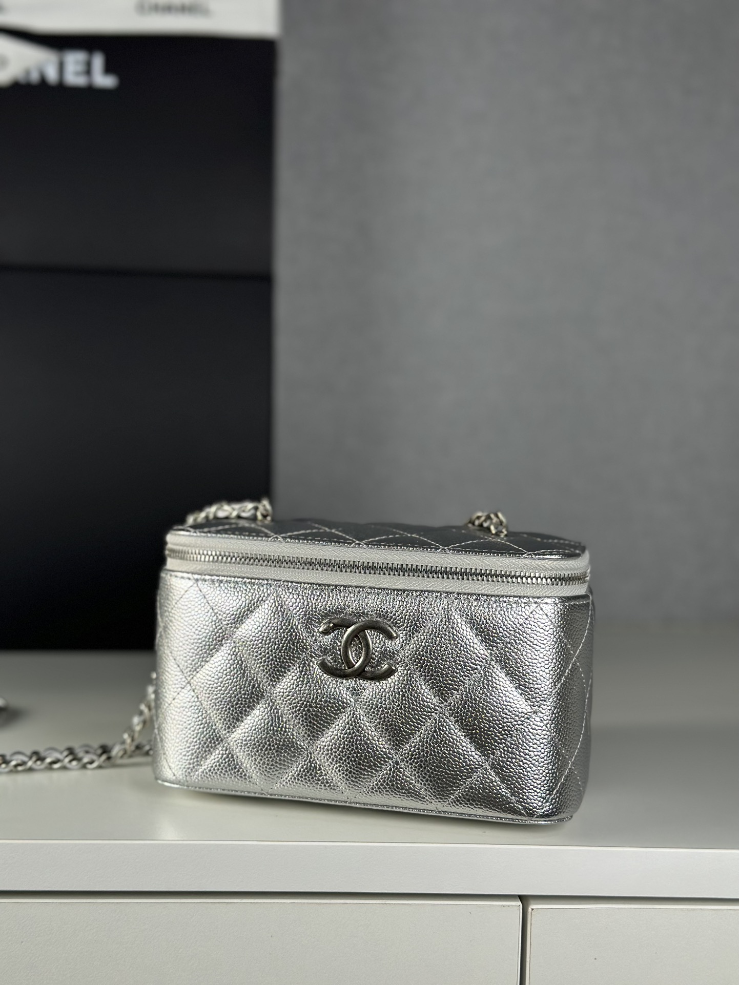Chanel Double CC Adjustable Buckle Long Box Chain Bag, Silver