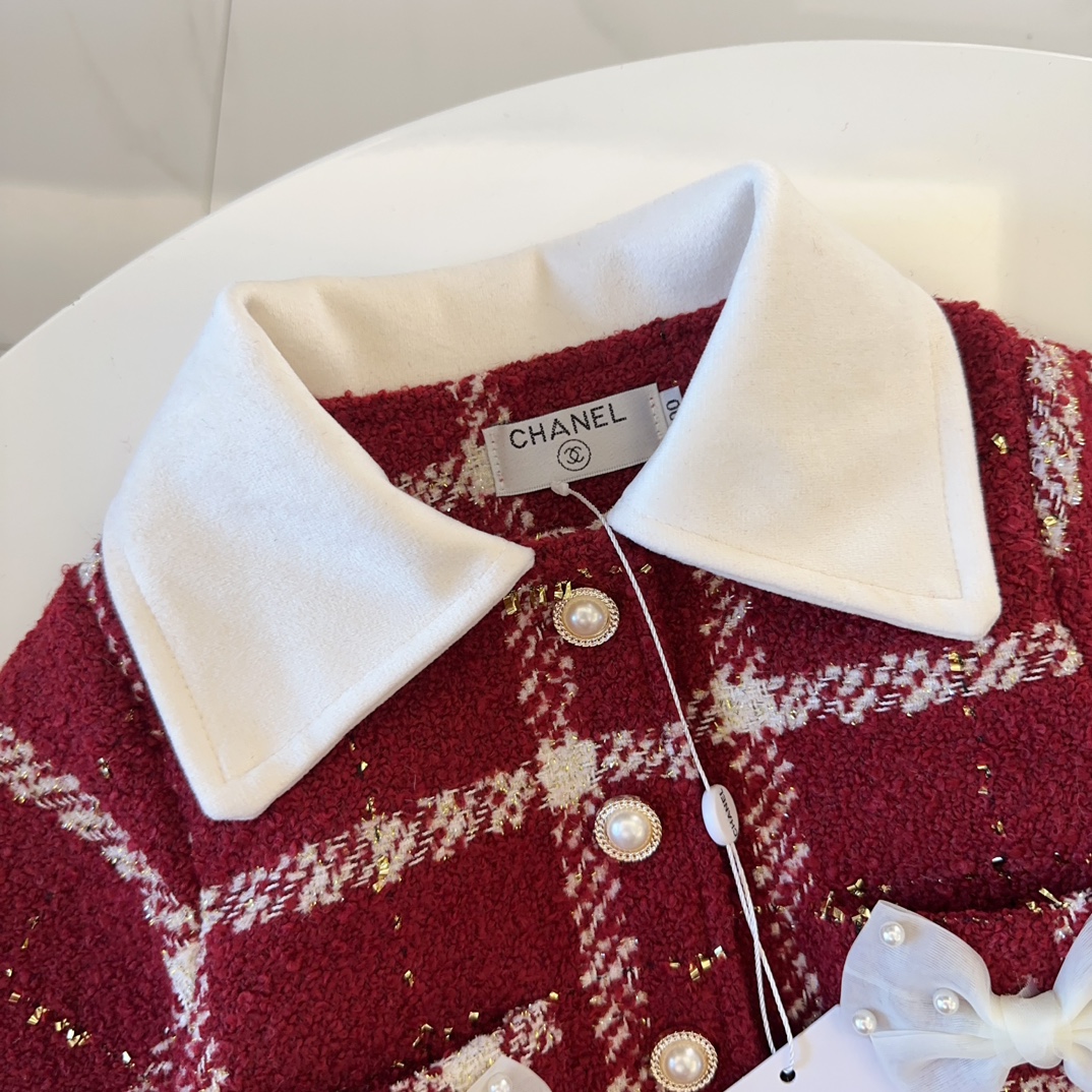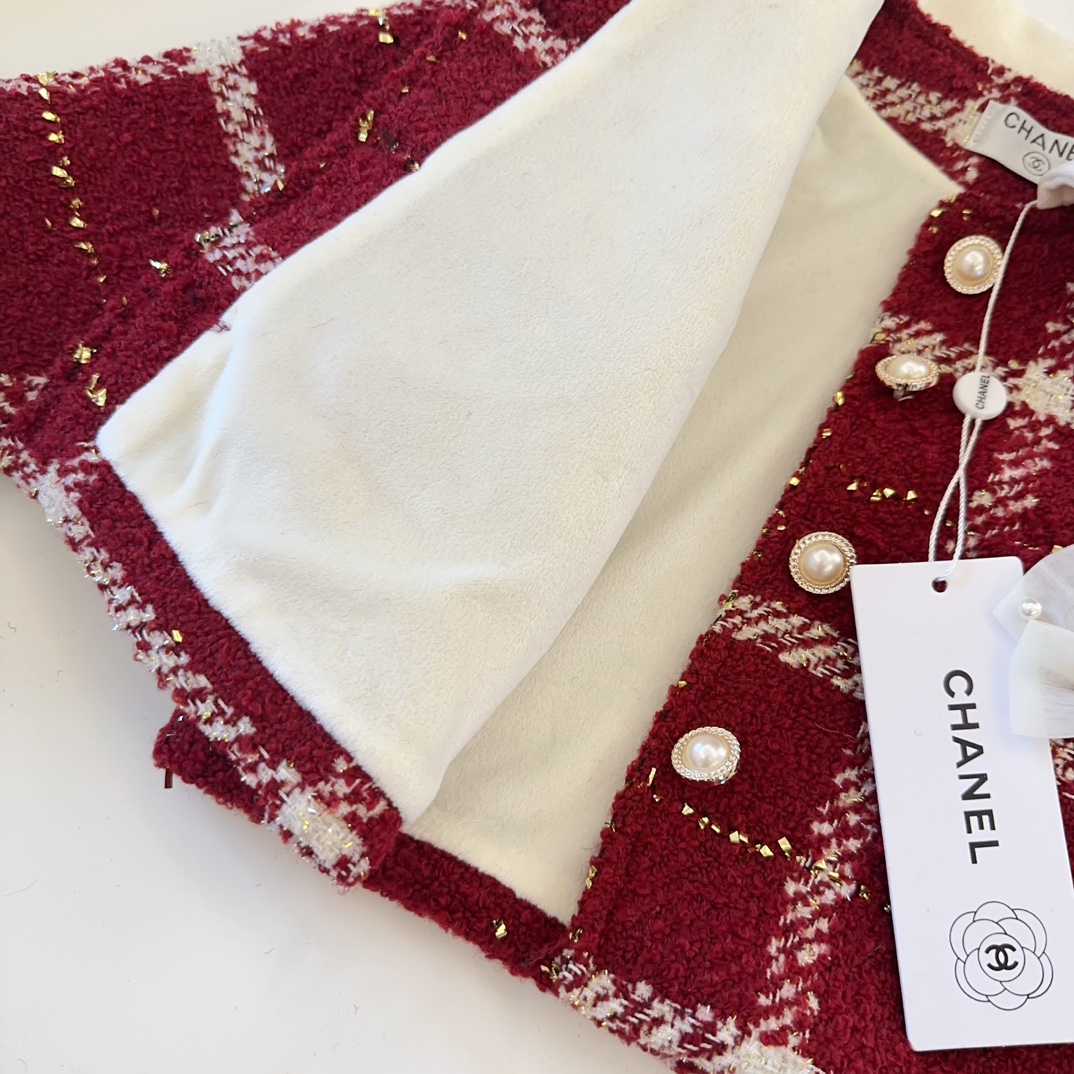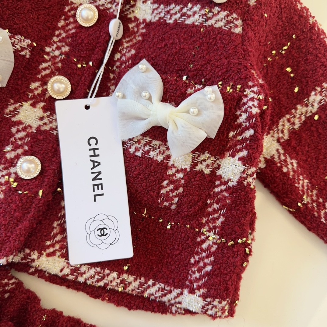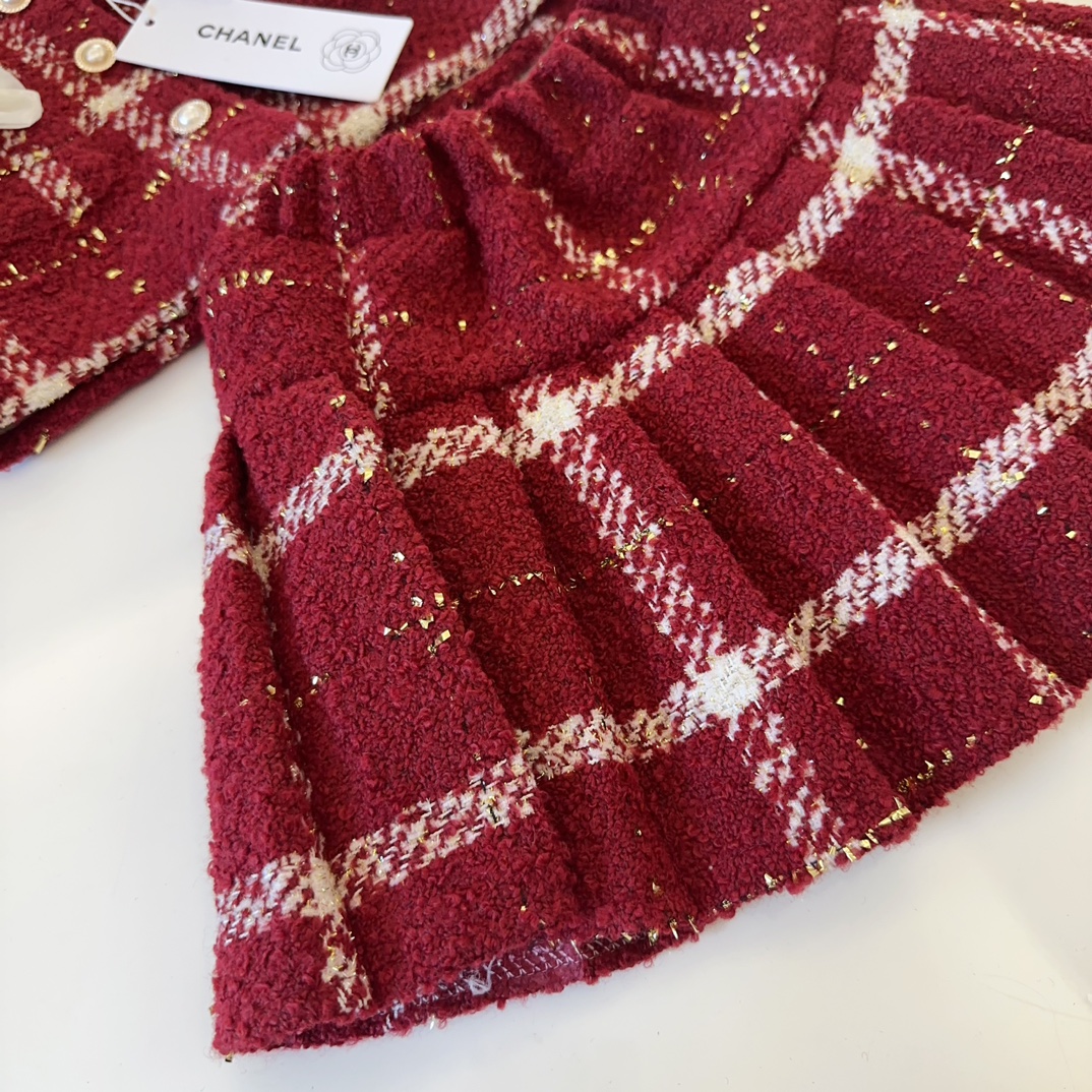 Chanel Girls' Red Plaid Tweed Skirt Set, Adorable Outfit for Special Occasions