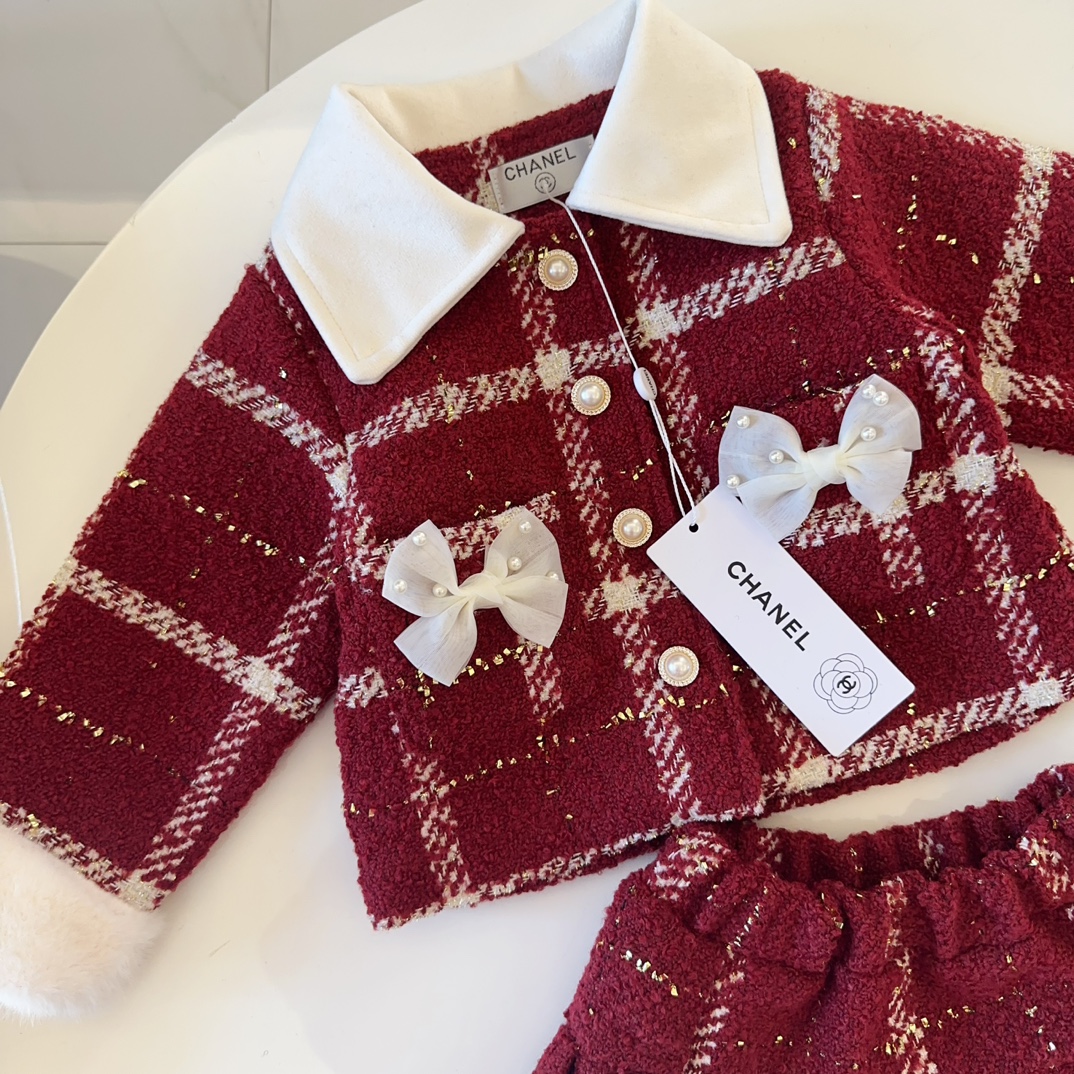 This Chanel-inspired tweed skirt set is the perfect addition to your little girl's wardrobe, offering a blend of classic design and modern flair. Ideal for special occasions and holiday gatherings, this outfit will make your little one shine.