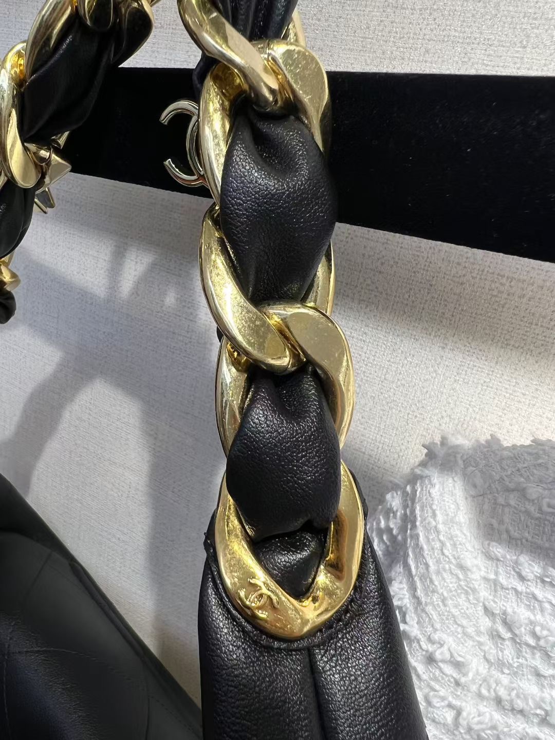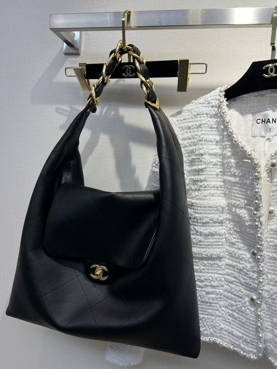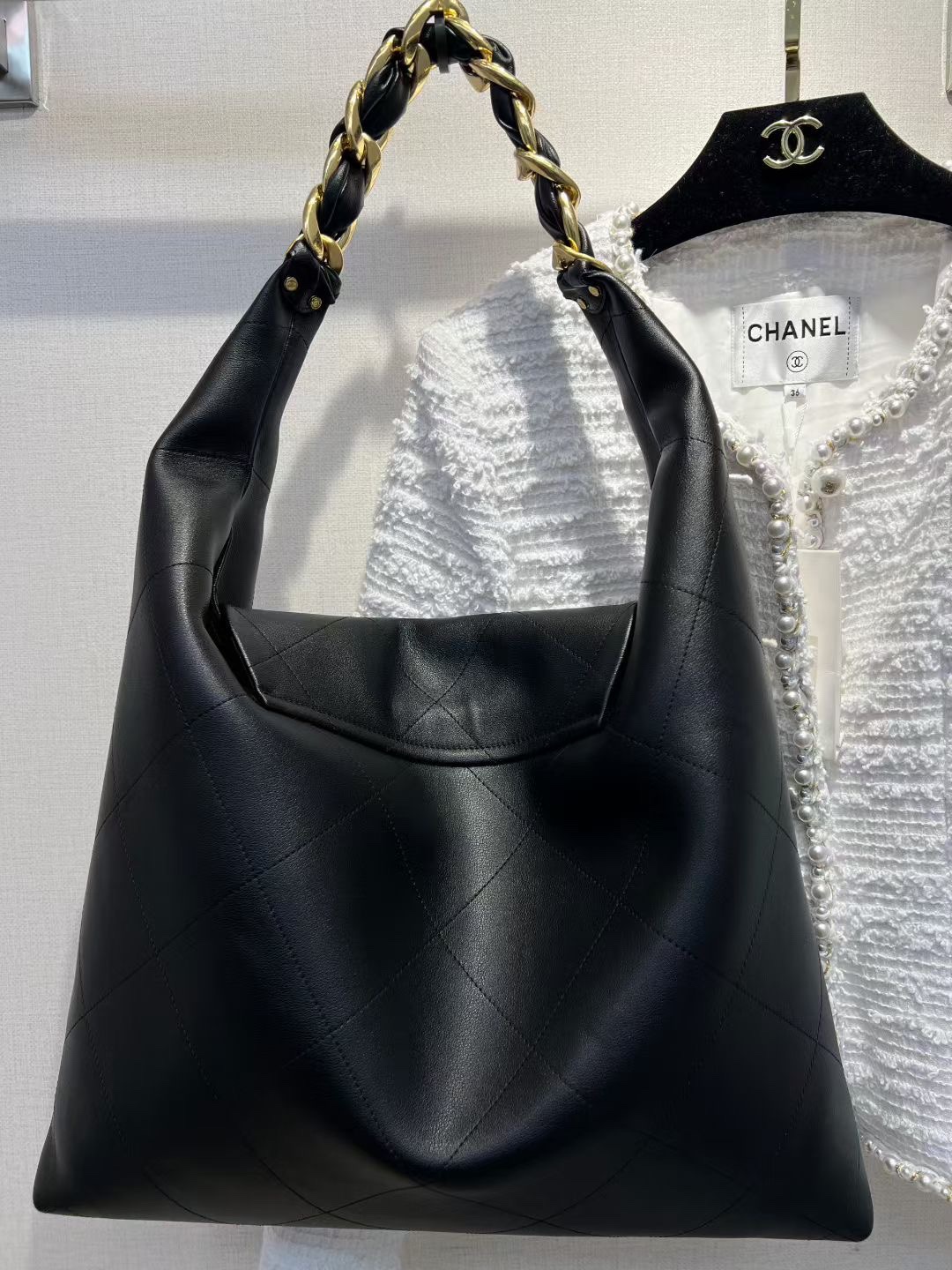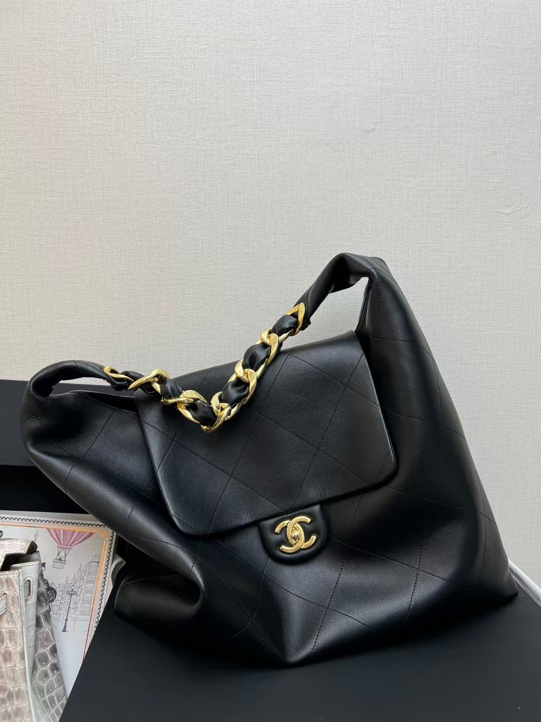 Chanel Maxi Hobo Bag, Black Leather with Gold Chain, 43x53x9cm