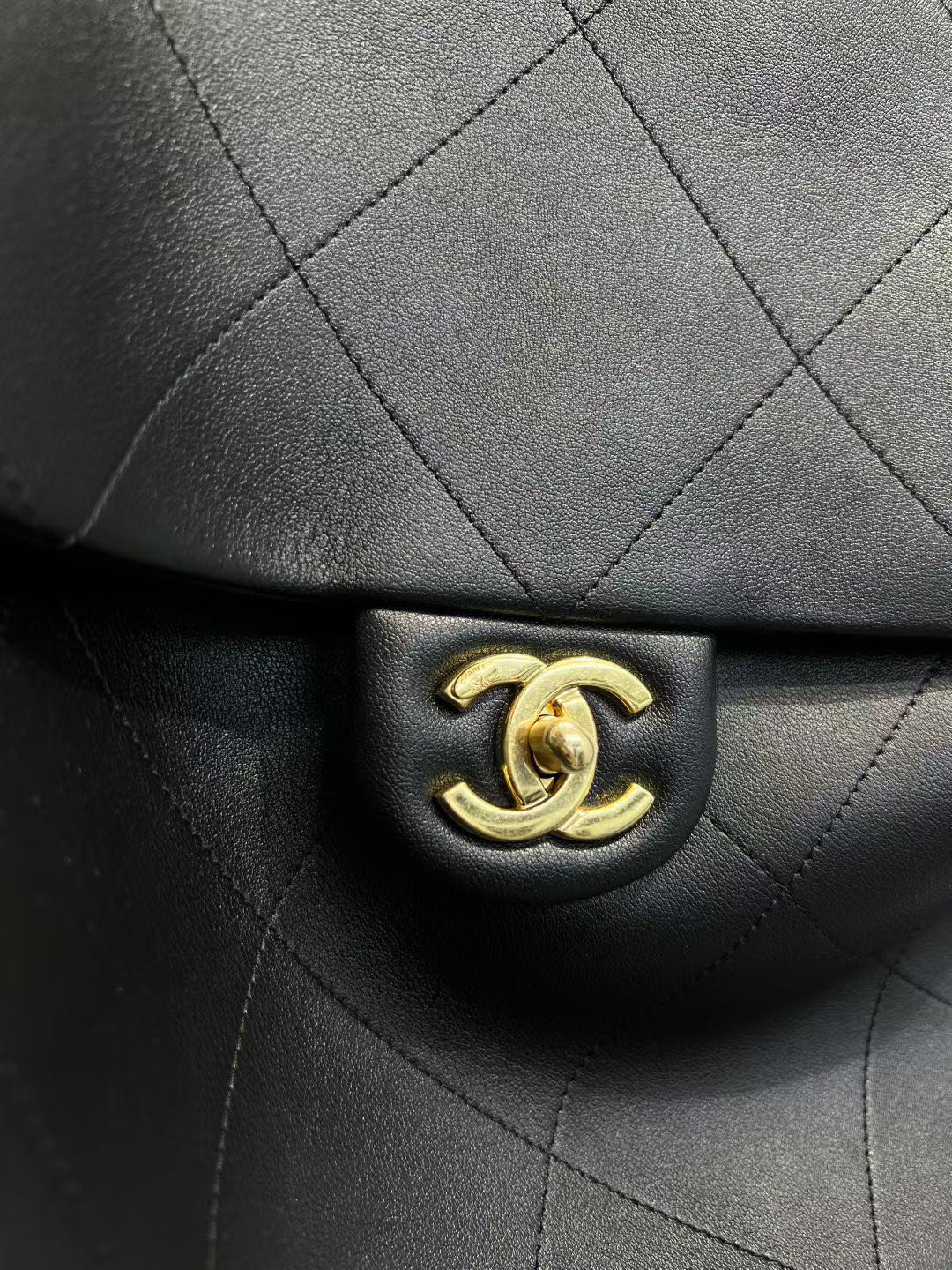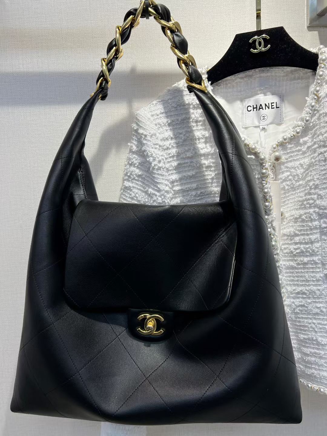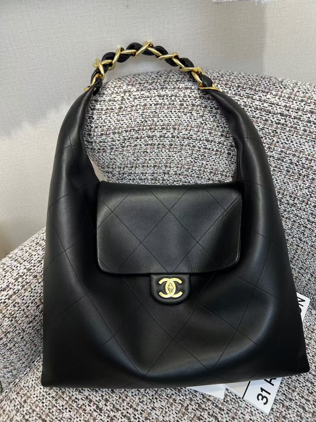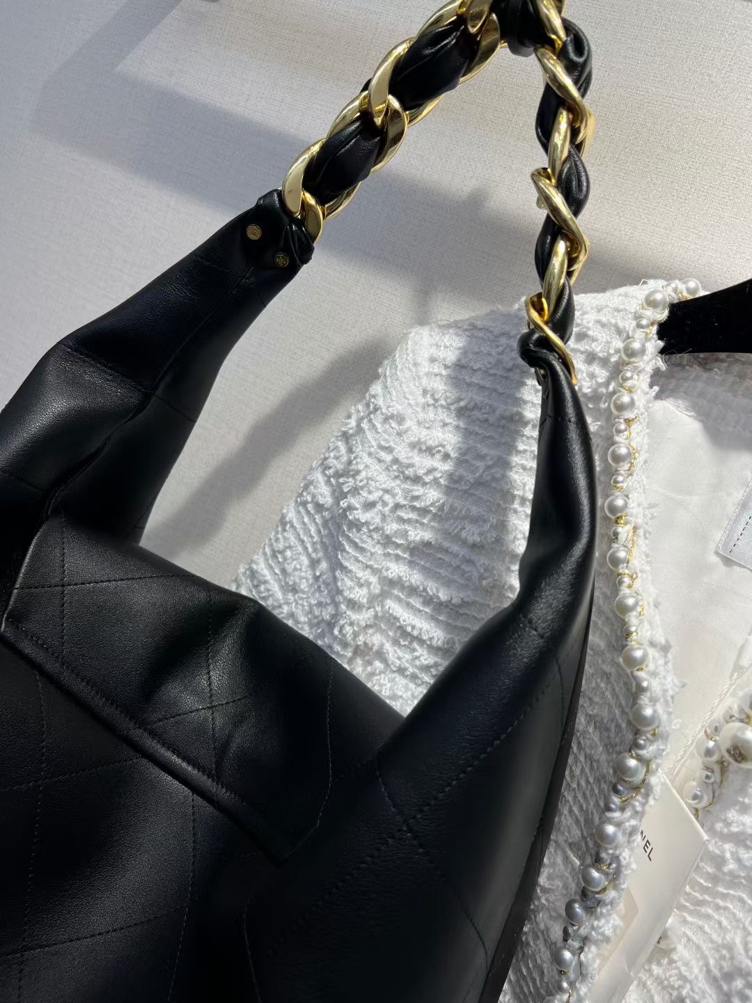 Chanel Maxi Hobo Bag, Black Leather with Gold Chain, 43x53x9cm