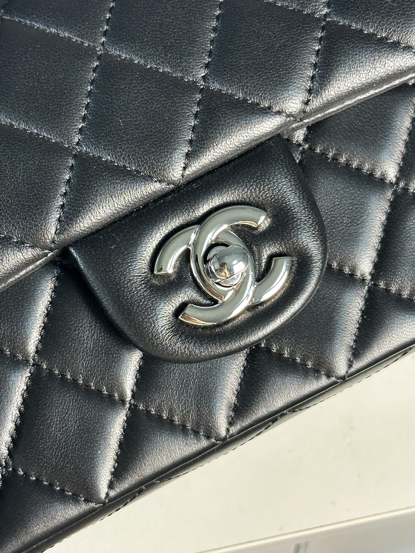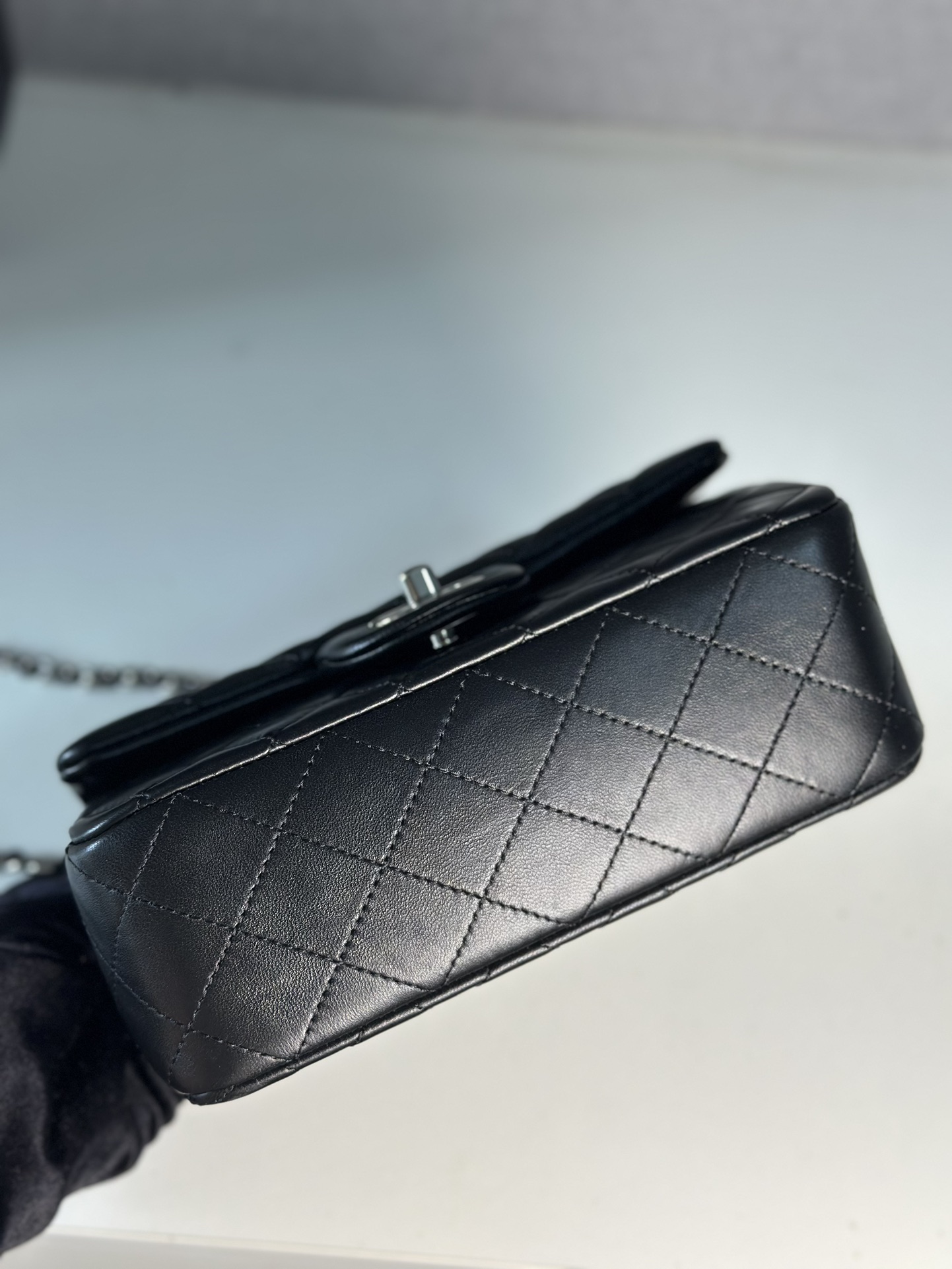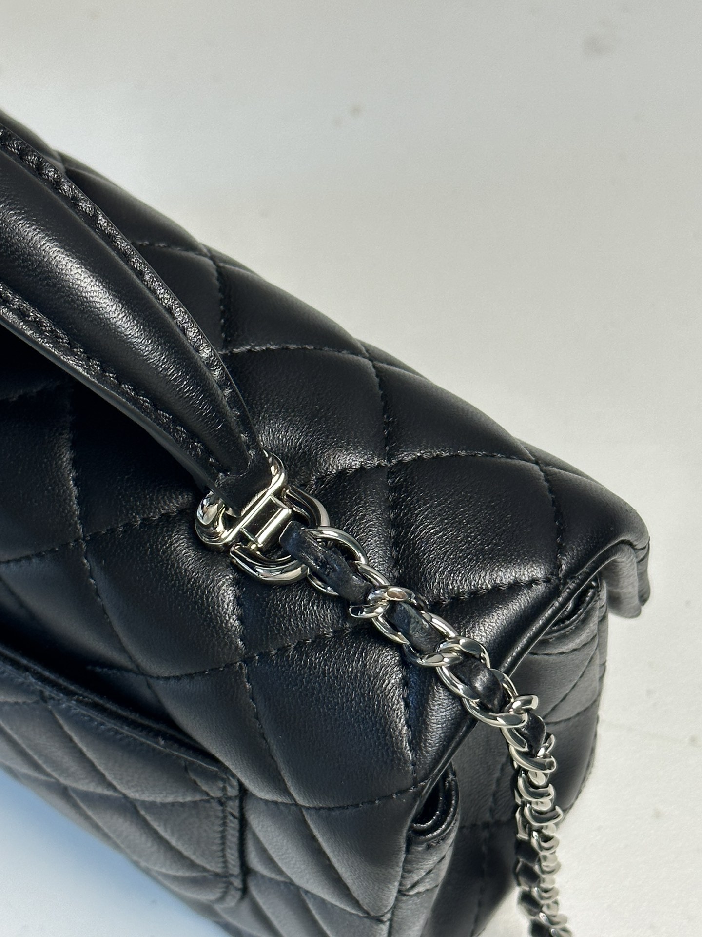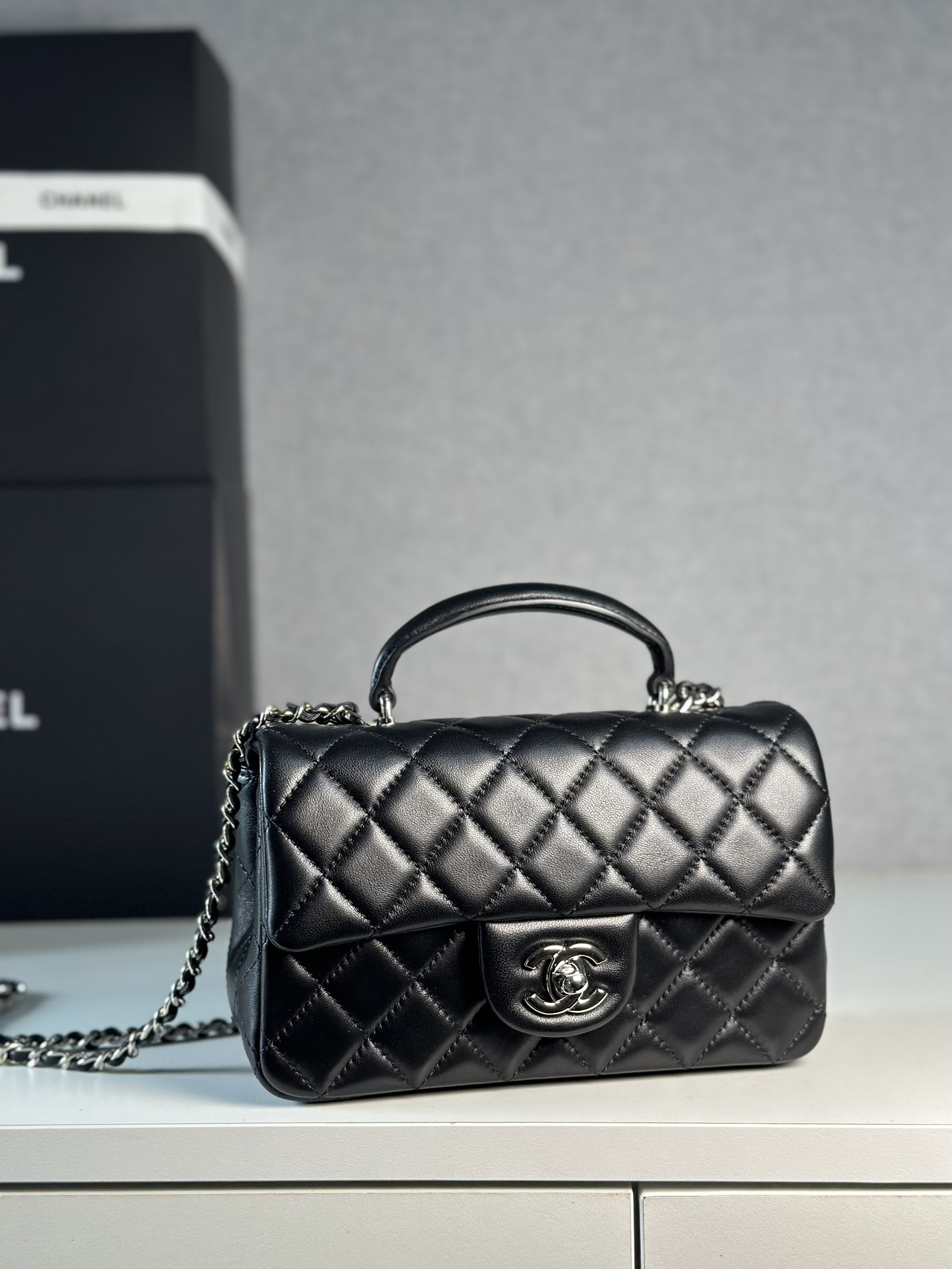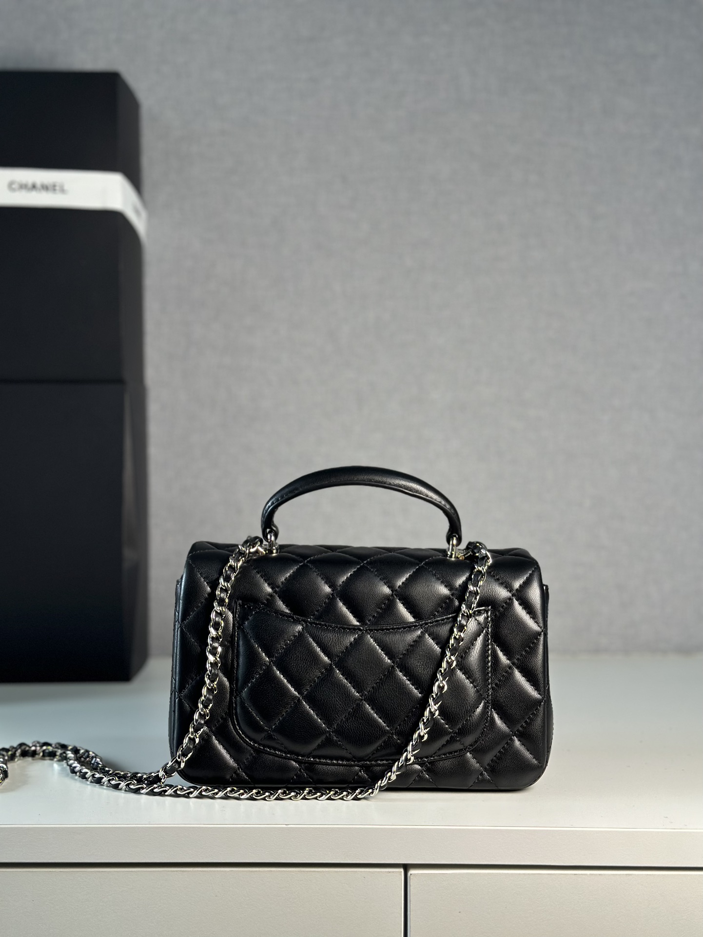 Chanel Mini CF Handle Bag, Black Leather with Silver Hardware, 20 x 6 x 13cm