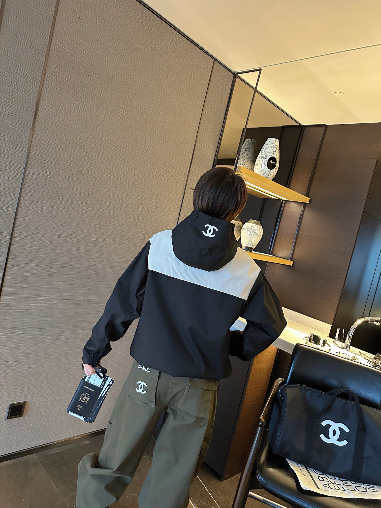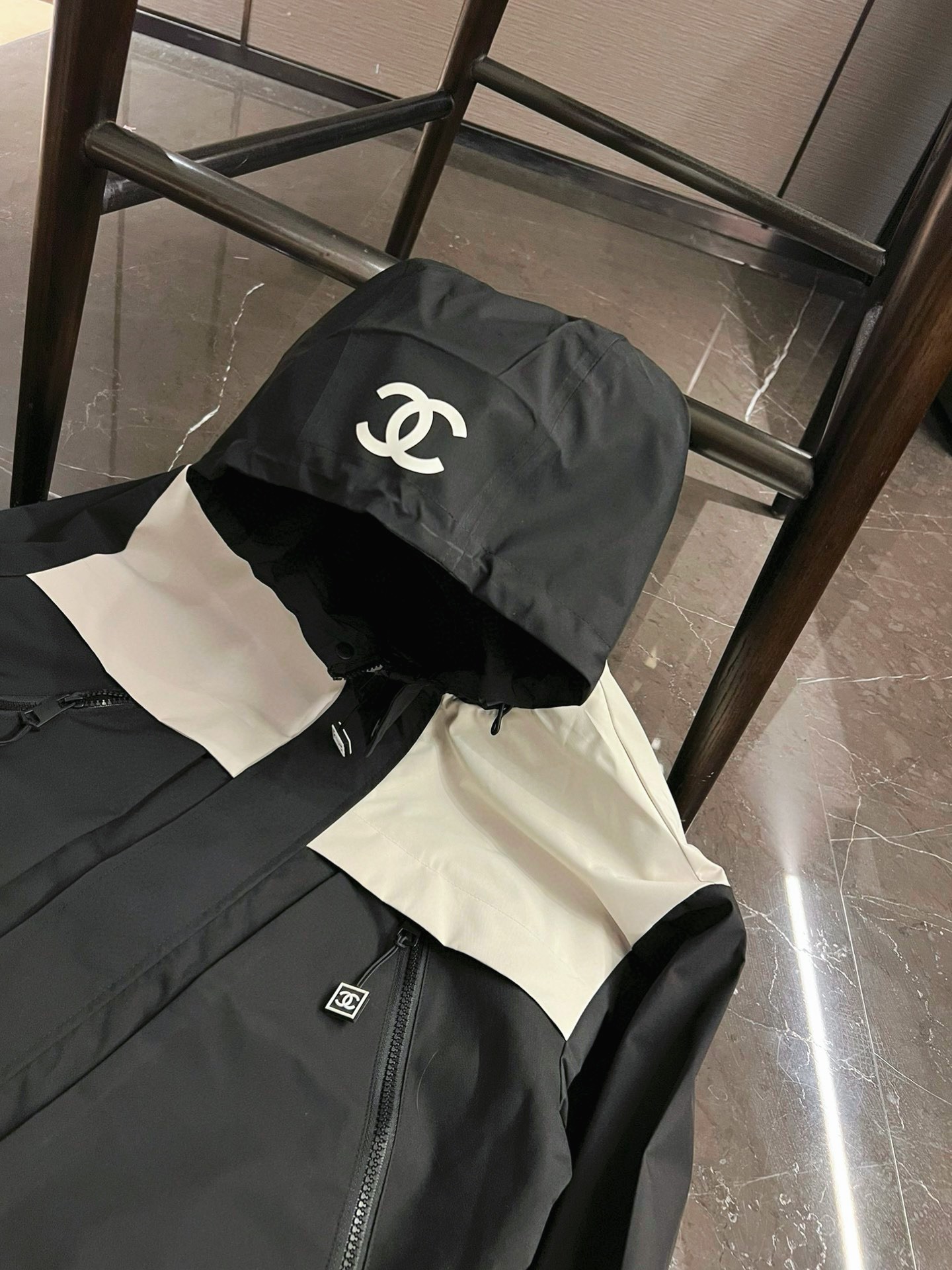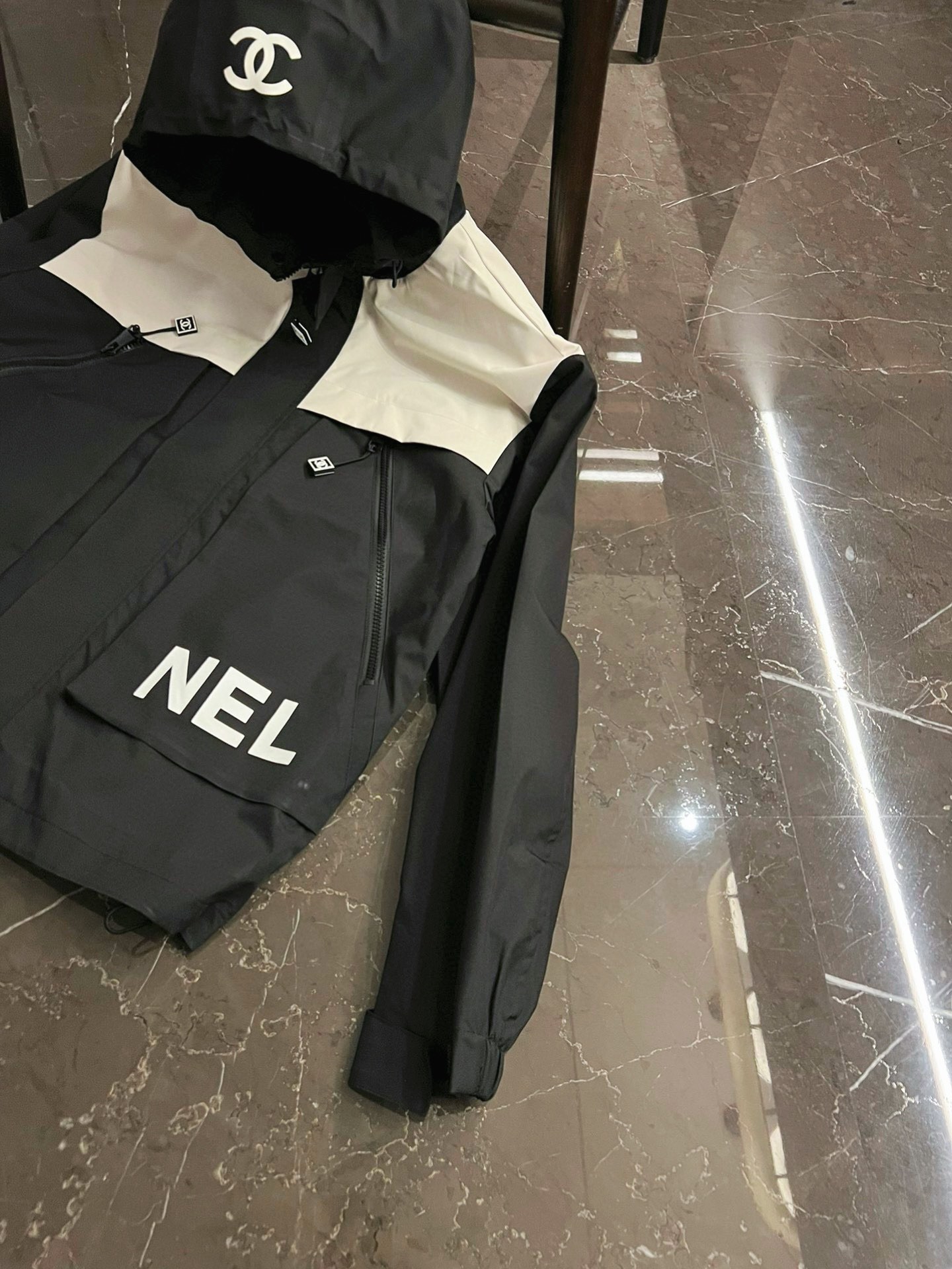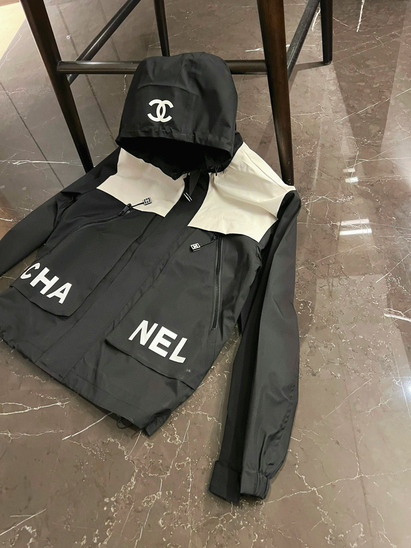 Stay stylish and protected with this Chanel printed windbreaker. Windproof, quick-drying, and featuring a modern silhouette for urban and outdoor adventures.