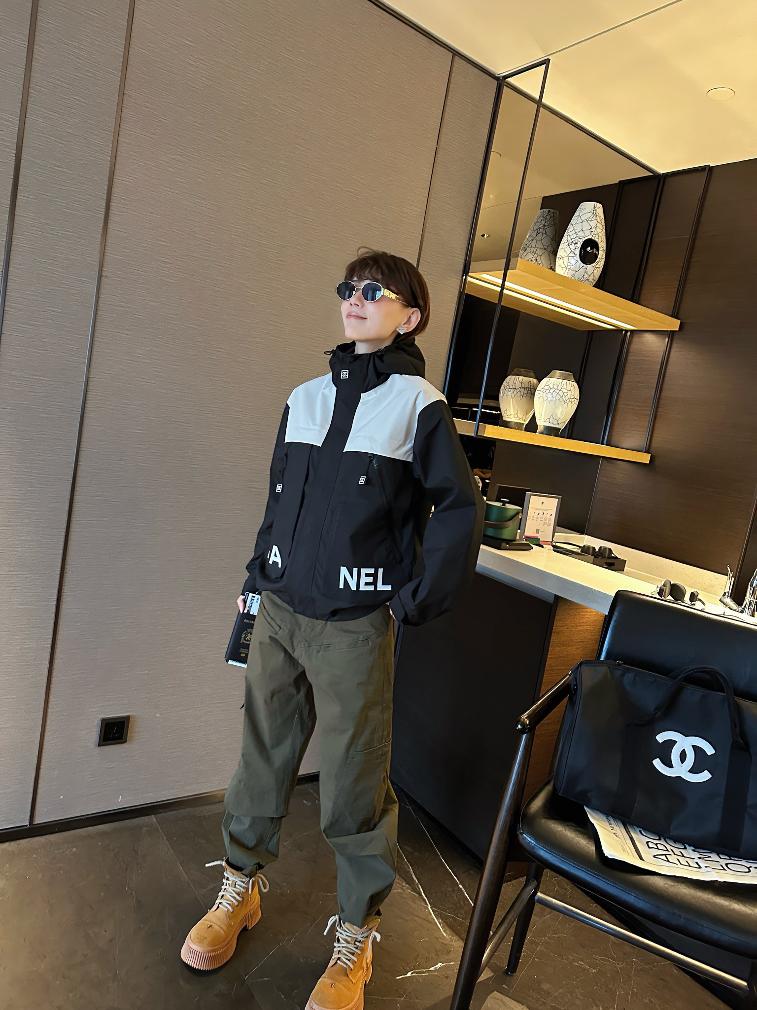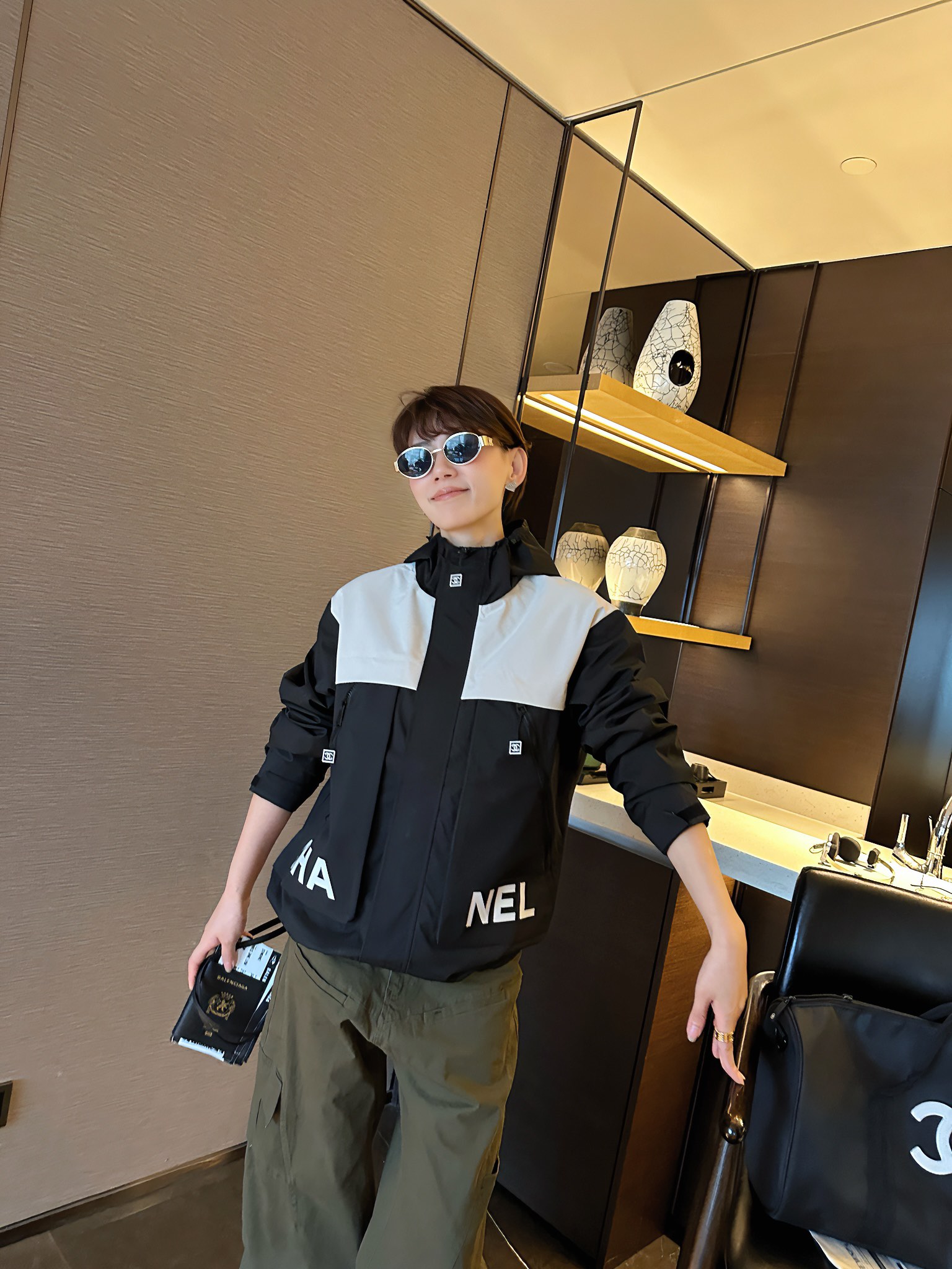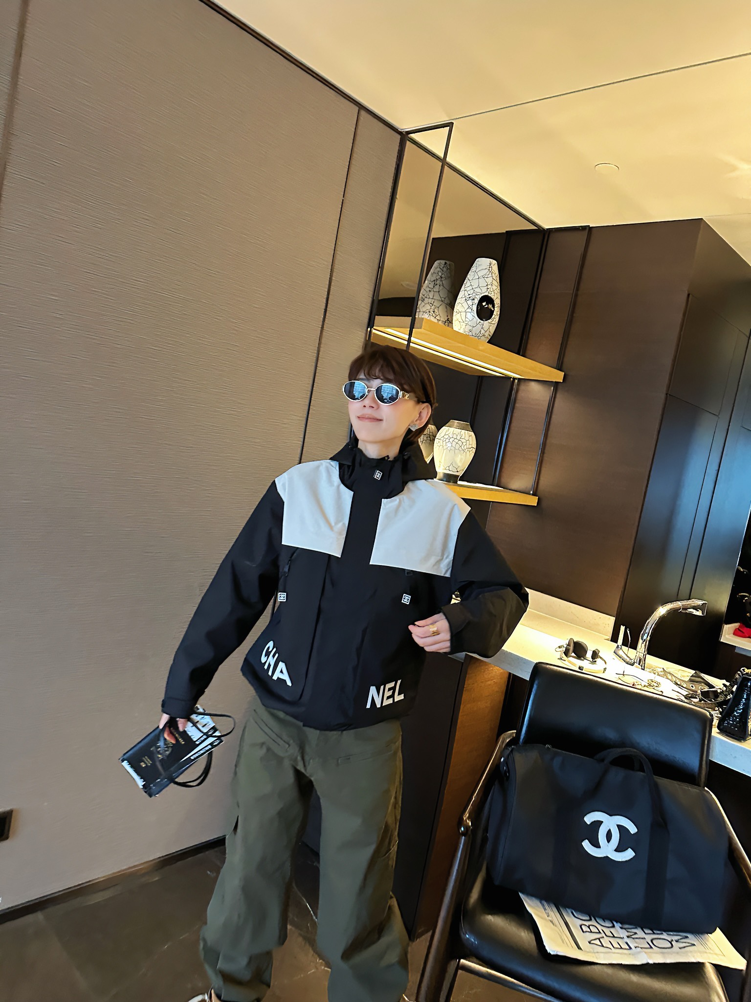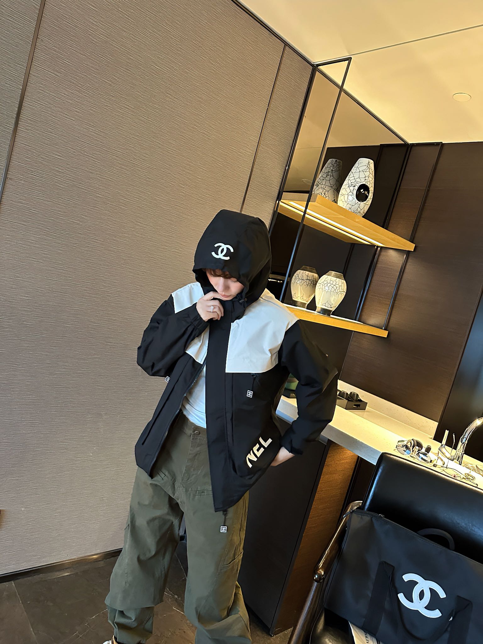 Stay stylish and protected with this Chanel printed windbreaker. Windproof, quick-drying, and featuring a modern silhouette for urban and outdoor adventures.