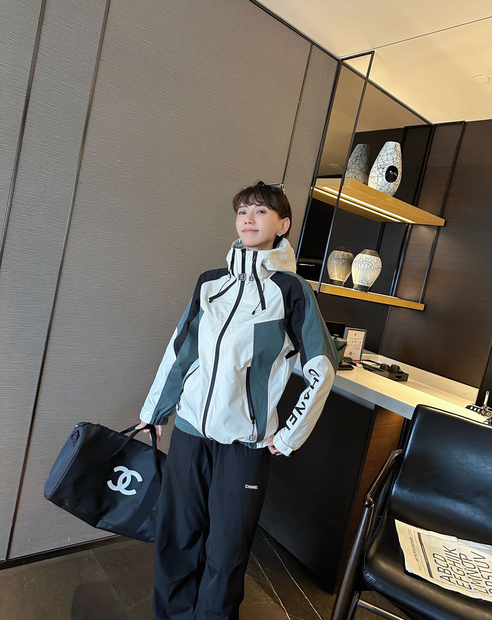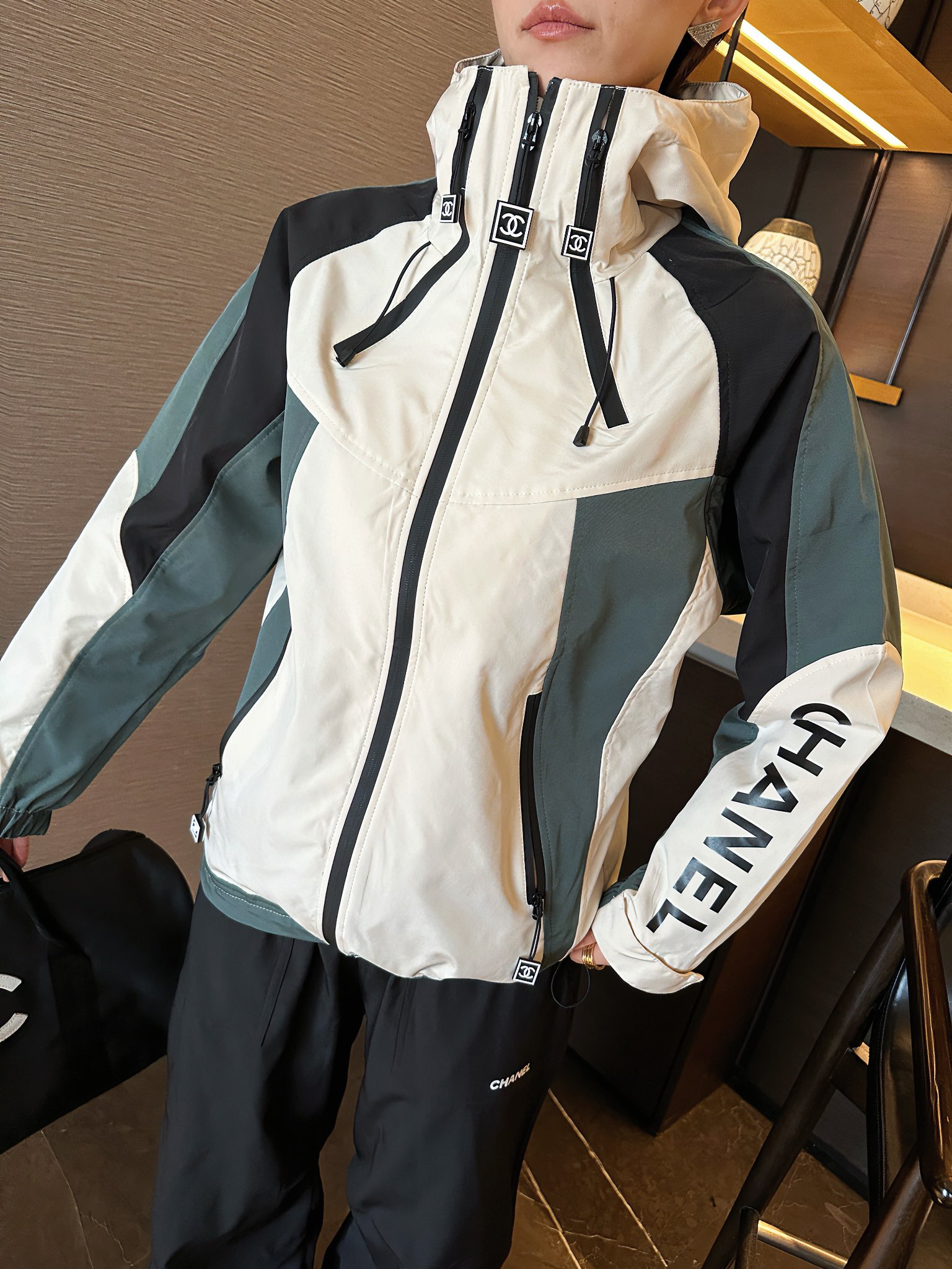 Chanel Printed Windbreaker Jacket Outdoor Windproof Quick-Drying Apricot