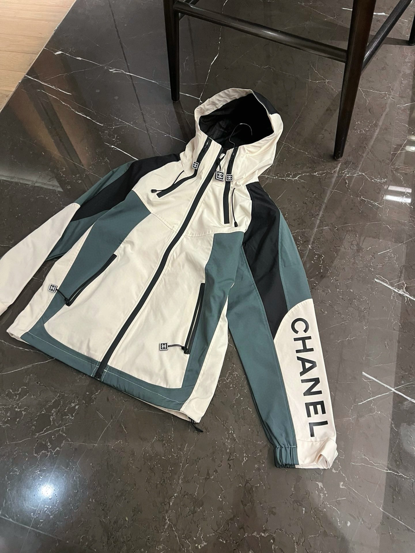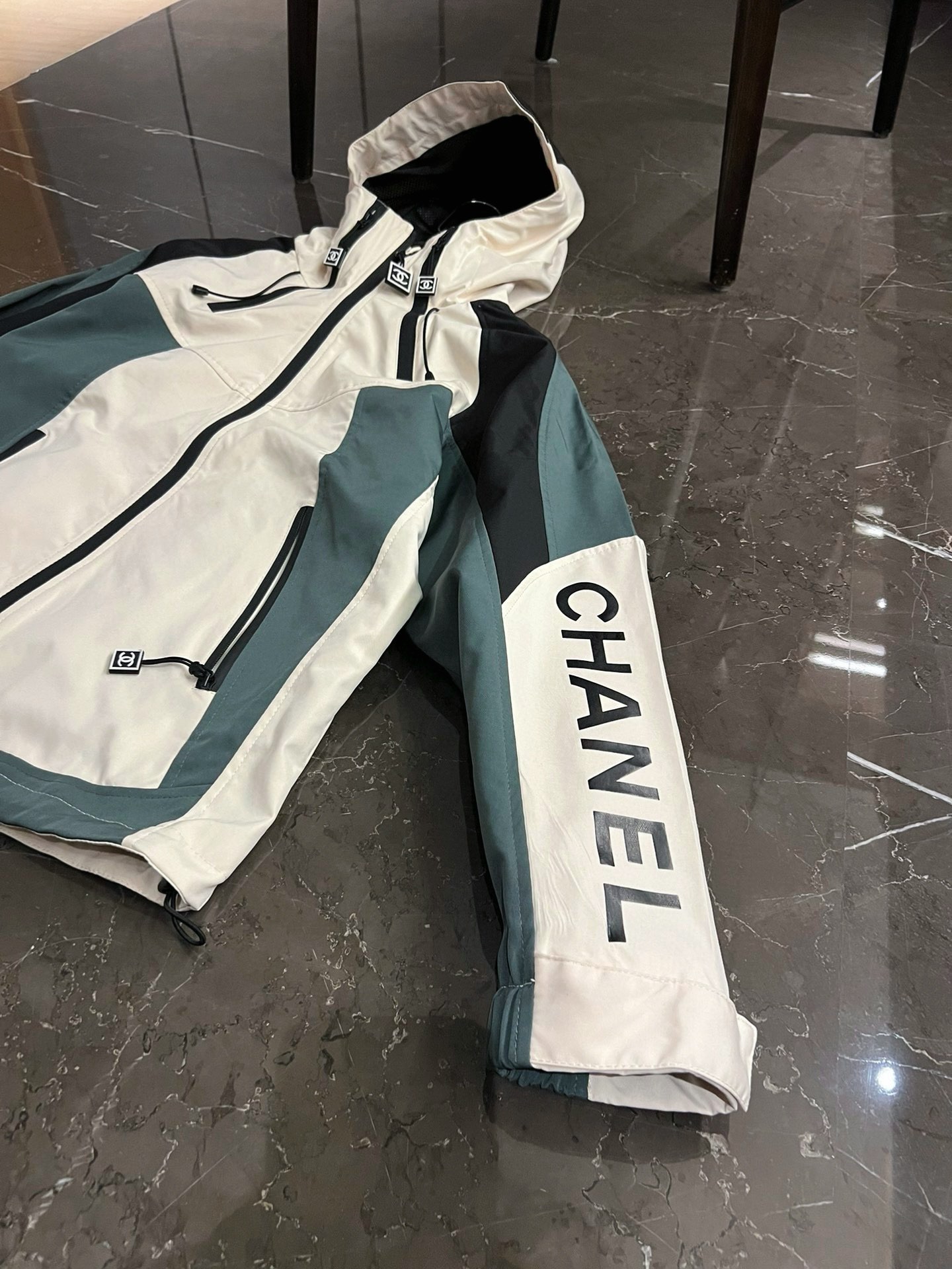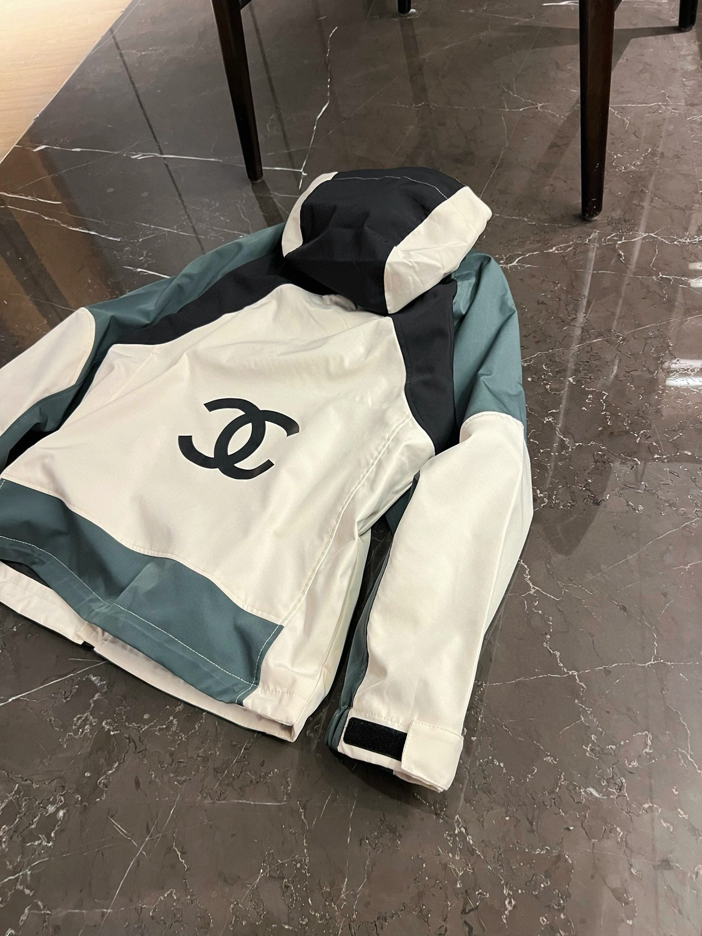 Stay stylish and protected with this Chanel printed windbreaker. Windproof, quick-drying, and designed for comfort in the city or outdoors.