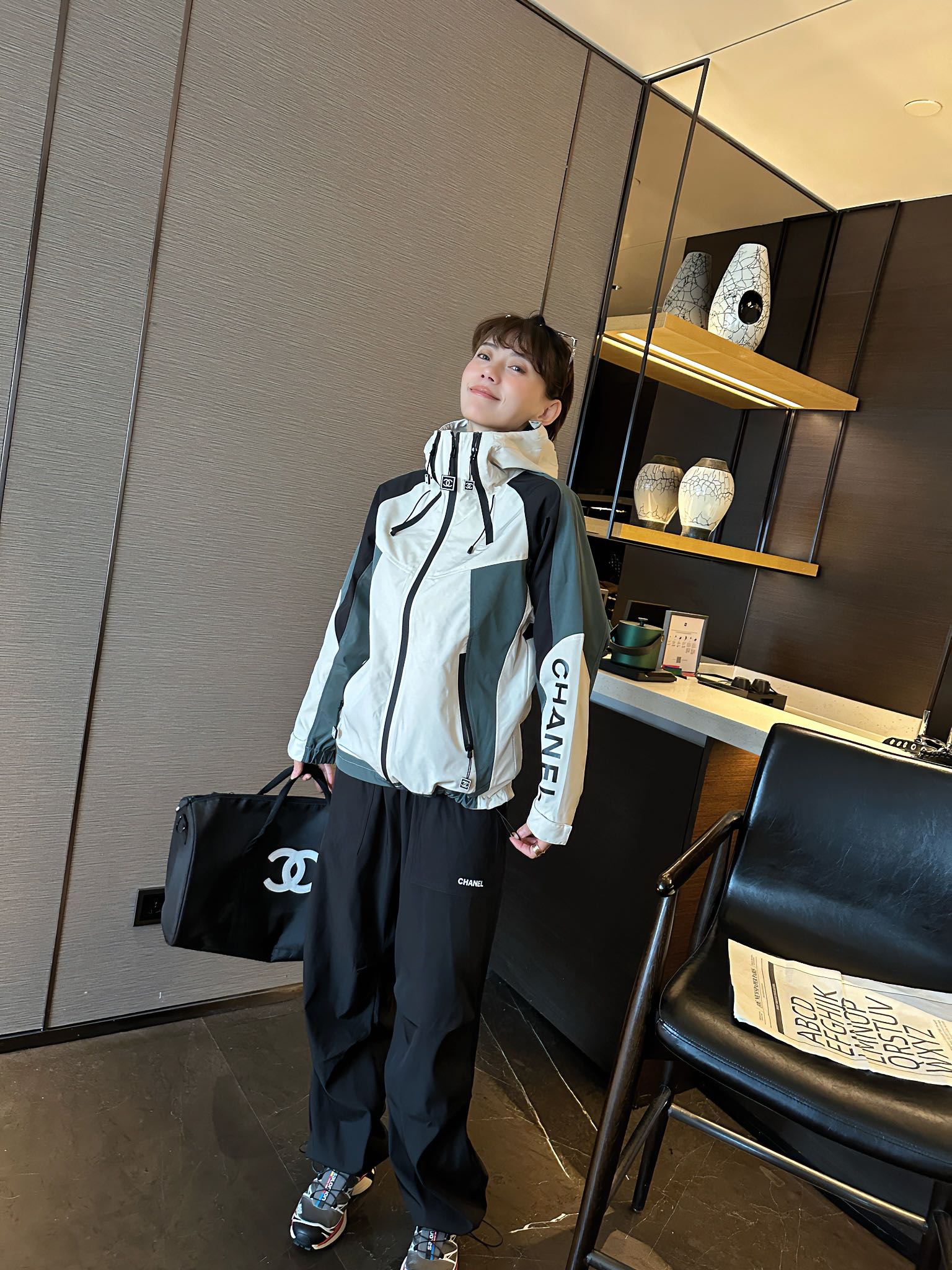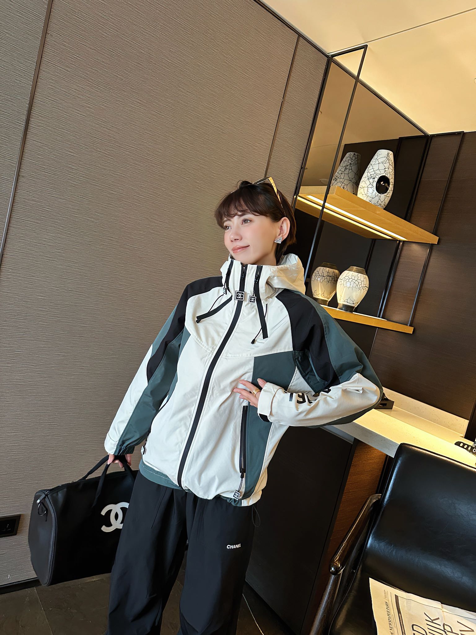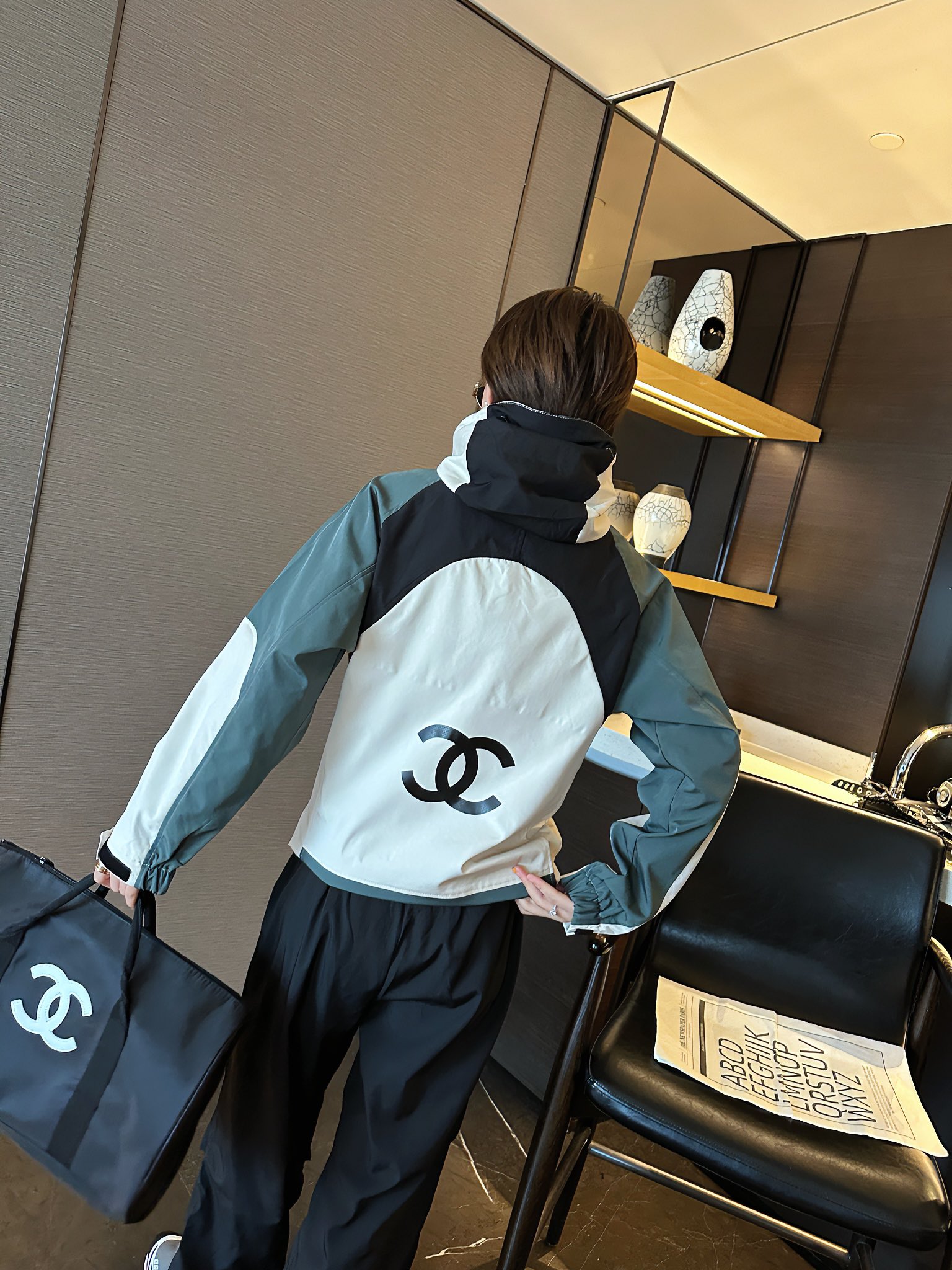 Stay stylish and protected with this Chanel printed windbreaker. Windproof, quick-drying, and designed for comfort in the city or outdoors.