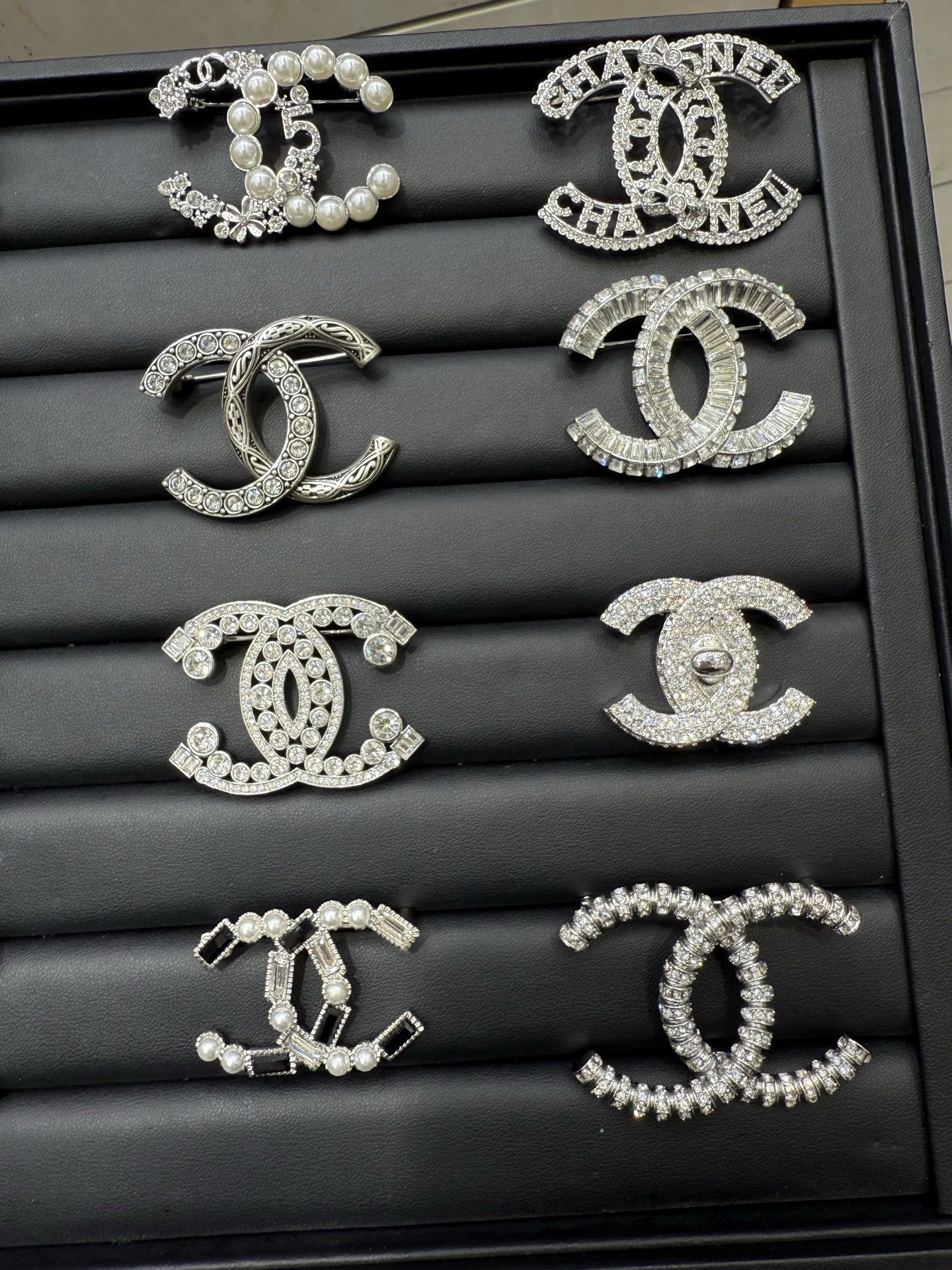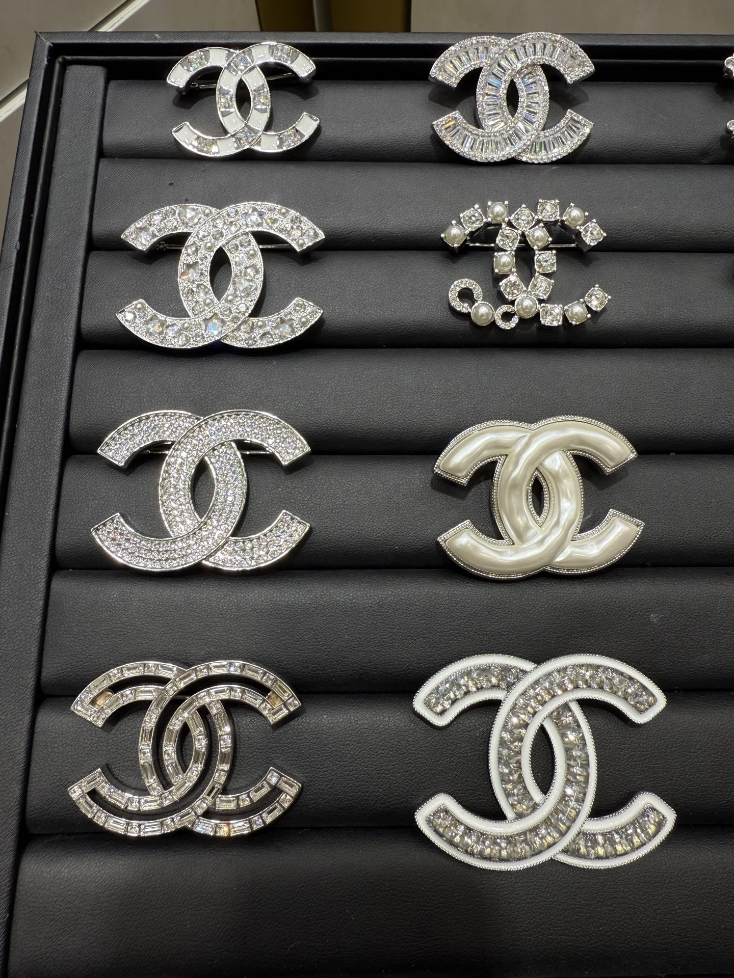 Chanel Silver Brooches Collection, Classic CC Design, Elegant Pins for Women