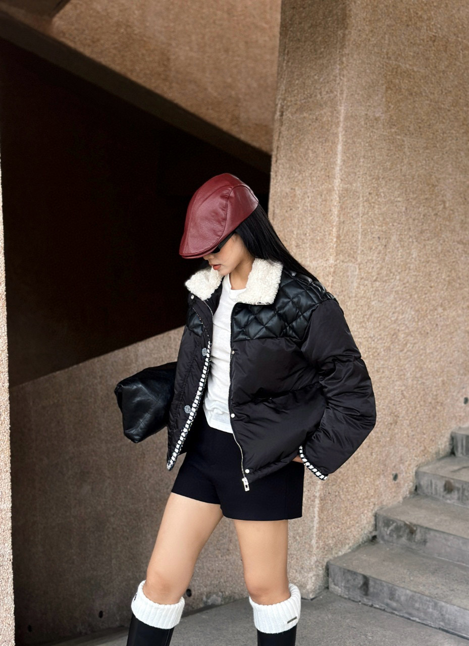 Chanel-Style Padded Jacket: Quilted Leather Detail, Down Filling, Warm & Chic