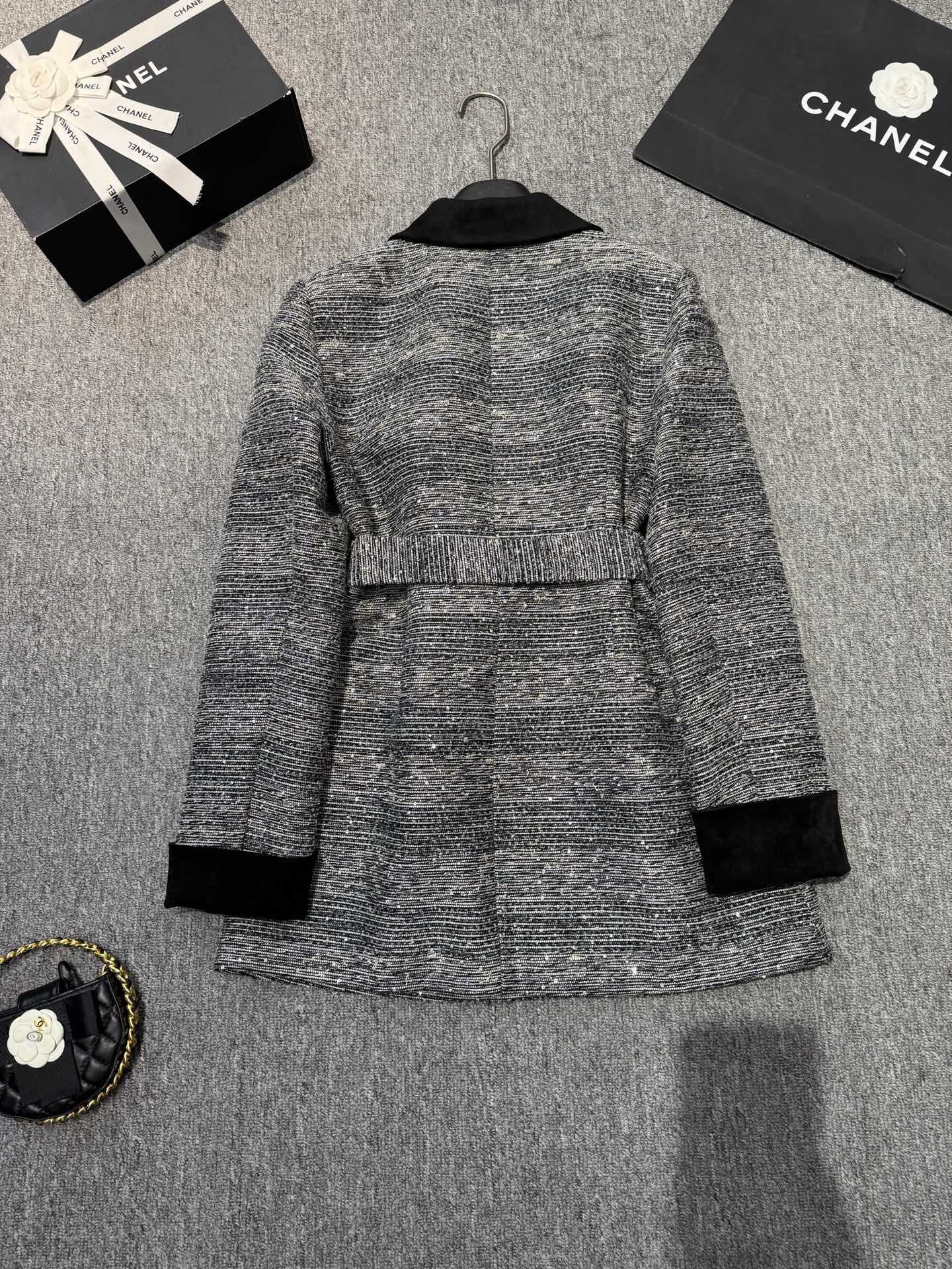 Chanel Tweed Coat with Suede Collar & Belt, Designer Luxury, Elegant Outerwear