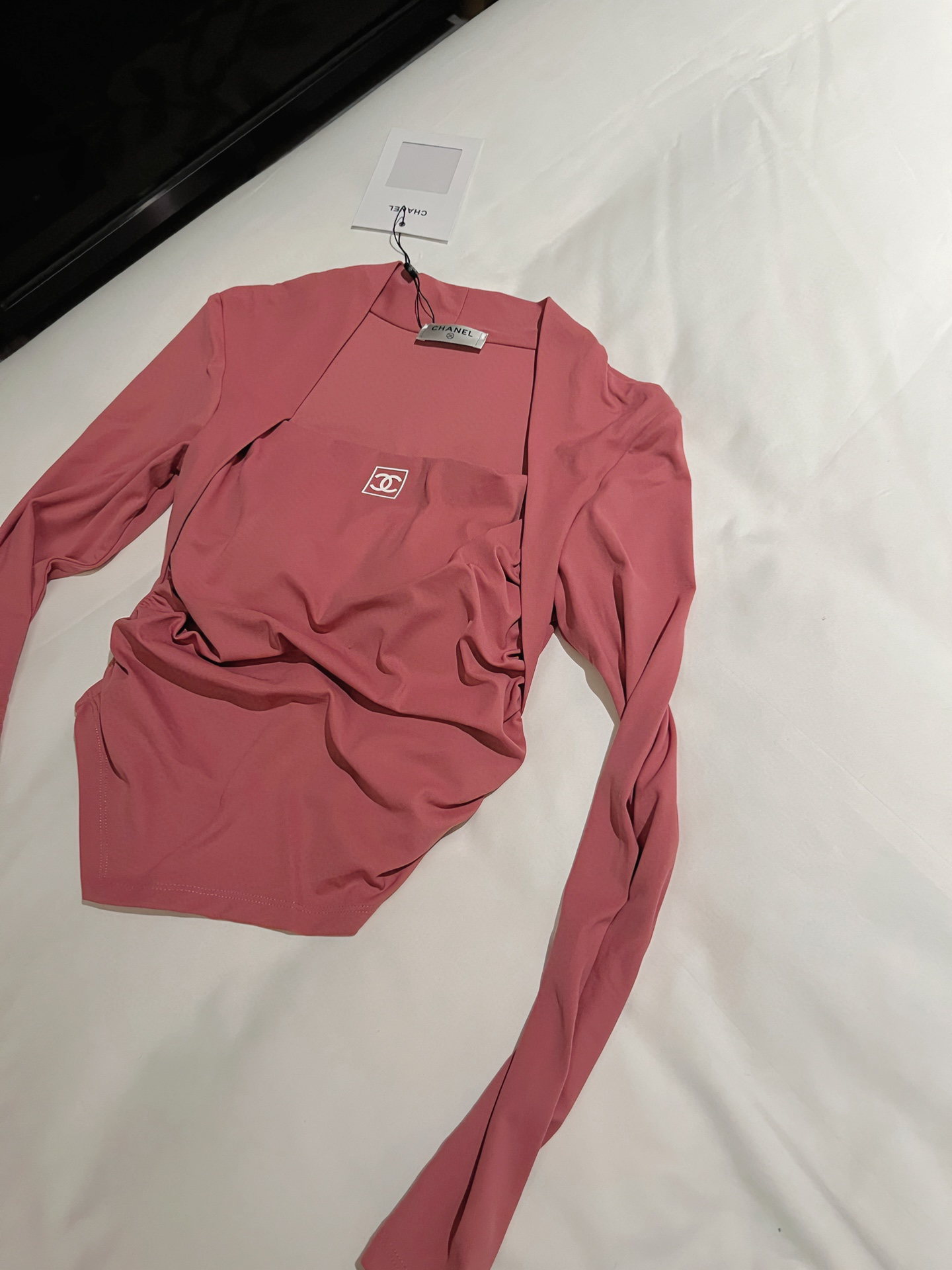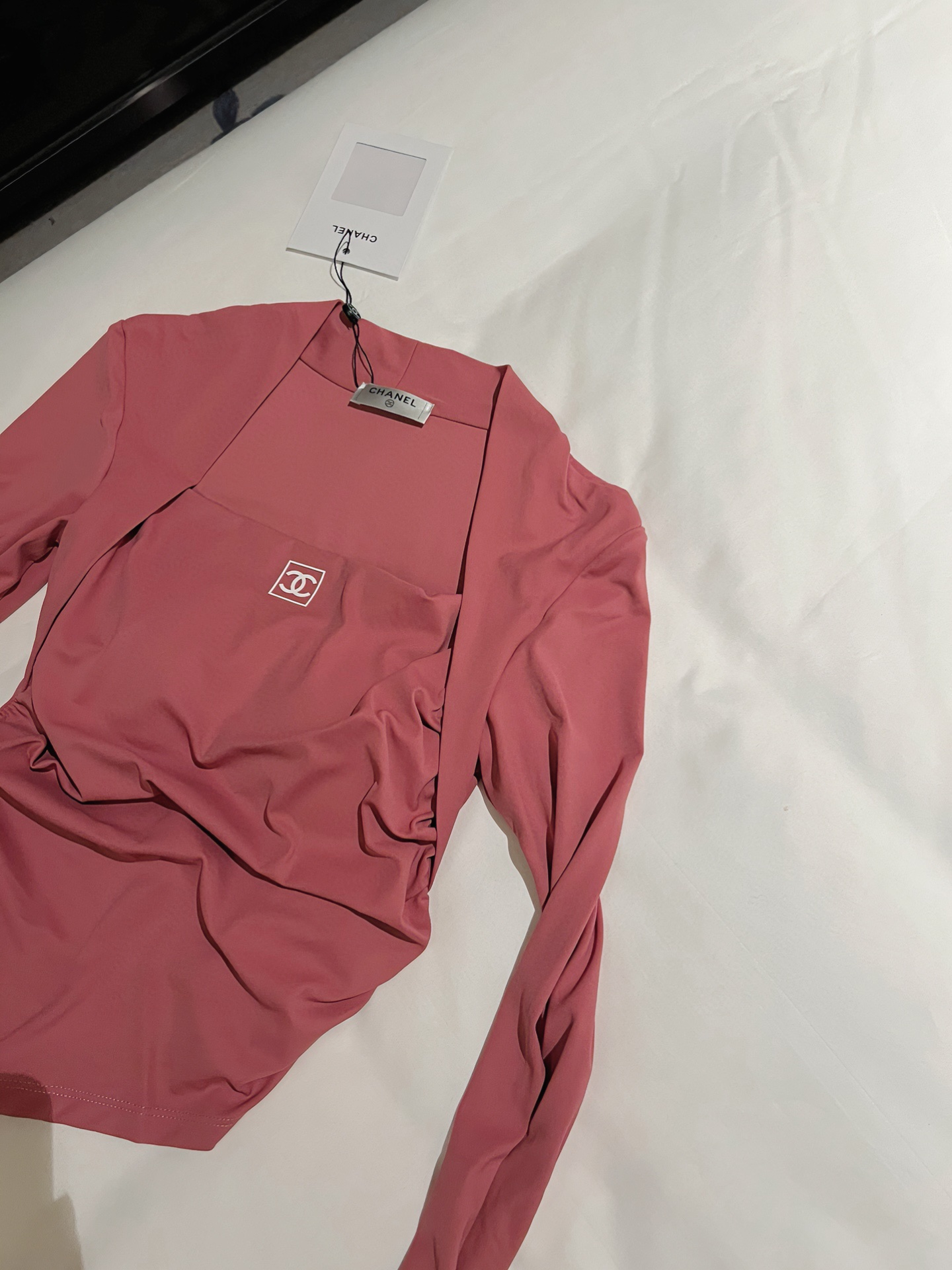 Chanel Vintage Style Yoga Top with Built-in Bra and Slim Fit Design