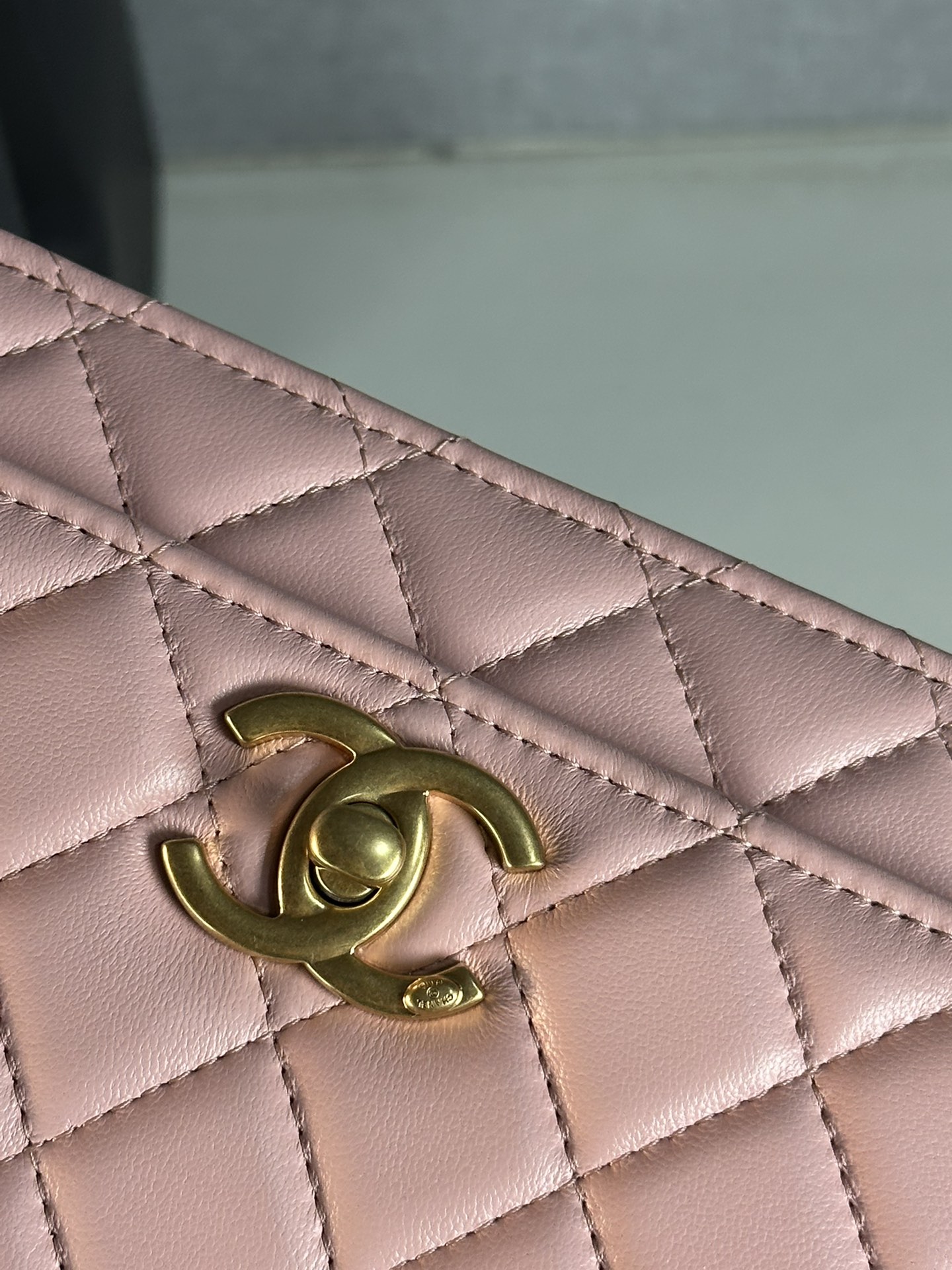 - Classic Design: Features Chanel's signature quilted lambskin leather.