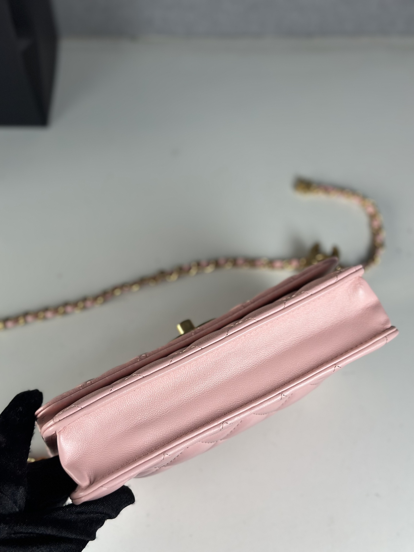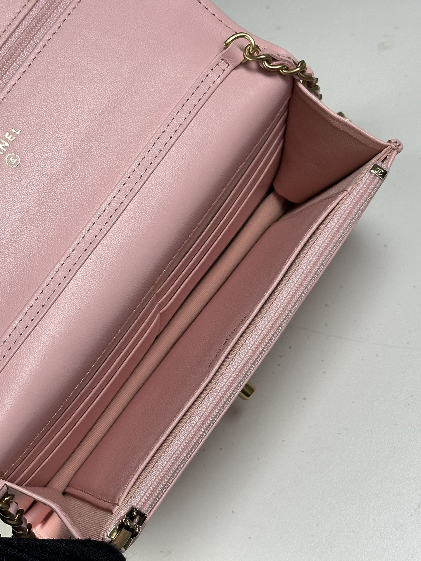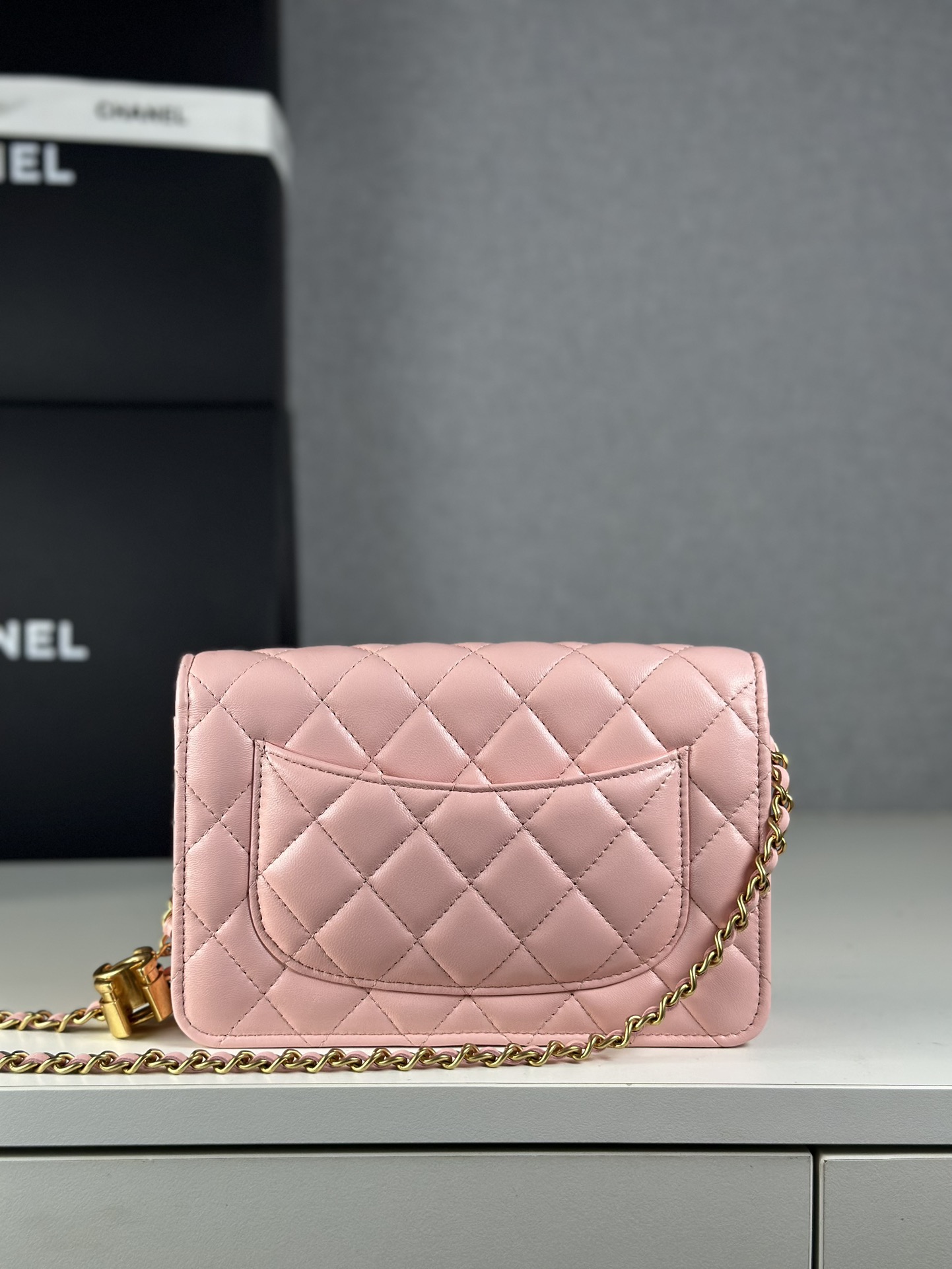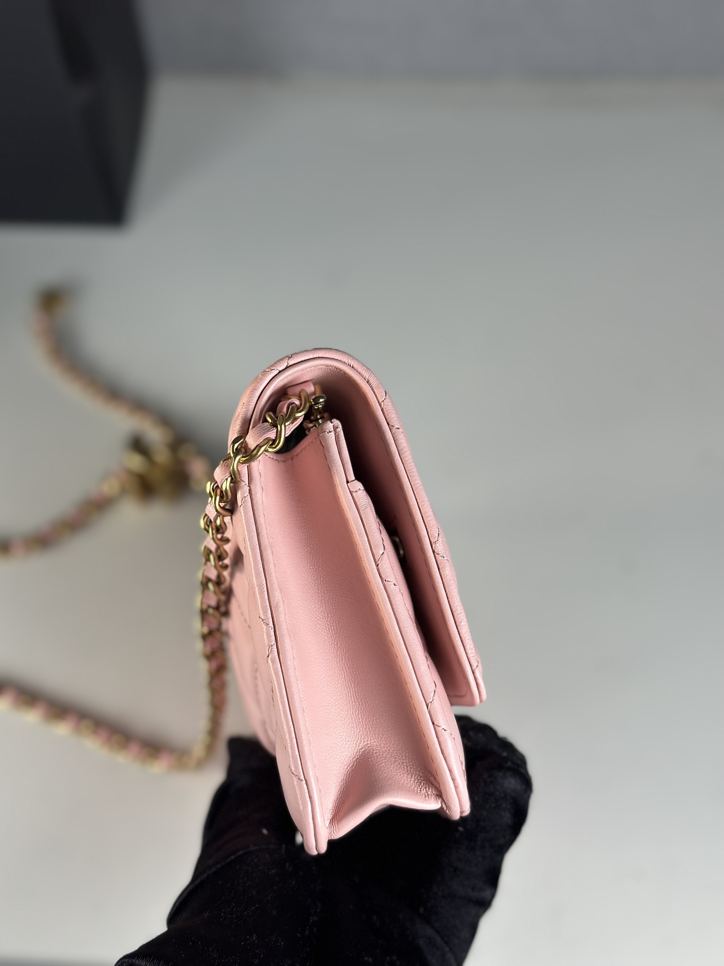 Chanel WOC Chain Bag with Double C Clasp in Pink Lambskin Leather