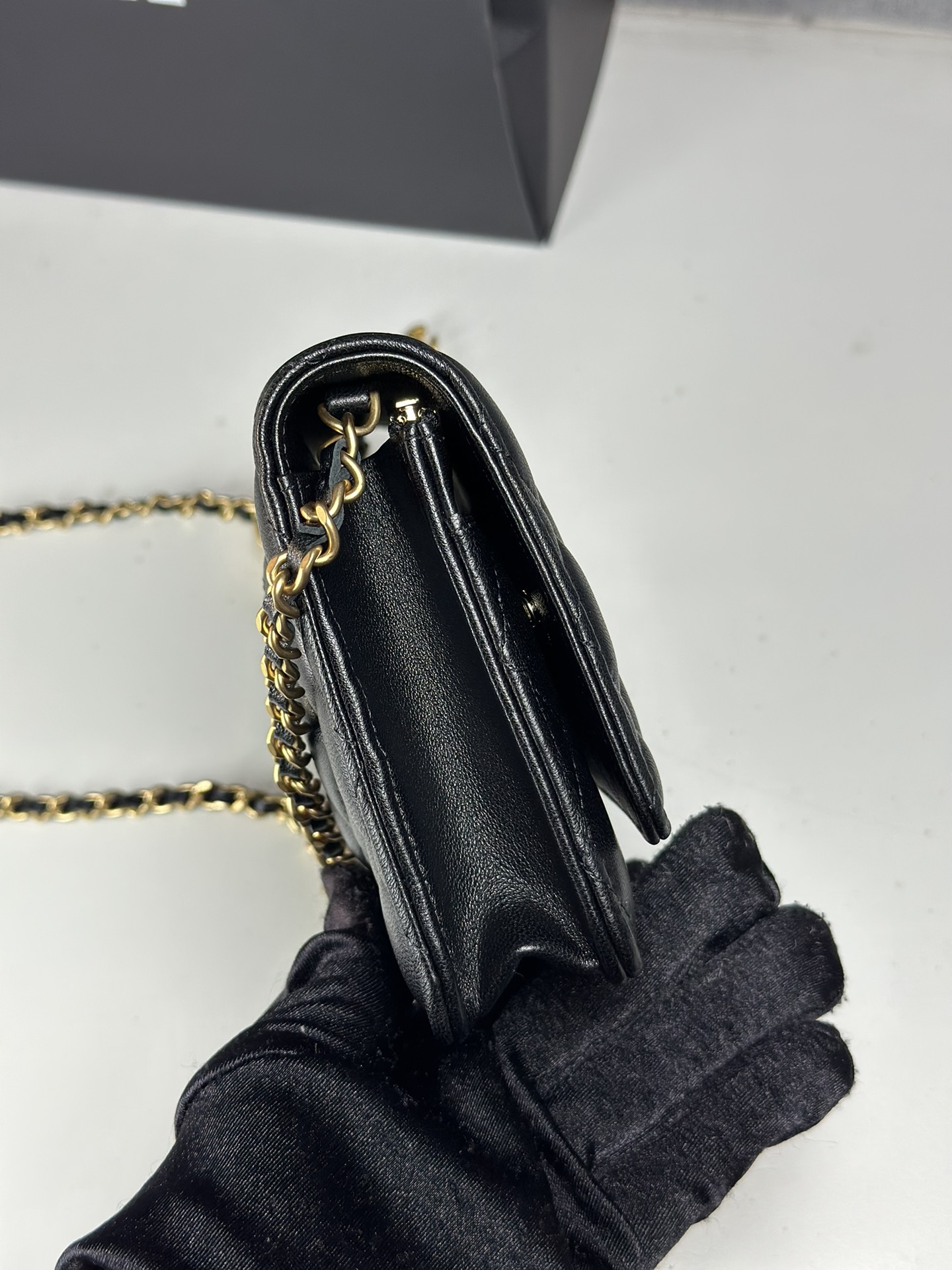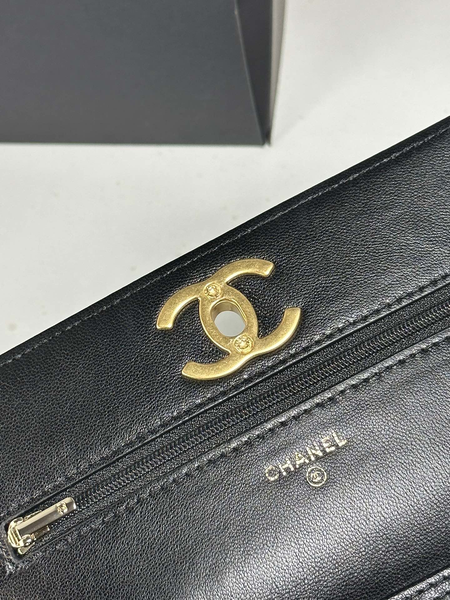 Chanel WOC Lambskin Leather Chain Wallet Crossbody Bag, 19 x 3 x 12 cm