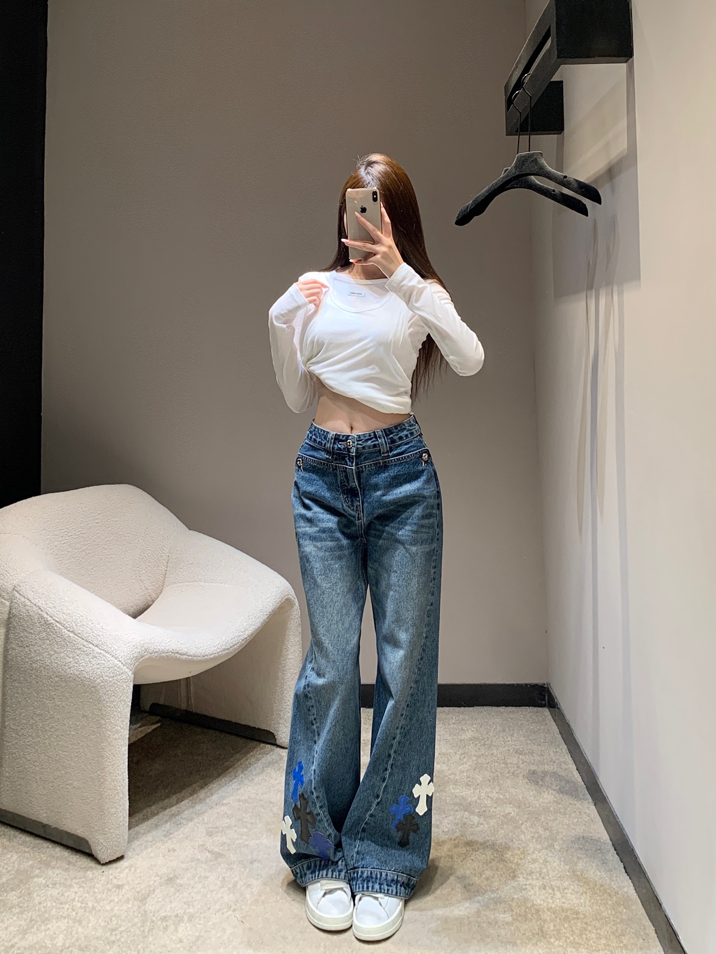 Chrome Hearts Cross Patchwork Wide Leg Denim Jeans Y2K Style Pants