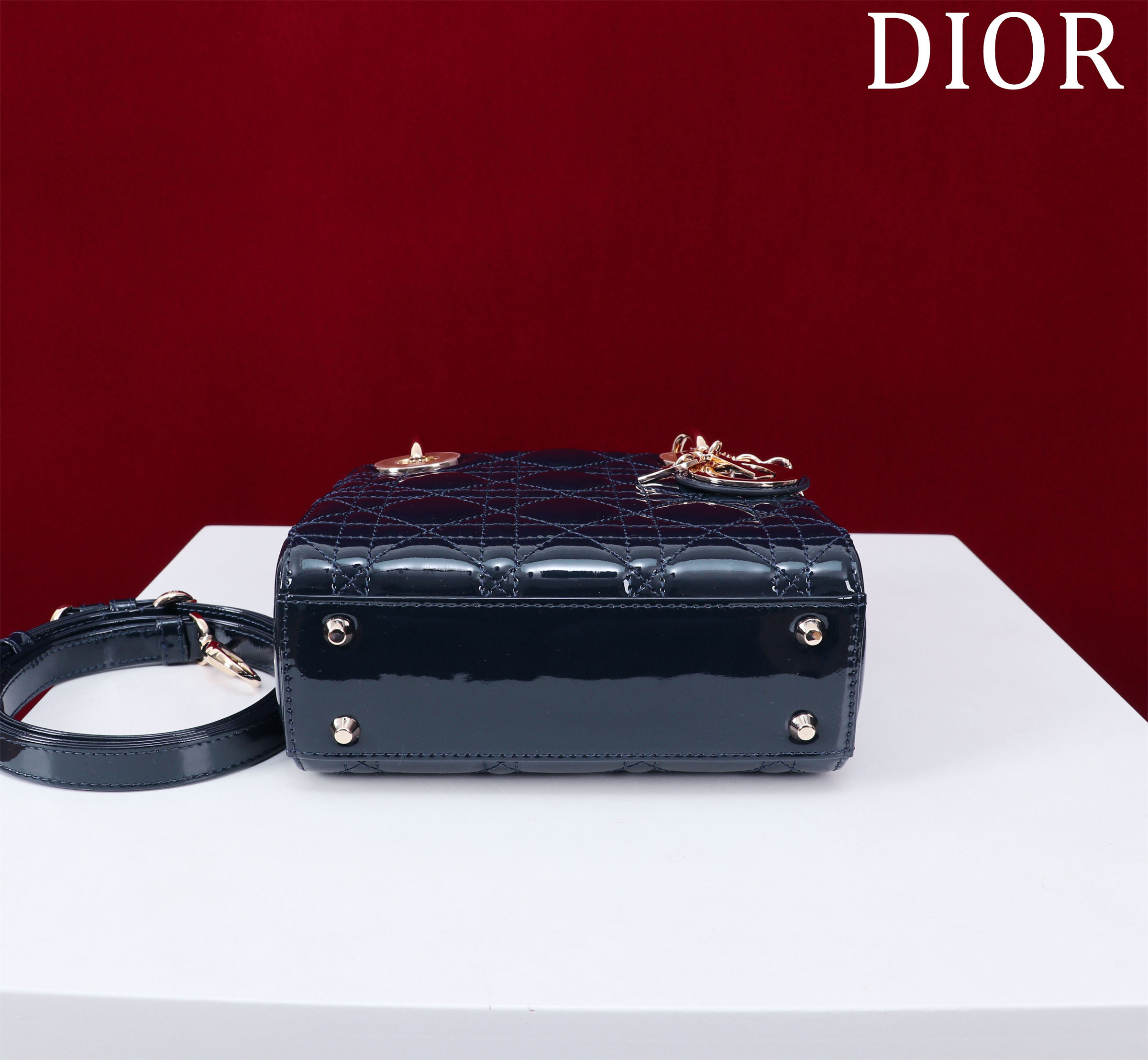 Classic Dior Lady Three-Grid Handbag, Elegant Patent Leather Crossbody Bag